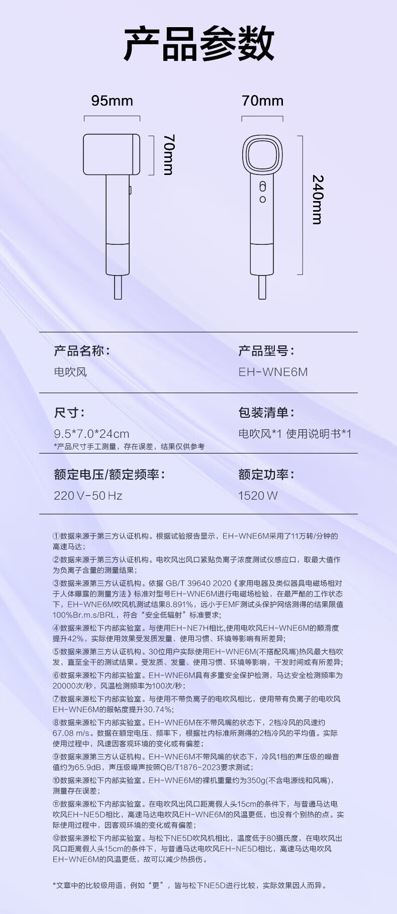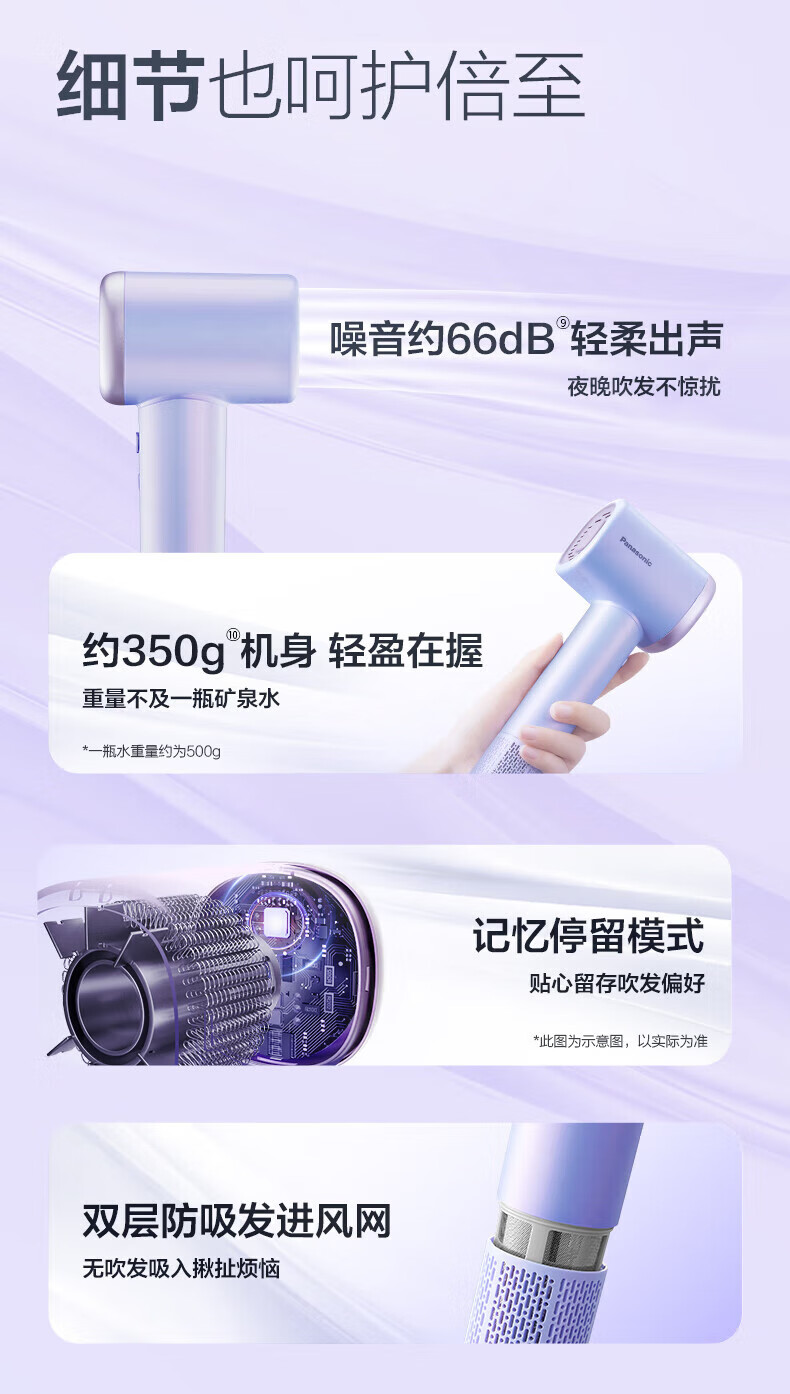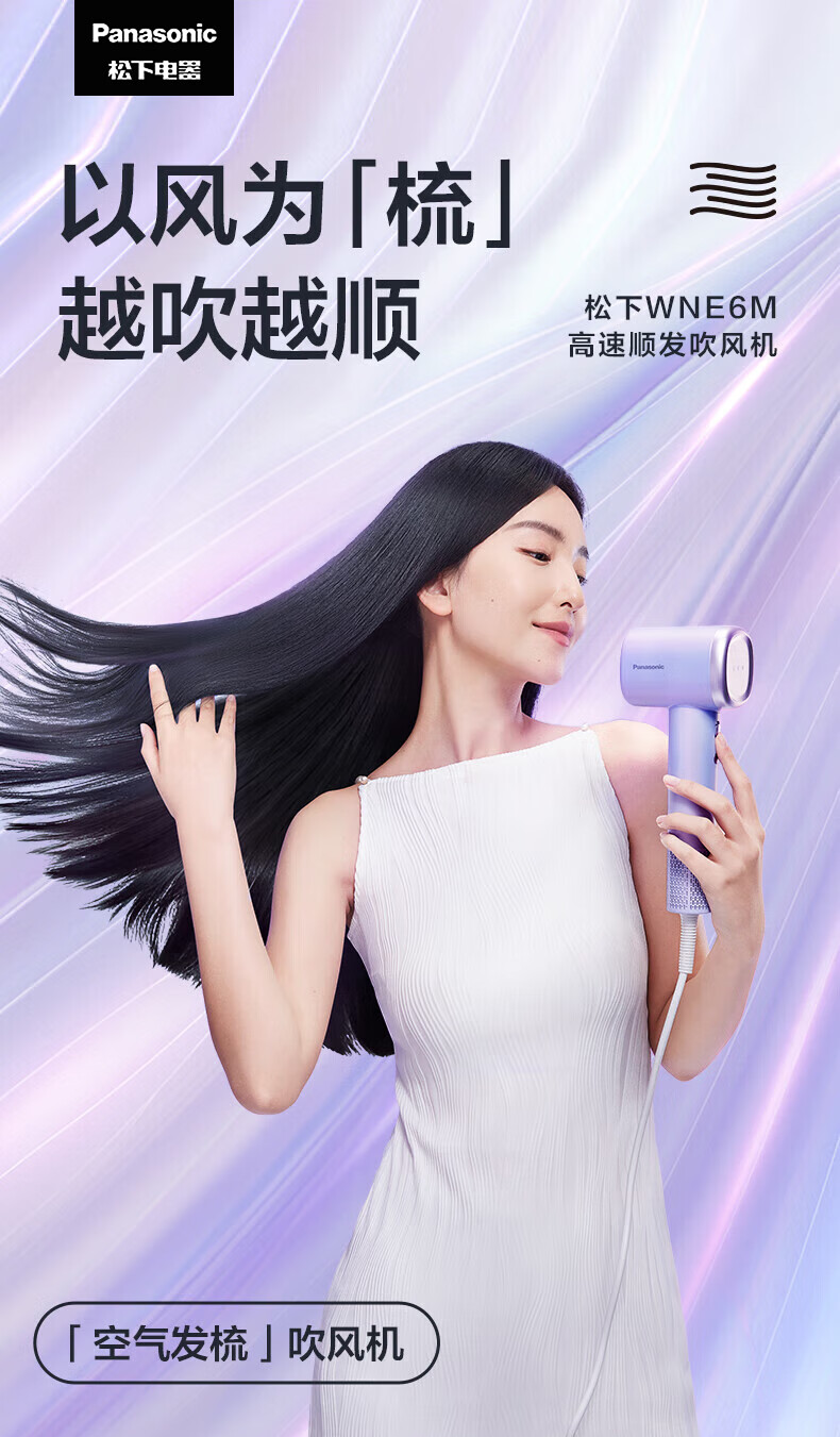 松下(Panasonic)空气发梳负离子高速护发吹风机家用低噪速干电吹风送女生新年情人节礼物年会奖品奶茶色EH-WNE6M
