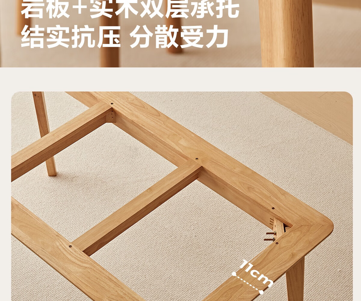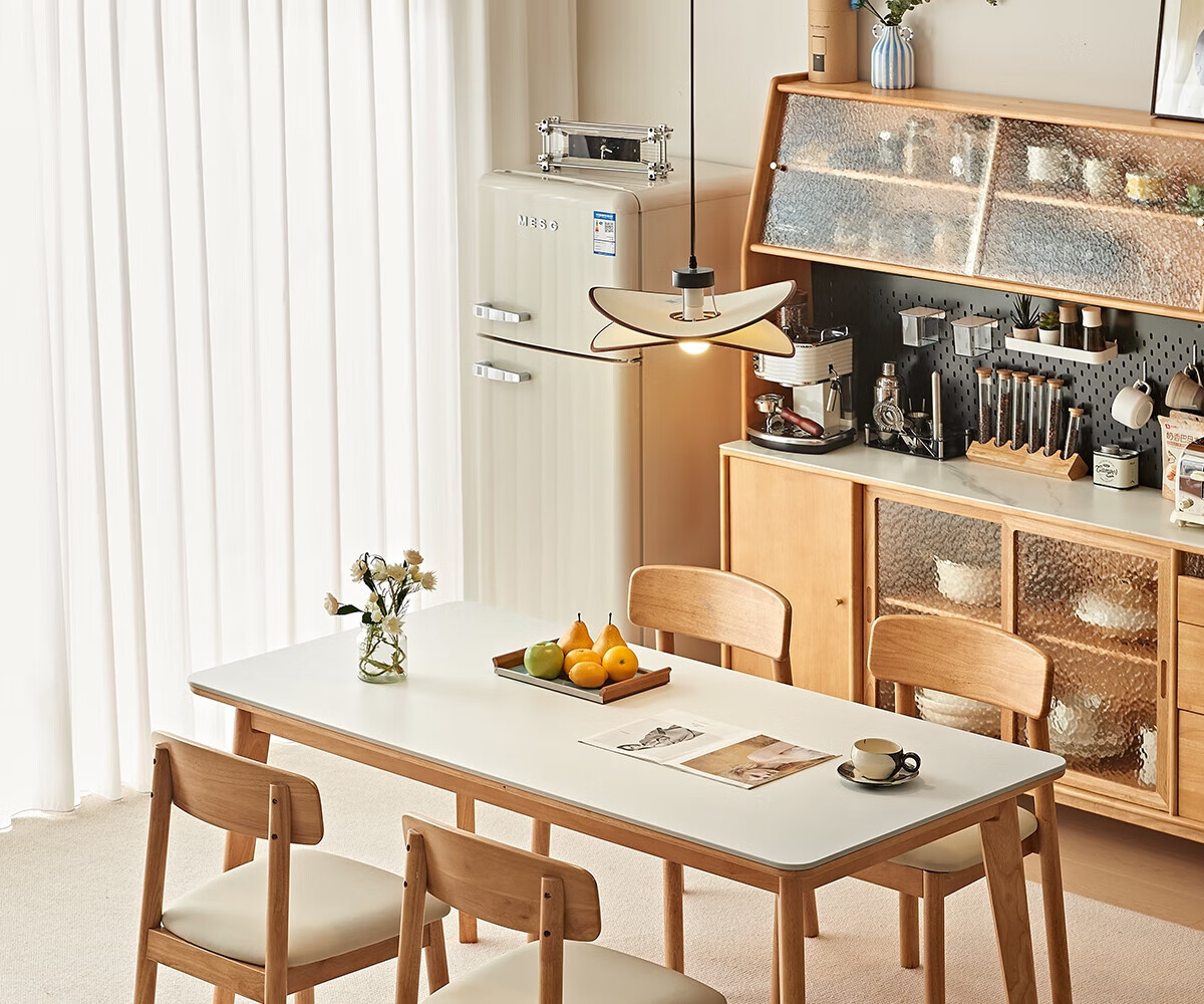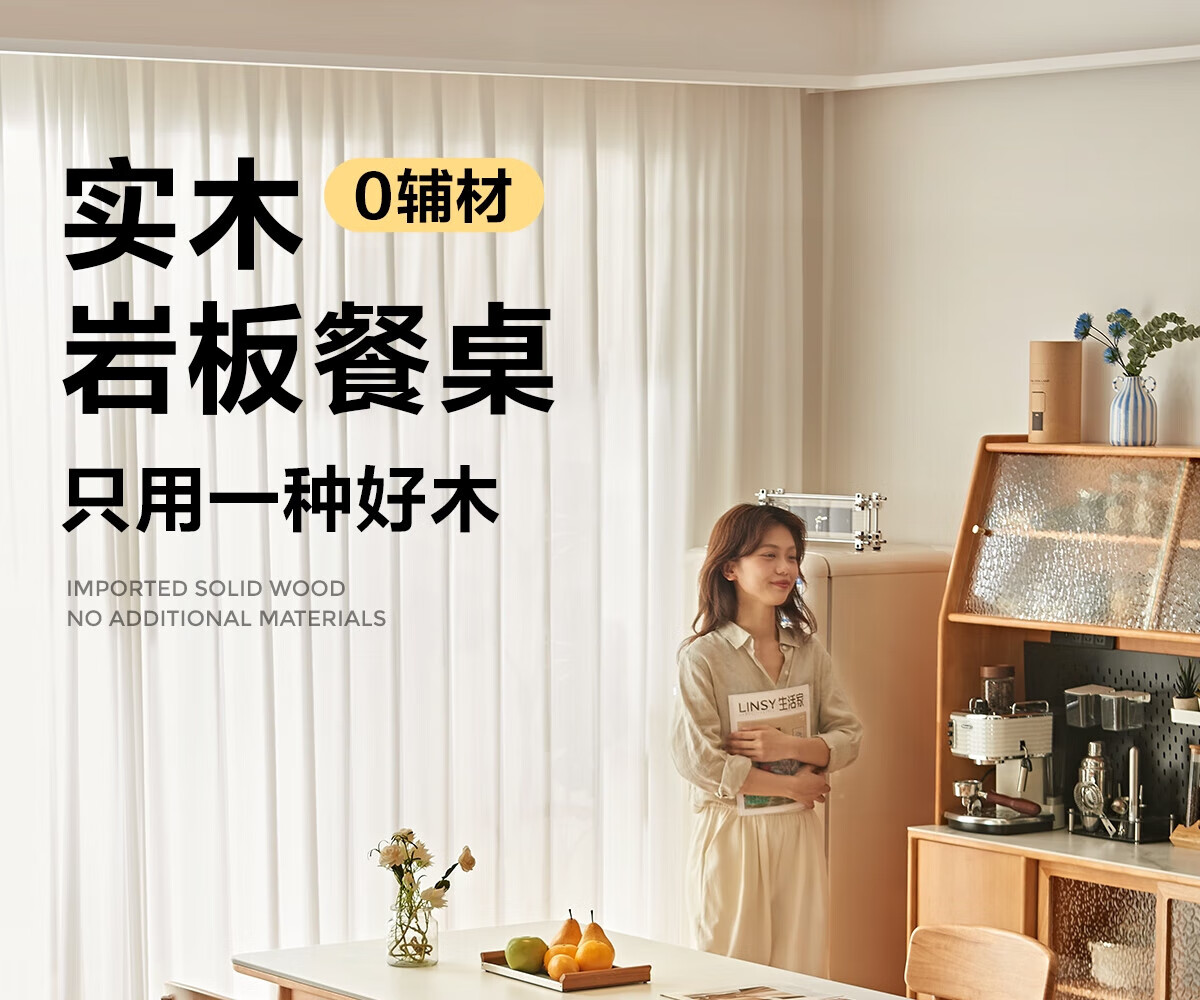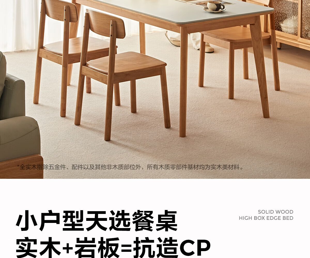 林氏家居实木岩板餐桌椅2025新款家用长方形吃饭桌子客厅小满系列PK7R 【1.2m|岩板款|原木色】全实木餐桌