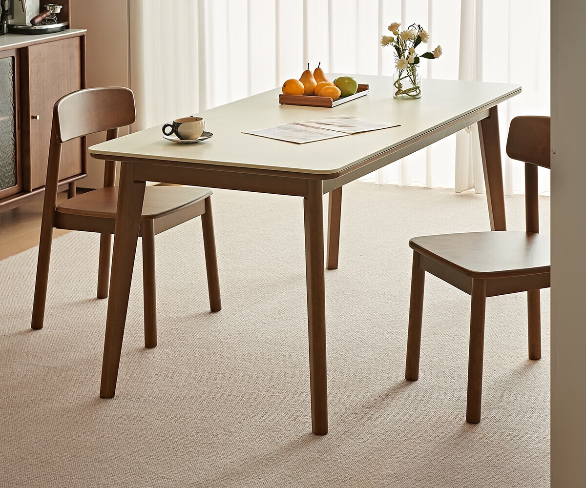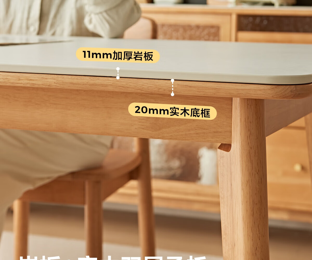 木斌实木岩板餐桌椅子全套现代简约家用小户型伸缩可折叠饭桌可变圆桌 【12MM岩板】 1桌6贝勒椅 (抗菌岩板) 1.5米