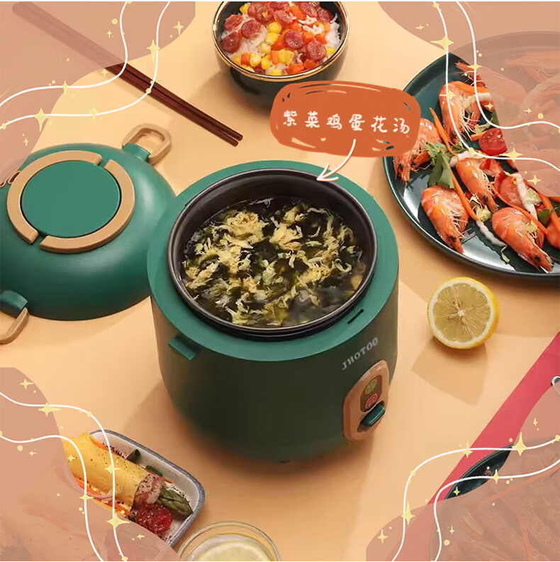 JHOTOO【厂家直发】迷你电饭煲家用小型单人食煮1.2L升1-2人电饭煲全自动宿舍煮饭锅 墨绿色 1.2L 不粘内胆