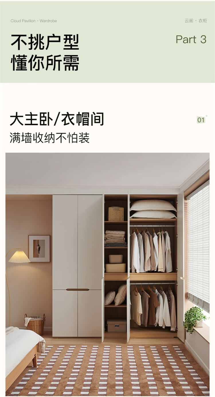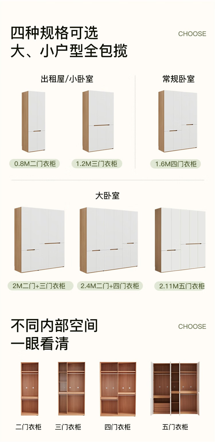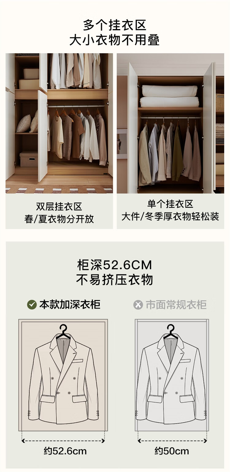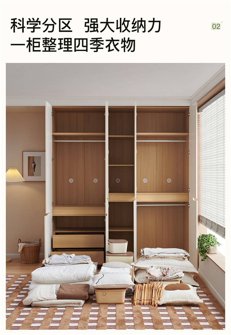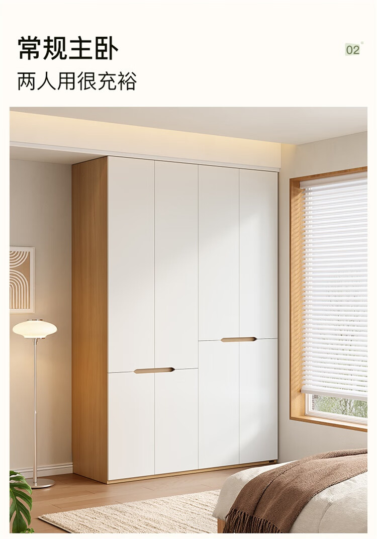 全友家居简约奶油风加高四门衣柜卧室家用衣橱衣服收纳储物柜一体靠墙