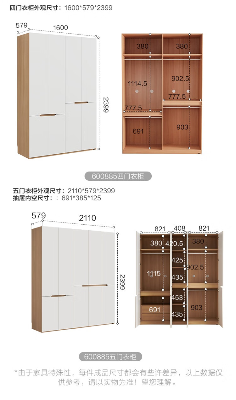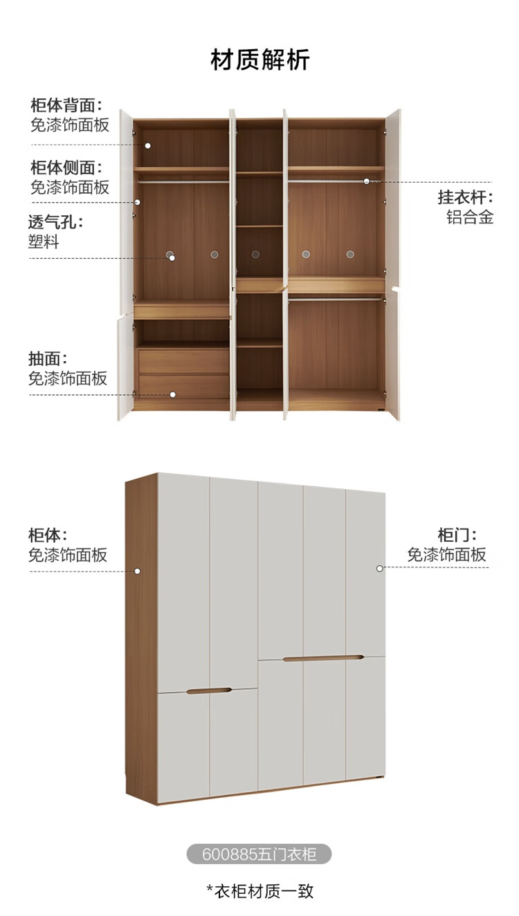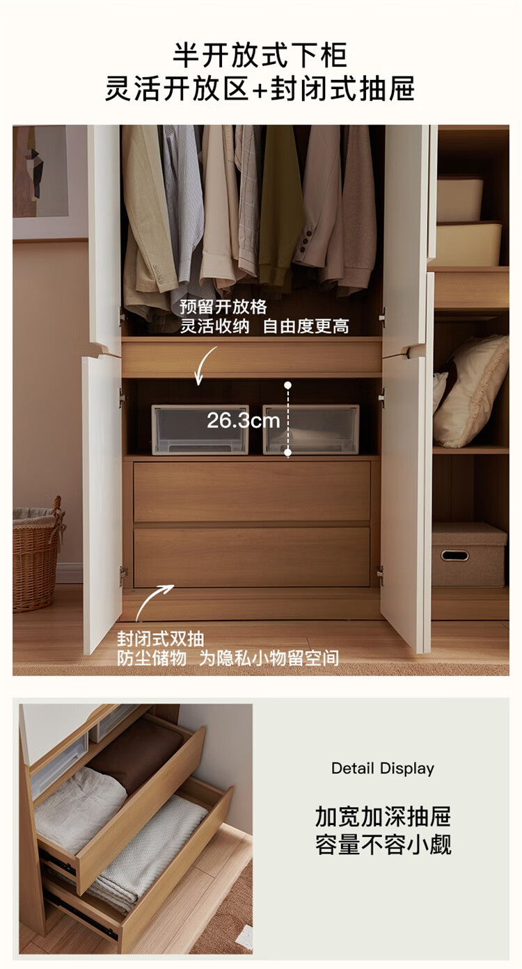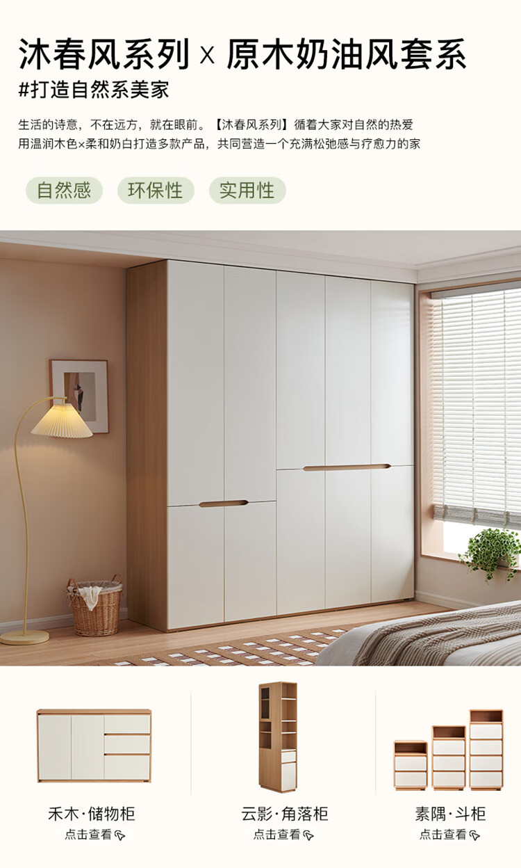 全友家居简约奶油风加高四门衣柜卧室家用衣橱衣服收纳储物柜一体靠墙
