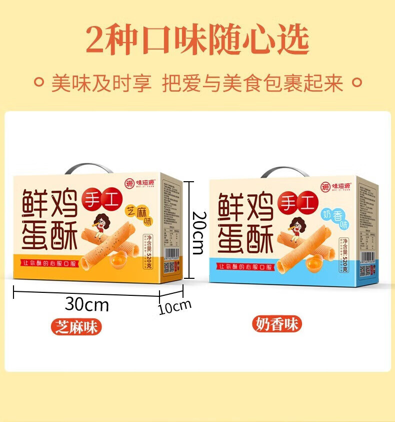 味滋源 鸡蛋酥鸡蛋卷薄脆饼干 整箱装 食品小吃 怀旧小零食独立包装 奶香味270g*1箱+芝麻味270g*1箱 1件