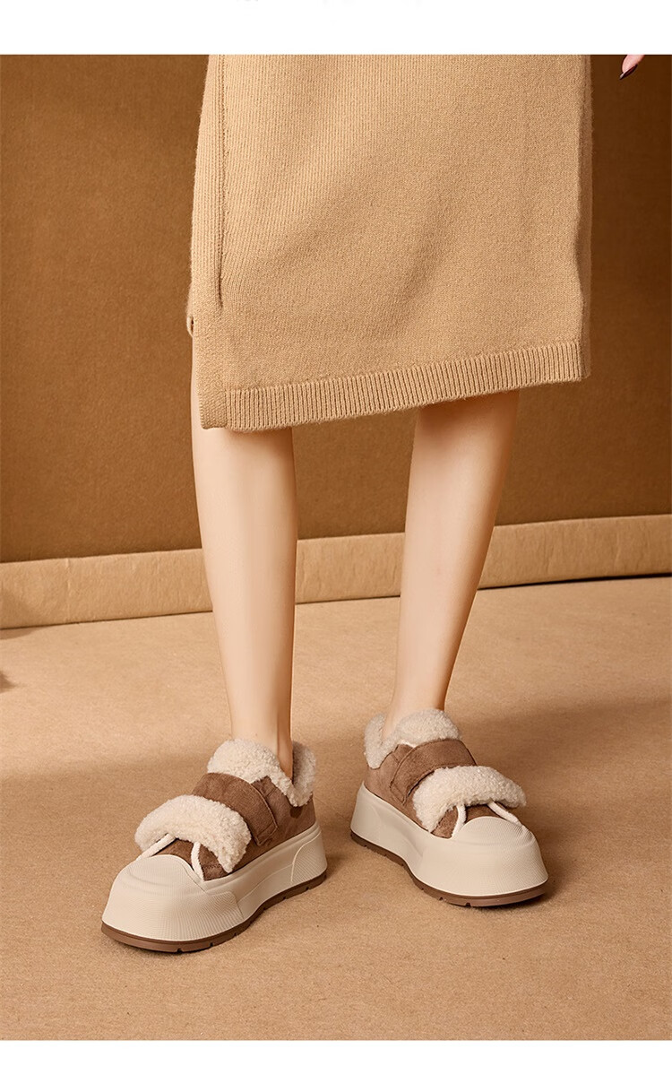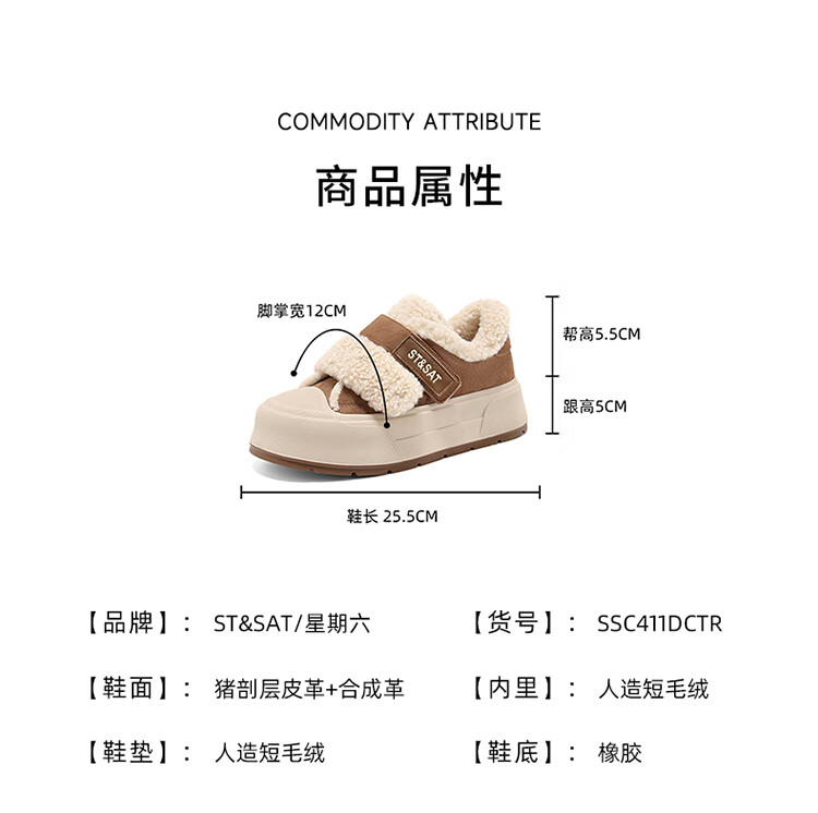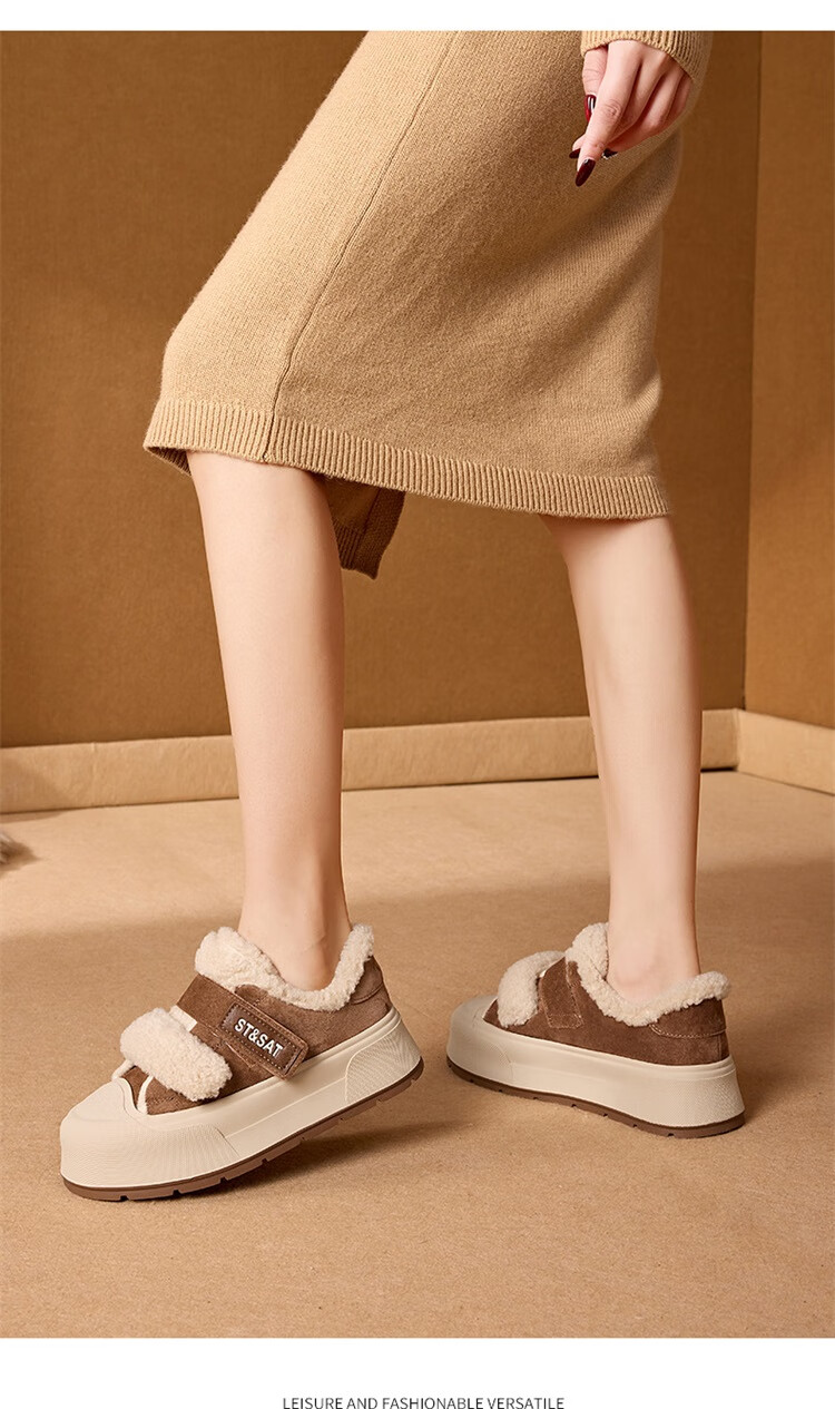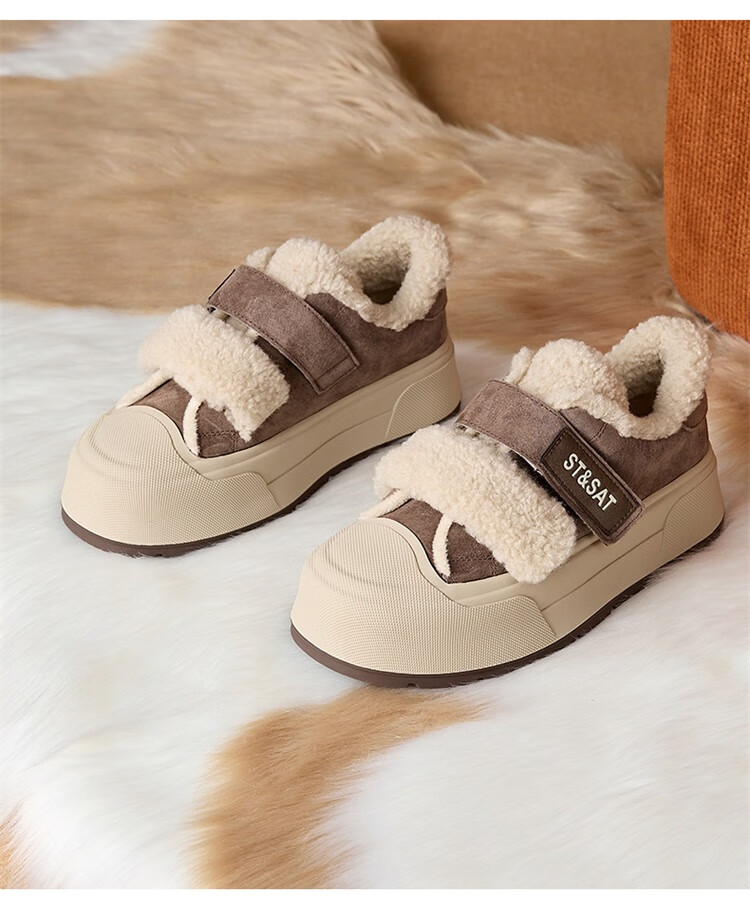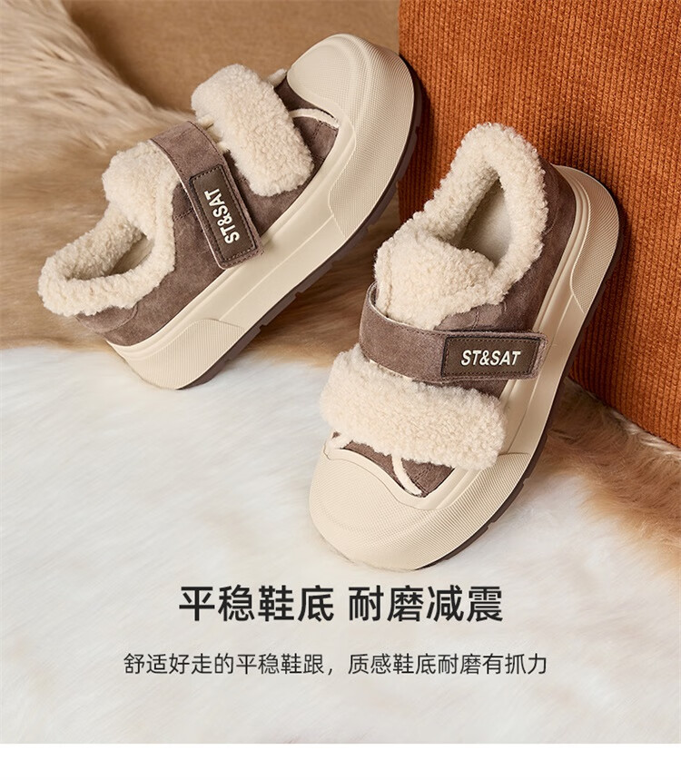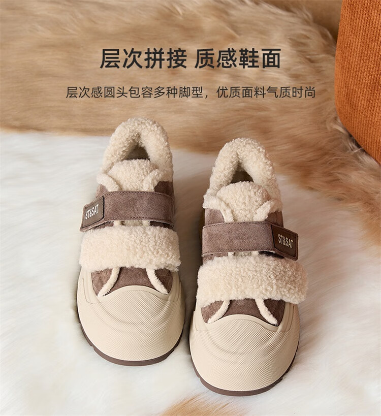 星期六厚底加绒板鞋女2025冬季新款加厚保暖面包鞋魔术贴小个子增高棉鞋 黑色 【厚底加绒】跟高4cm 35