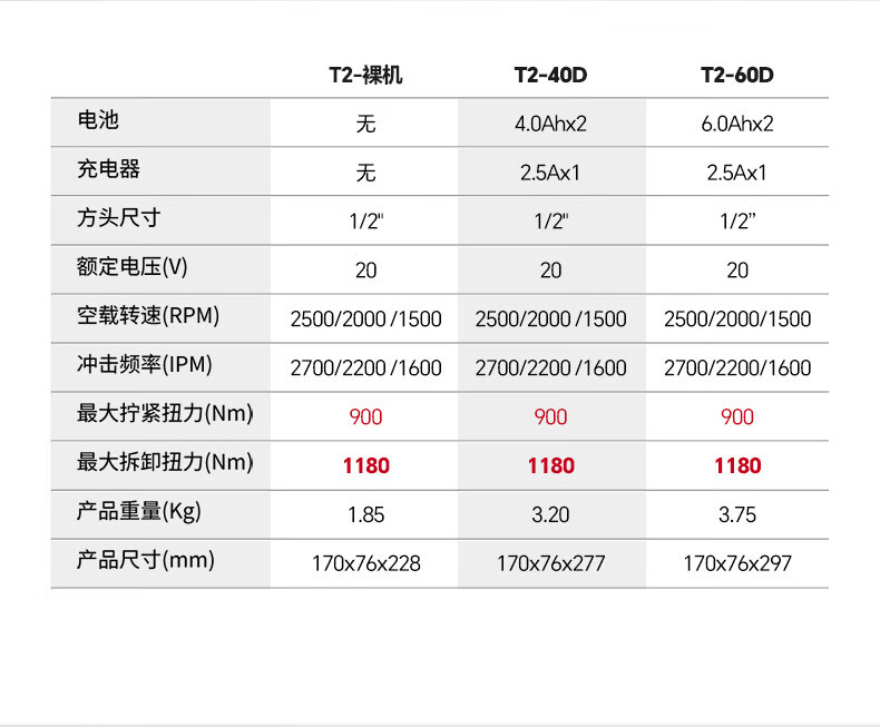 罗特锂电无刷电动扳手20V电动风炮大扭矩电动工具冲击扳手T2 T2裸机彩盒装【无电无充】
