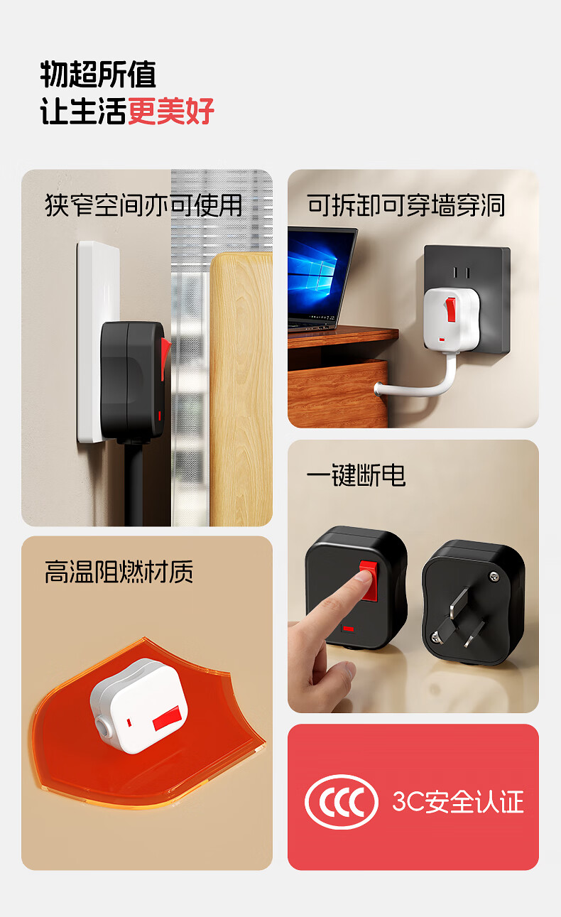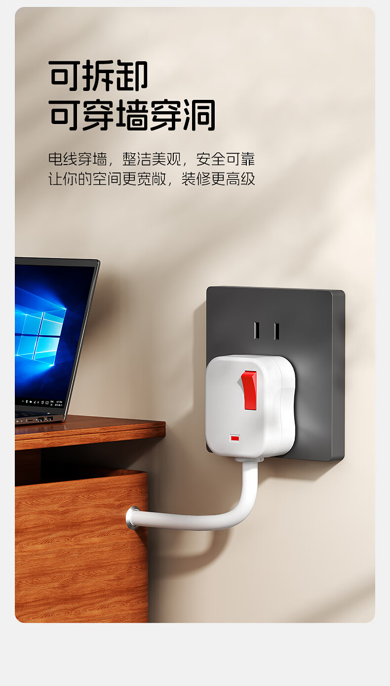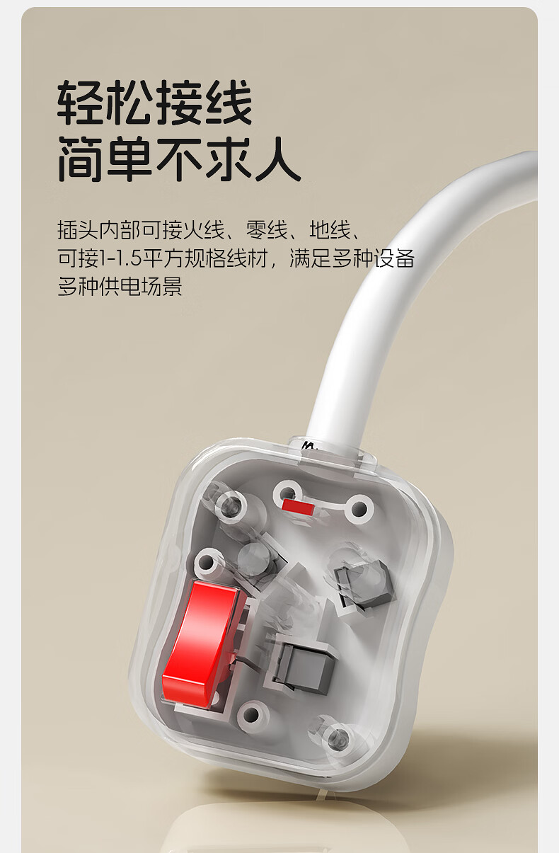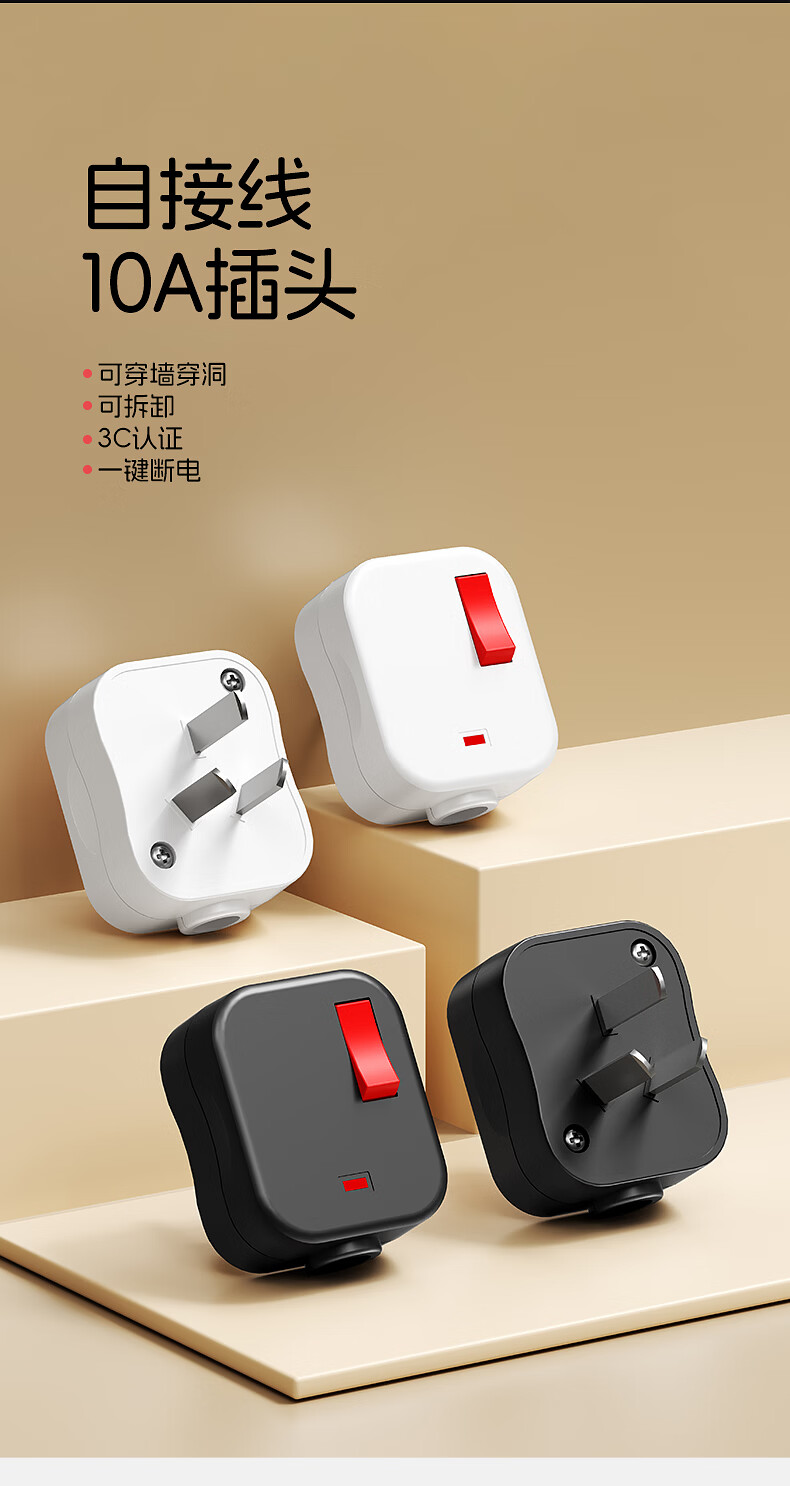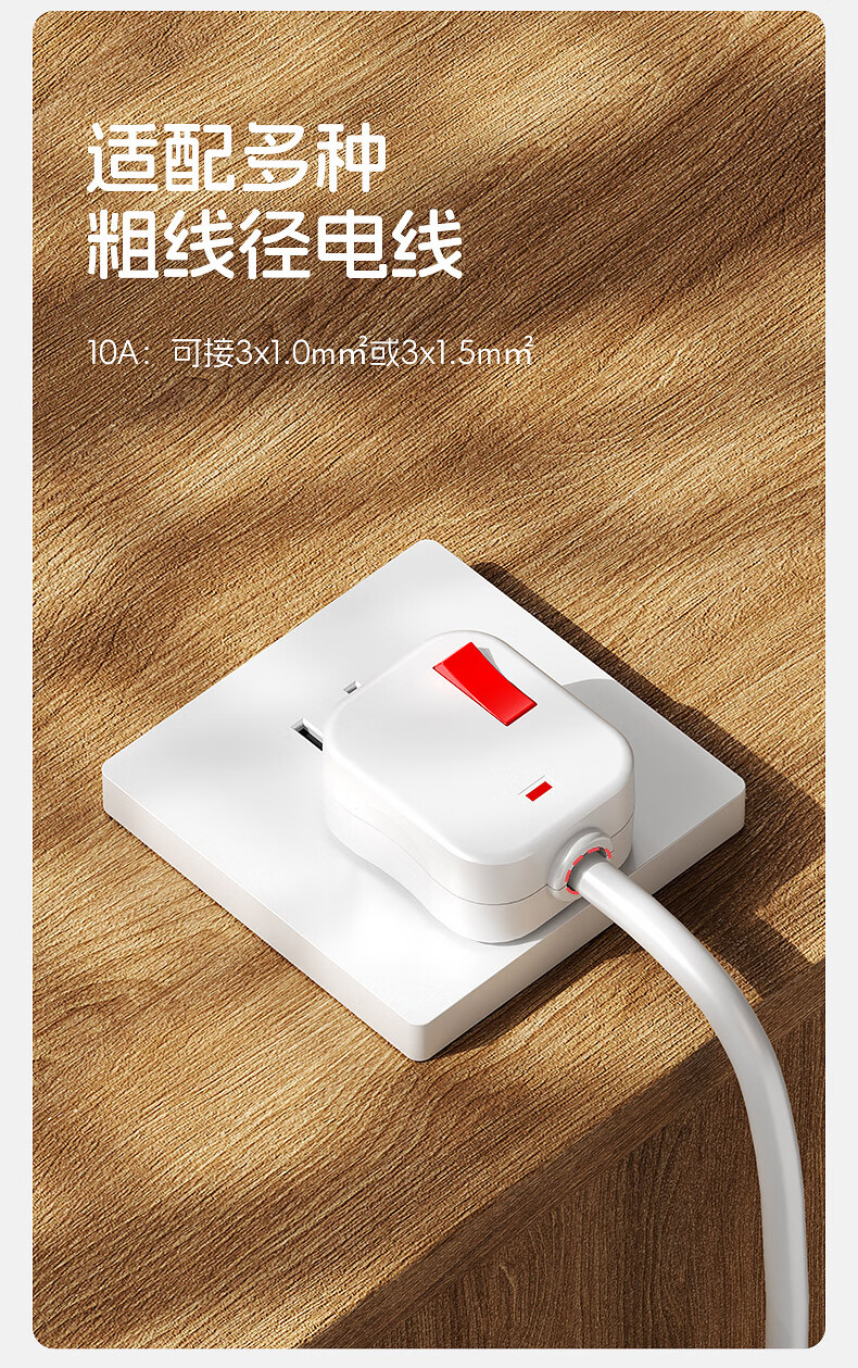 国际电工10A三脚接线电源带开关插头家用空调三孔3脚插接头一键断电可拆卸 10A三插头【白色】带开关带灯