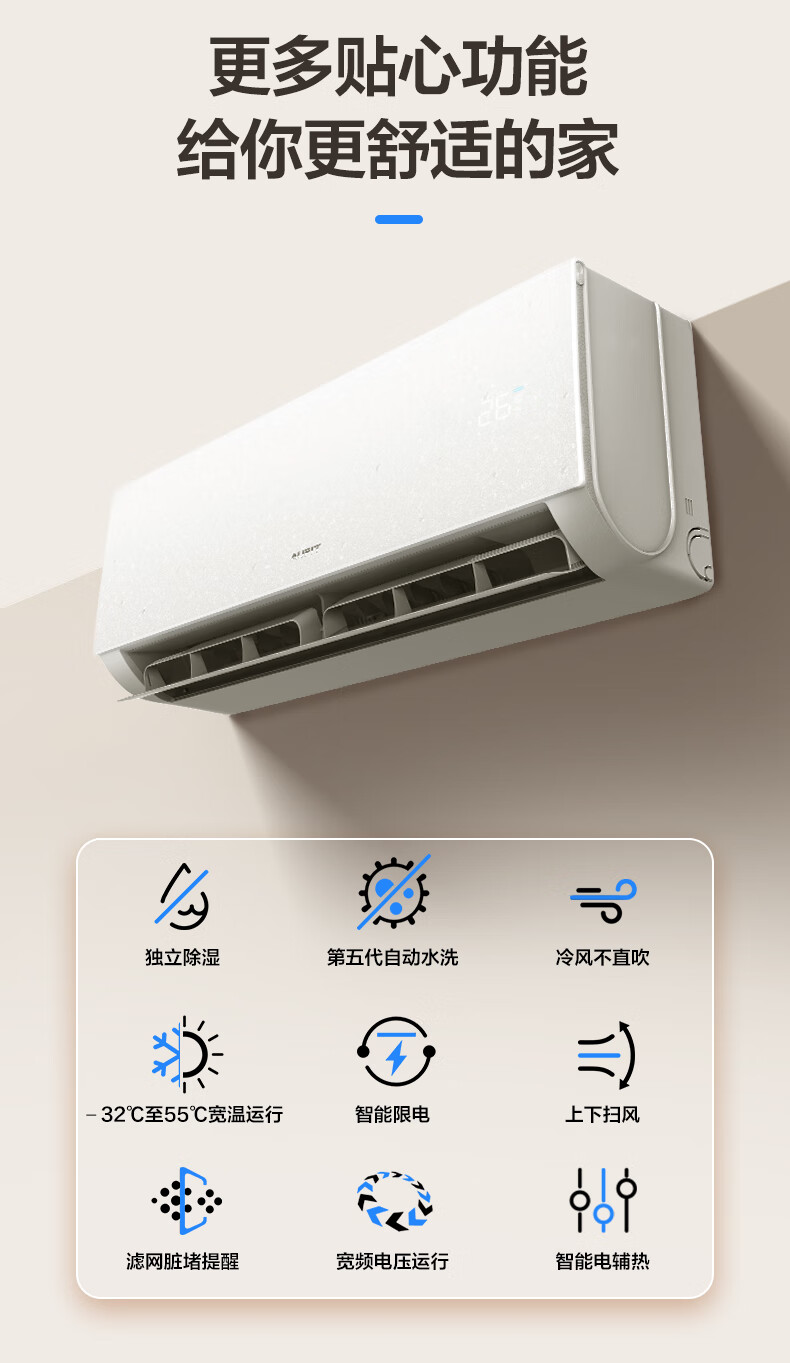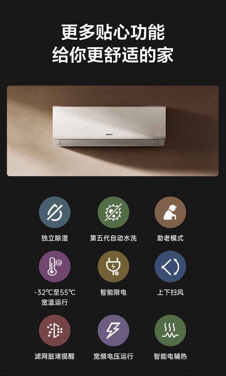 AUFIT空调奥克斯(AUX)出品大1P大1.5P大2P新一级能空调效变频冷暖空调智能省电 大1.5匹 一级能效防直吹自清洁【WIFi款】