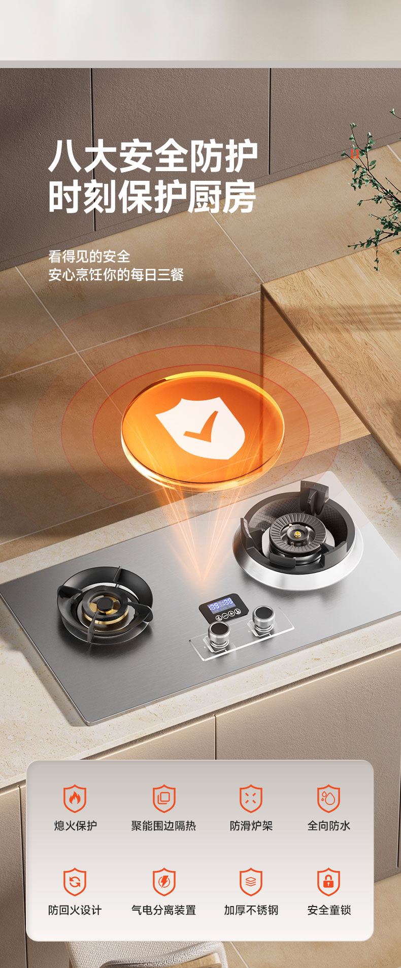 欧派(OPPEIN)顶侧双吸油烟机家用超薄大吸力7字型智能体感控制 三速爆吸大风量烟灶套装一级能效 【翻盖炉头烟灶套装】搭配9腔鸳盎翻盖定时灶-液化气