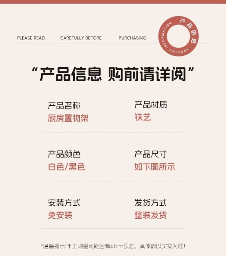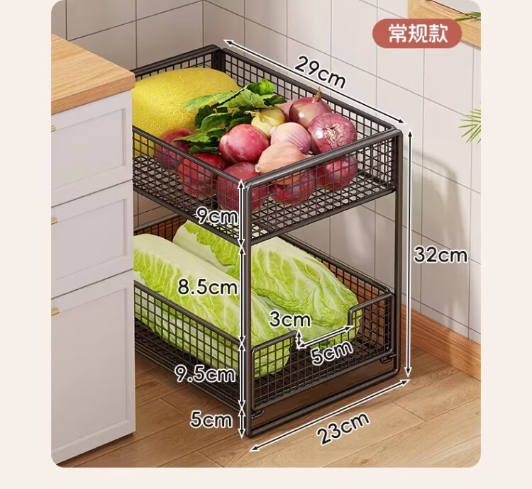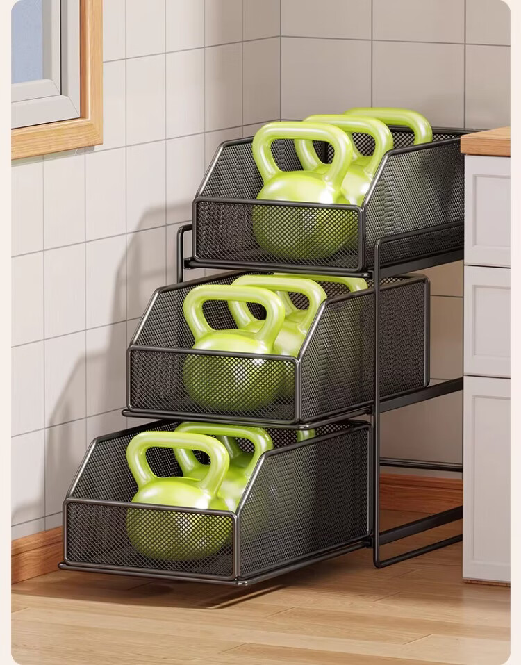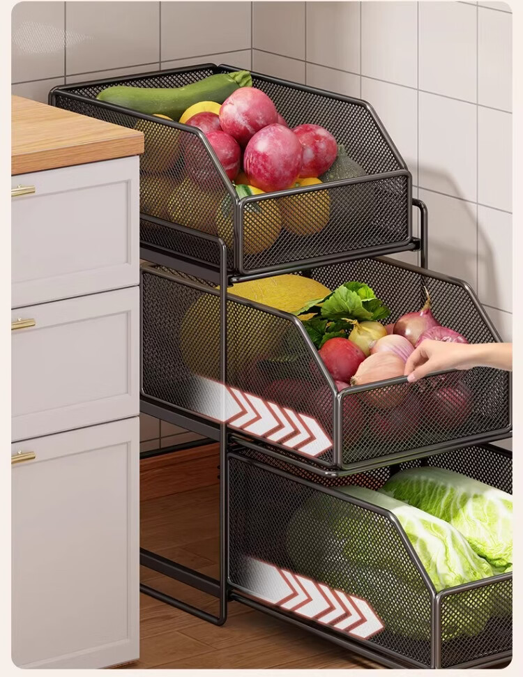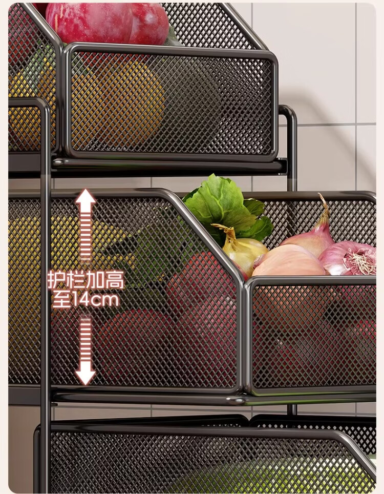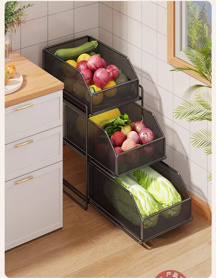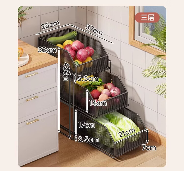 尔思家厨房收纳置物架落地多功能菜篮子储物多层收纳家用橱柜内置分层架 黑色三层