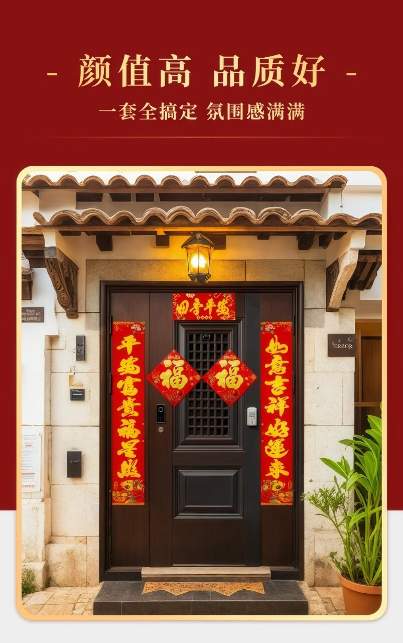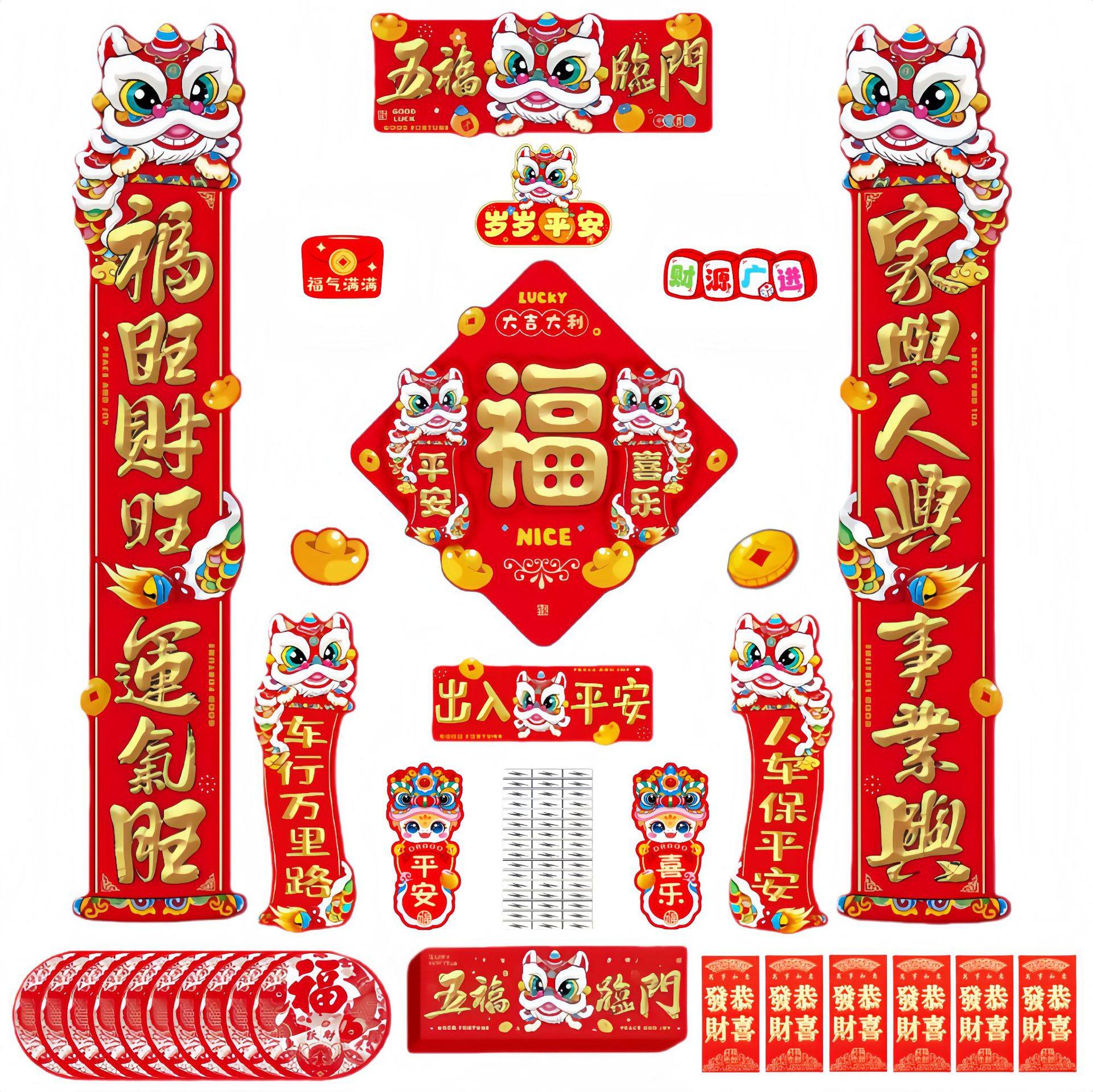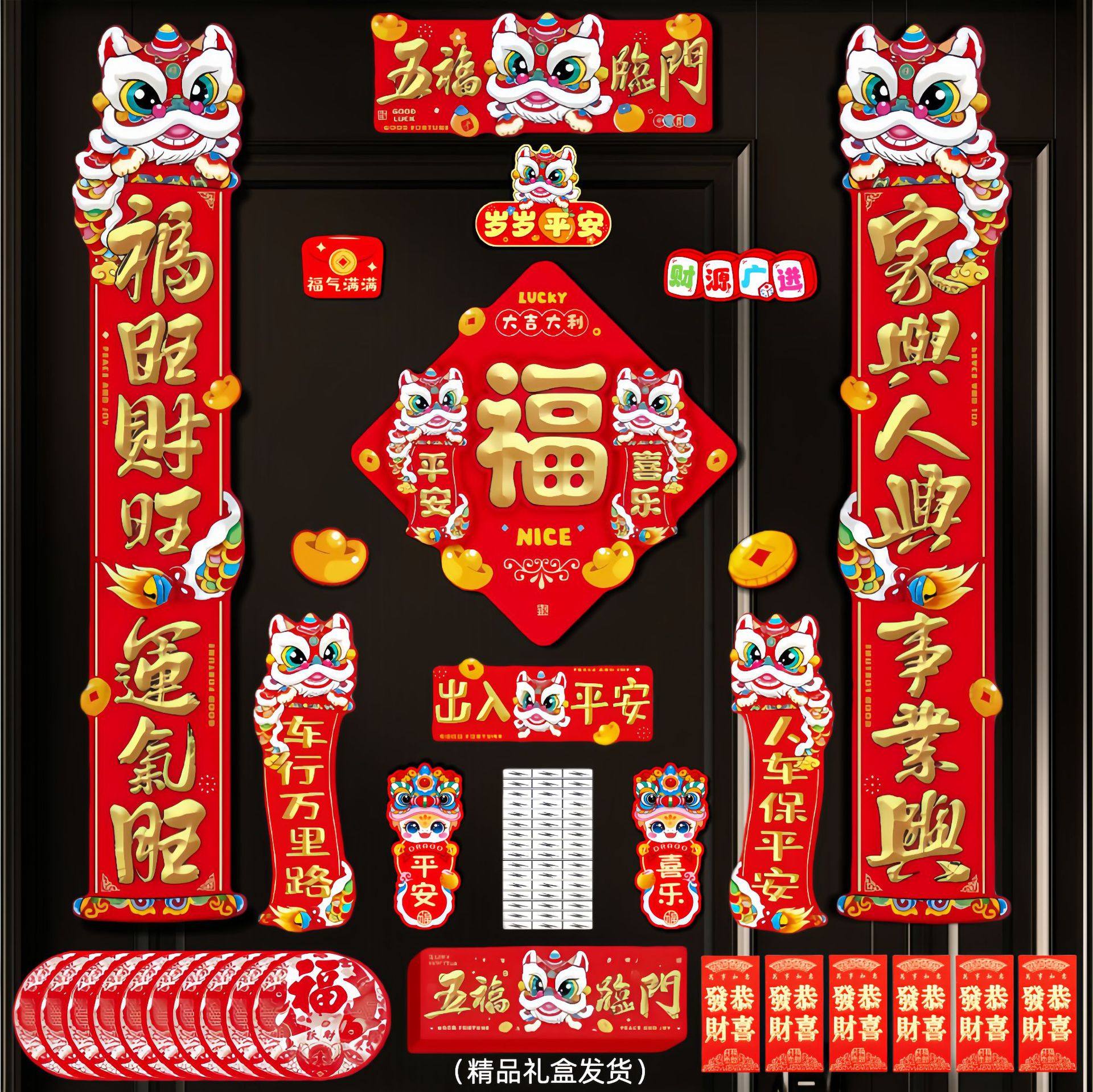 2026新款春节磁吸对联马年春联新年福字门贴装饰过年家用门联 五福临门磁吸对联88件套(红包款式随机发)