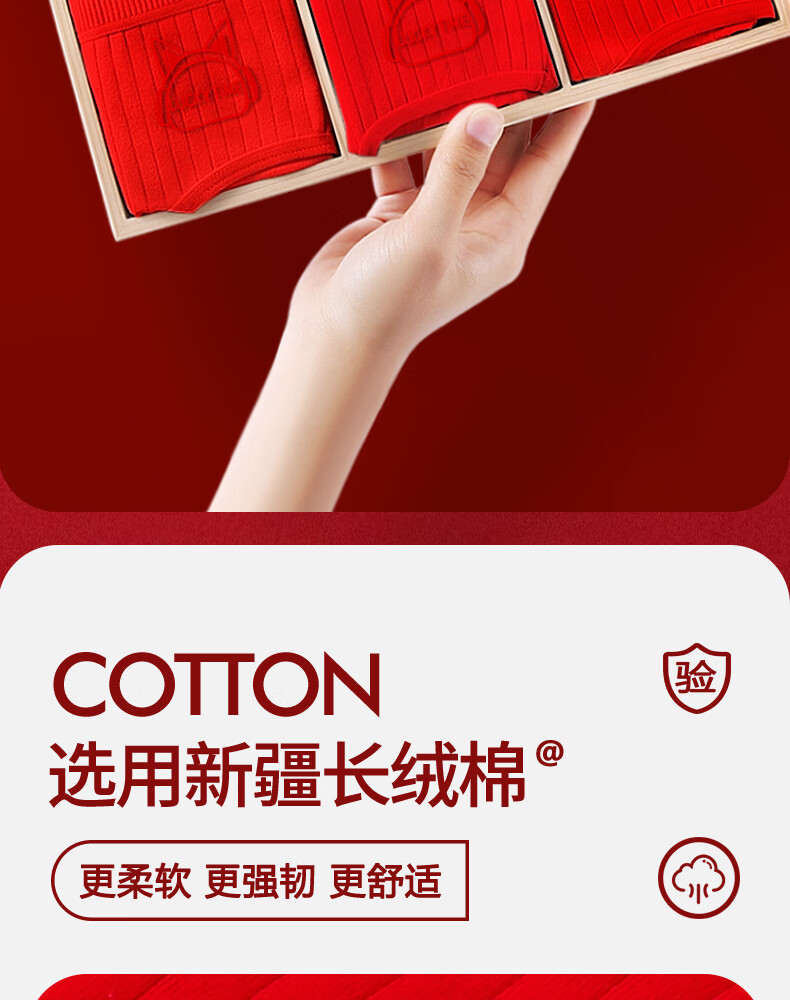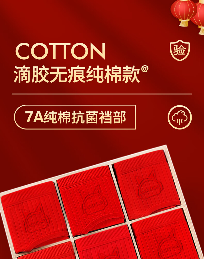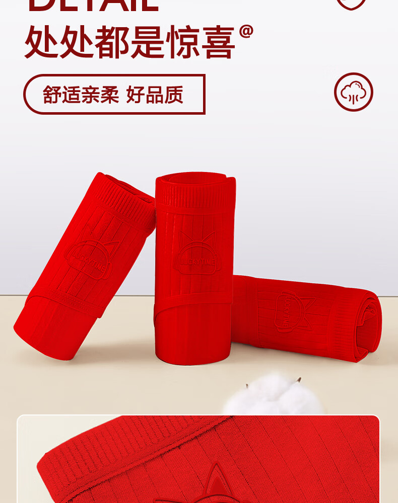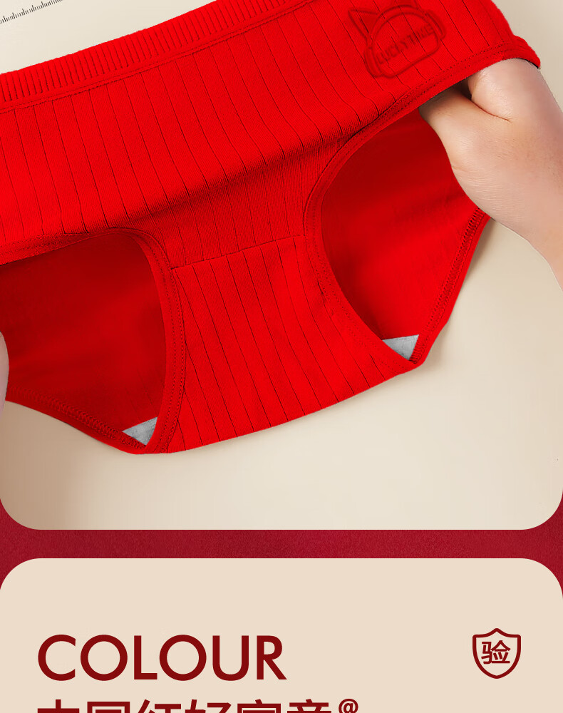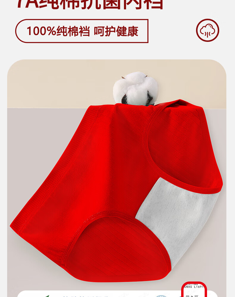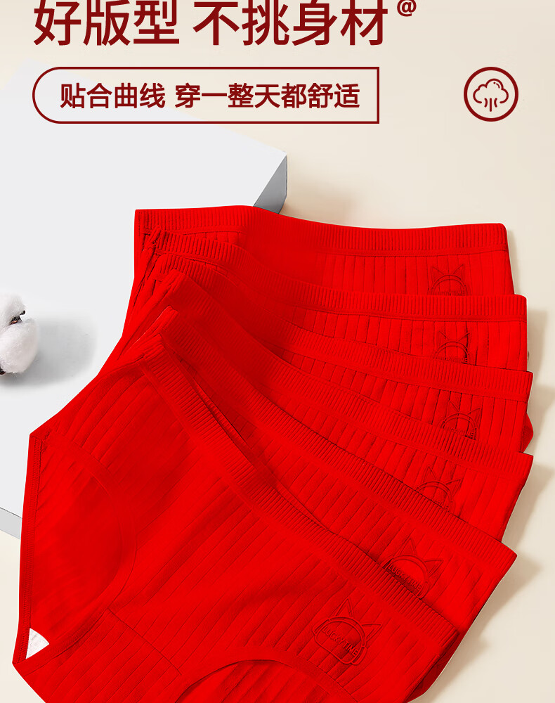本命年大红色纯棉内裤女抗菌内裆舒适透气鸿运结婚喜庆三角裤大码 1条装-随机颜色 2XL (130-150斤)