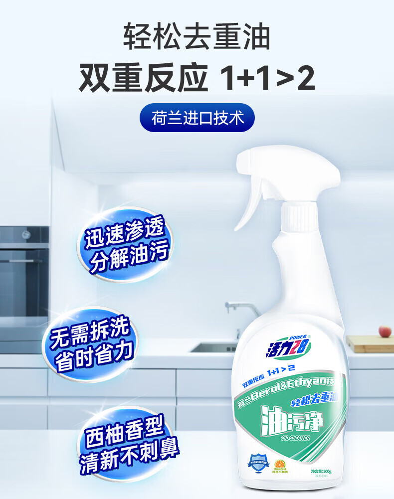 【五星电器专享】活力28油烟机清洗剂厨房重油污净强力去污轻松 油污净500g(含泵头)