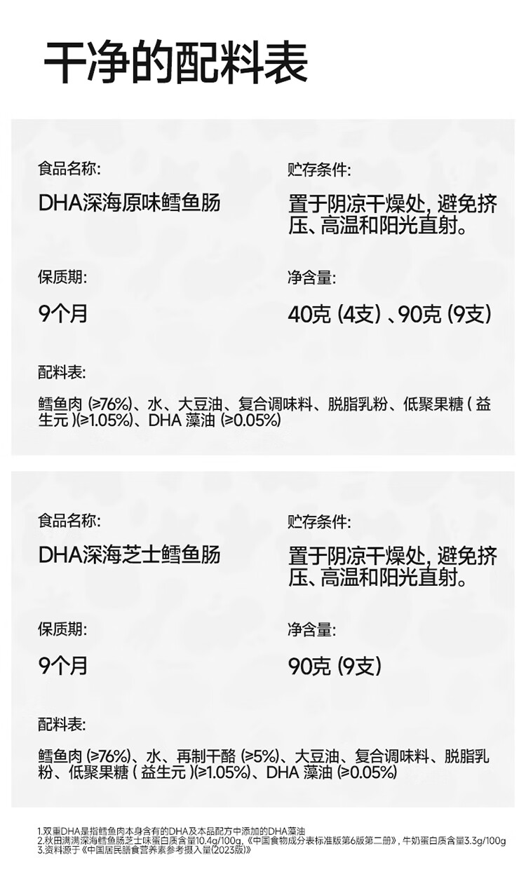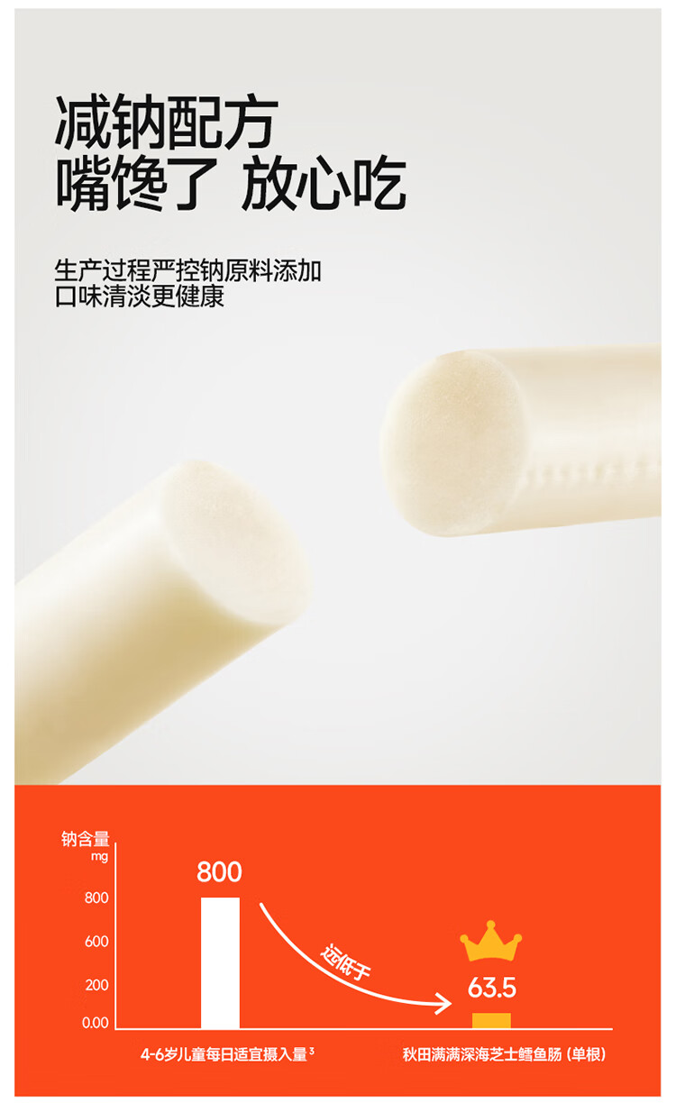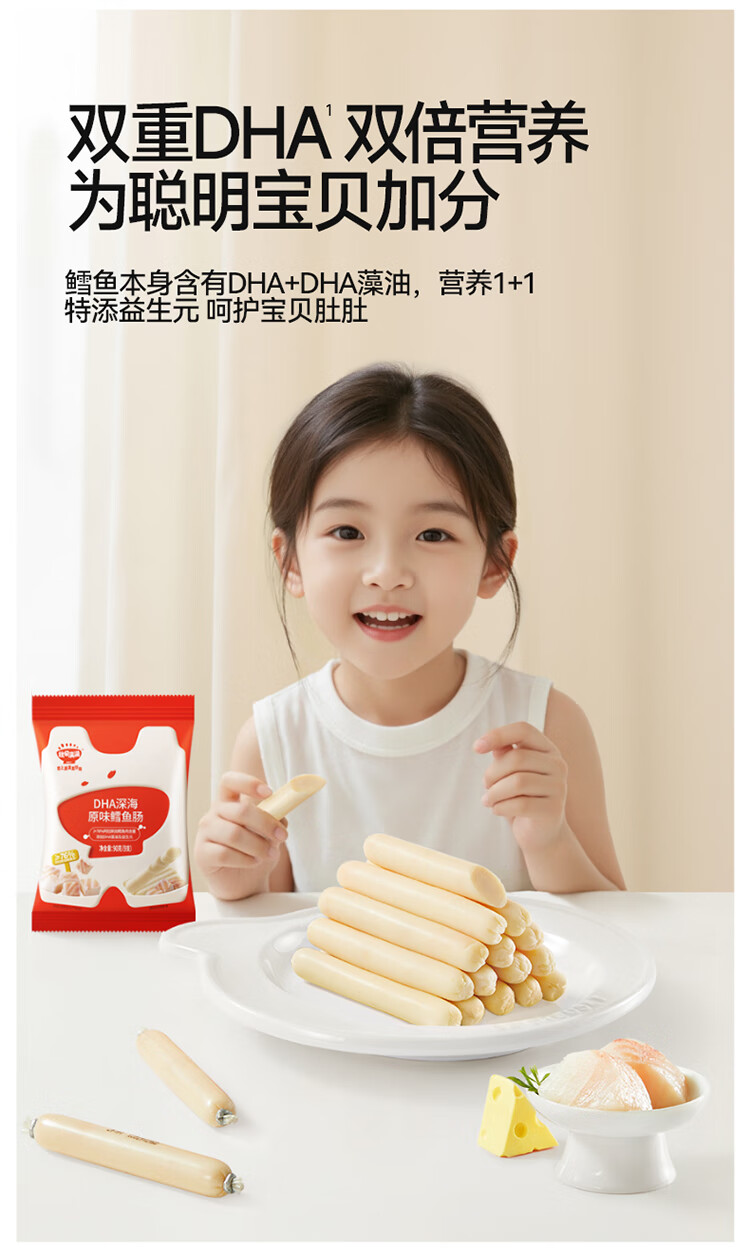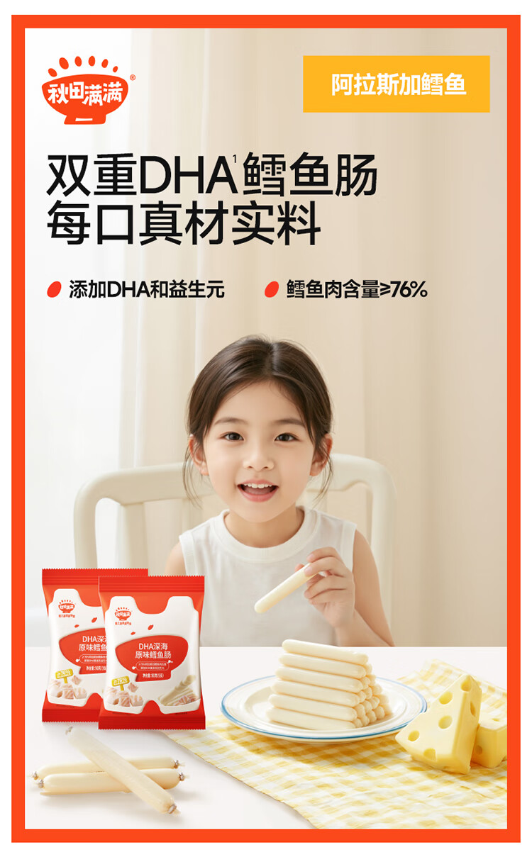 秋田满满 DHA深海鳕鱼肠肉肠原味儿童宝宝零食-享婴幼儿宝宝零食谱90g