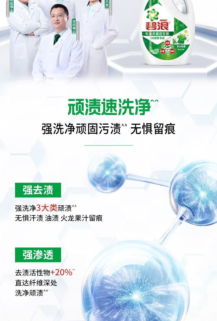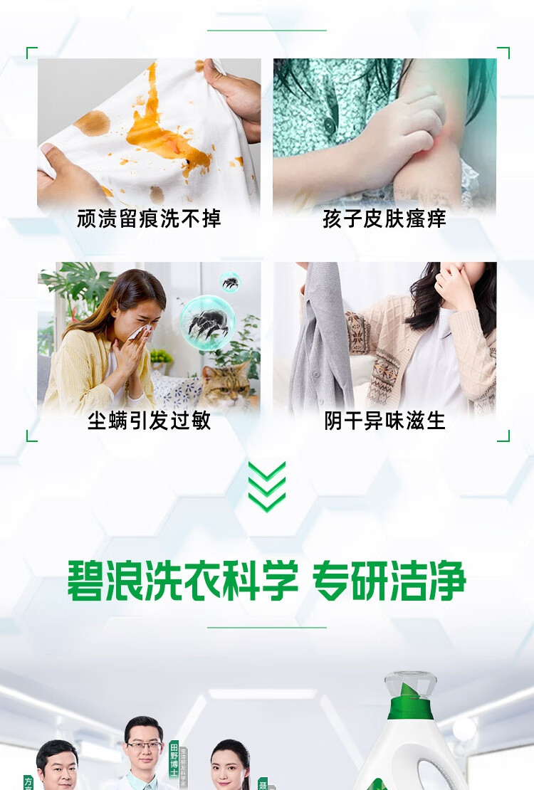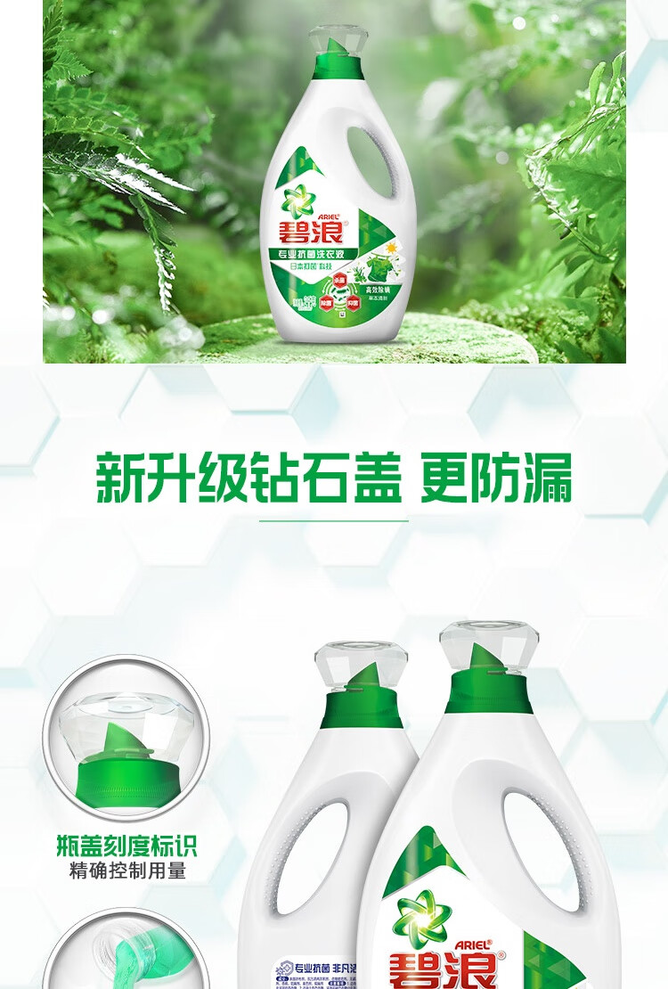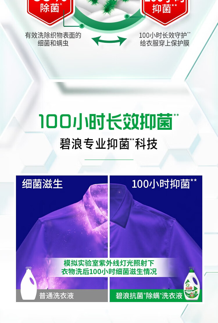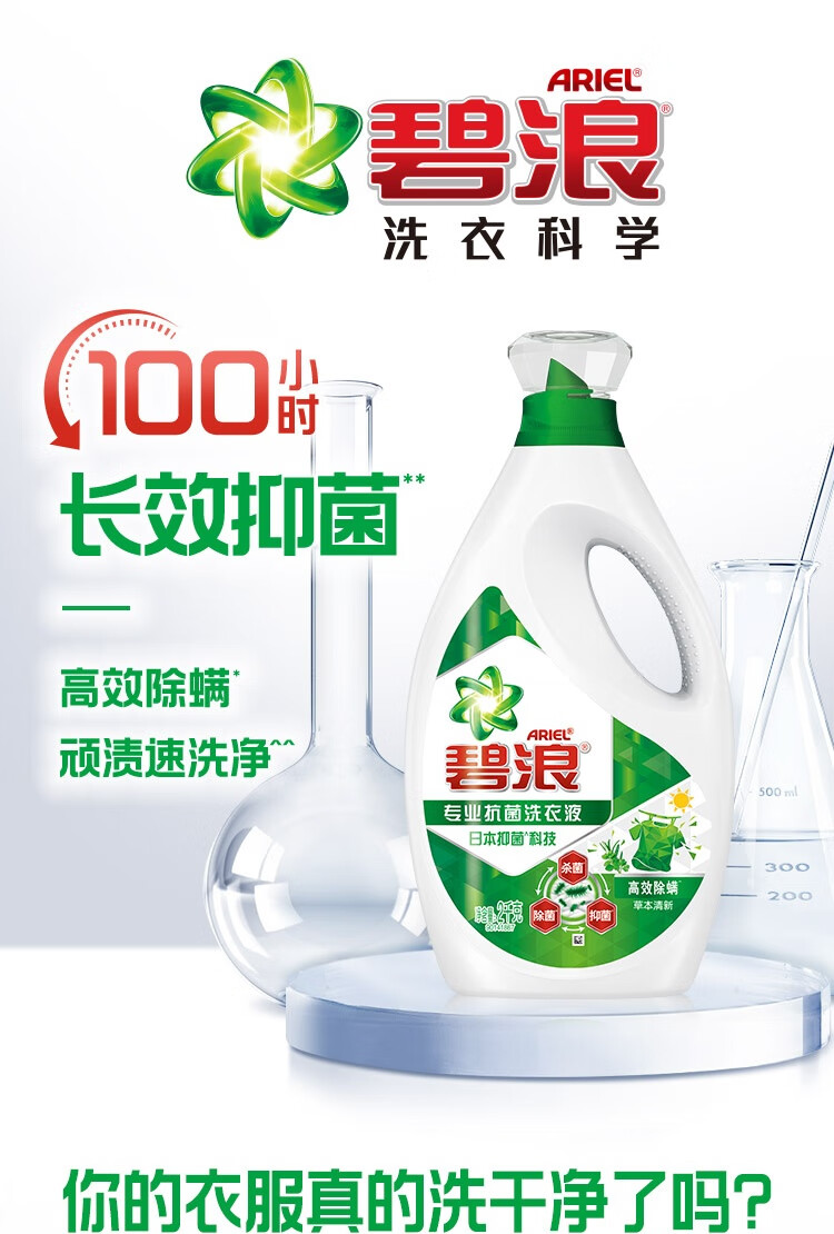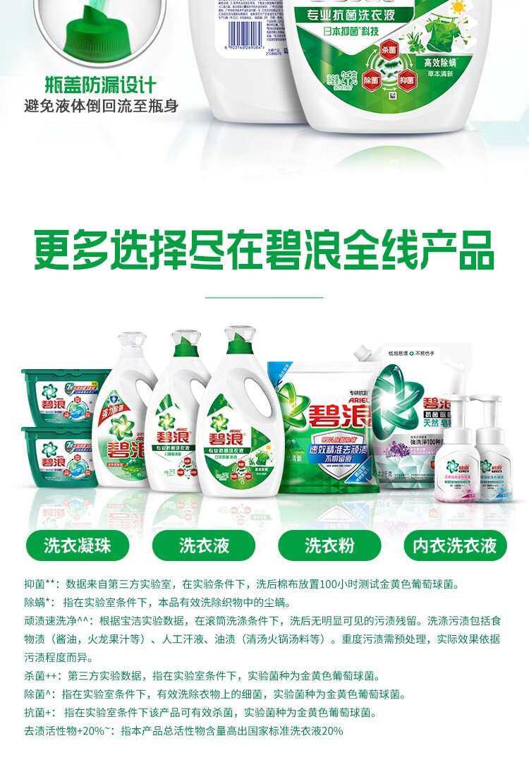 碧浪除菌洗衣液草本清新12斤装(2kg*2瓶+500g*4袋) 杀菌除螨