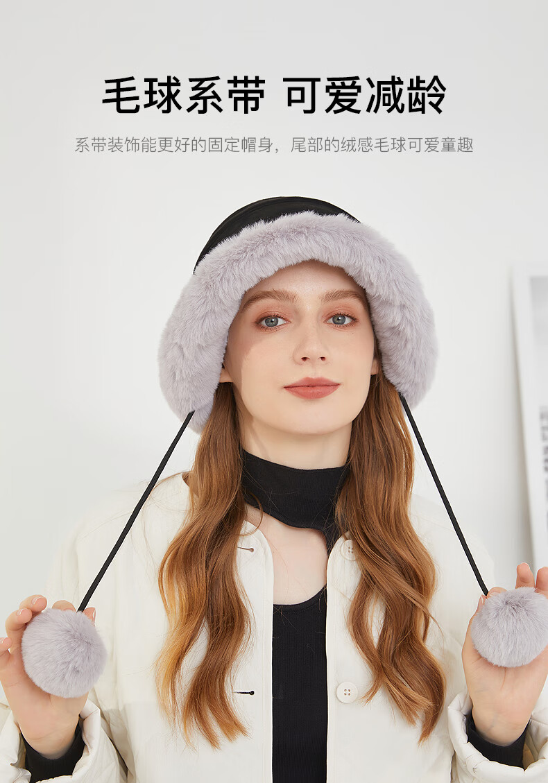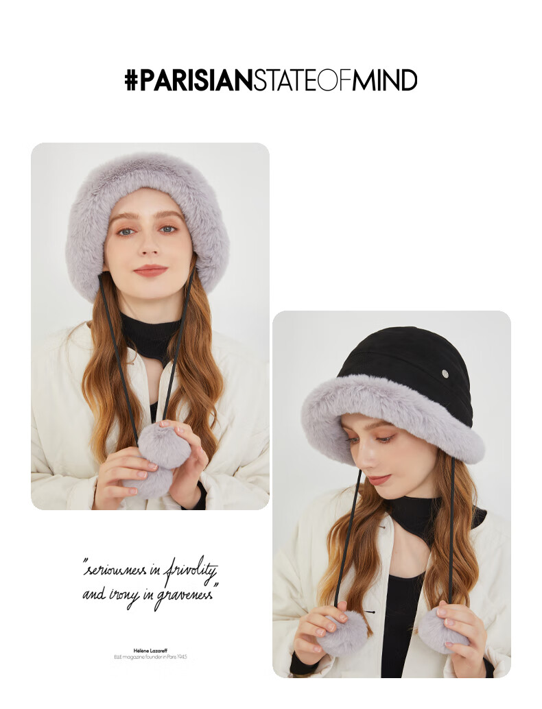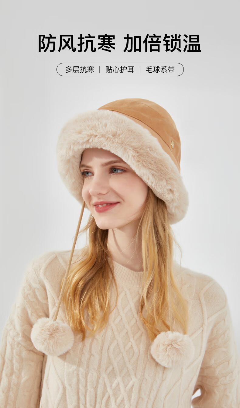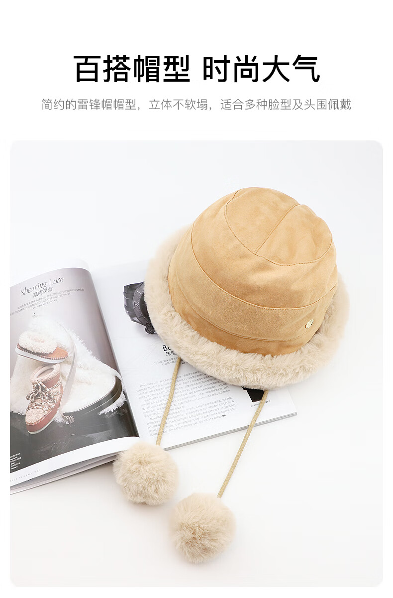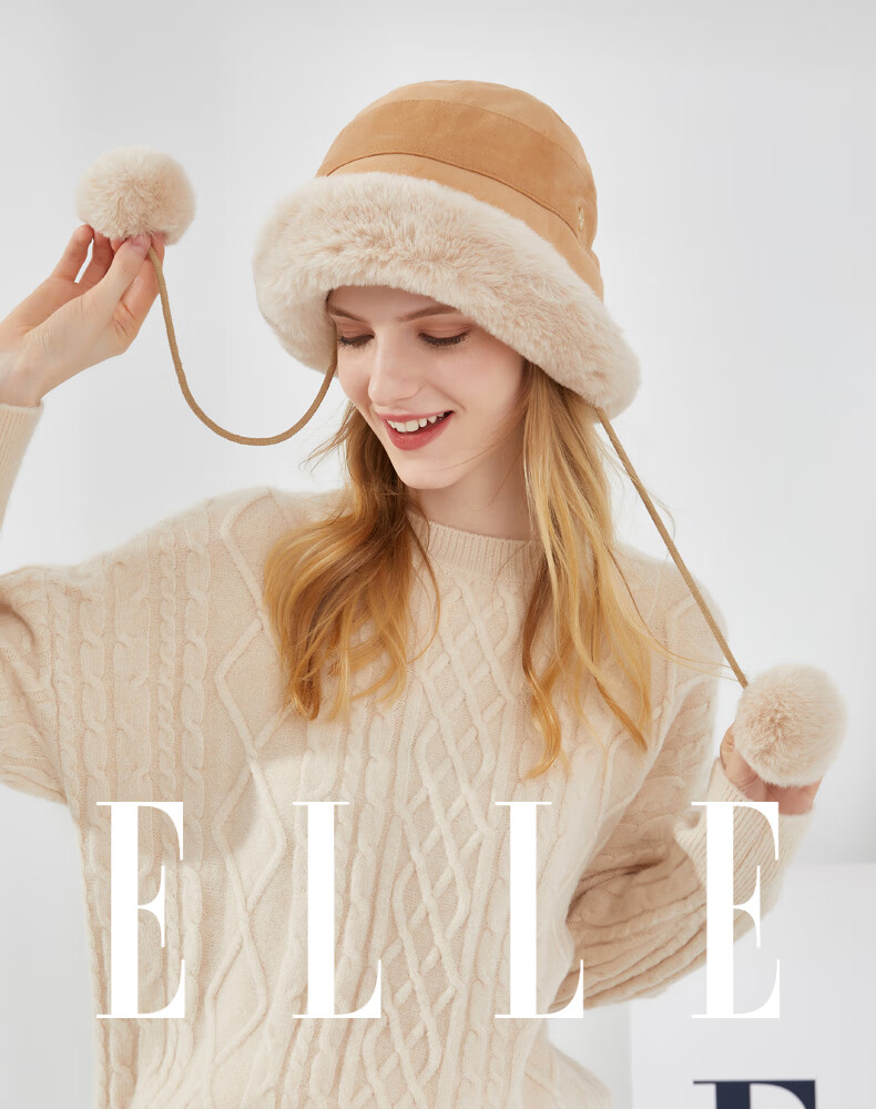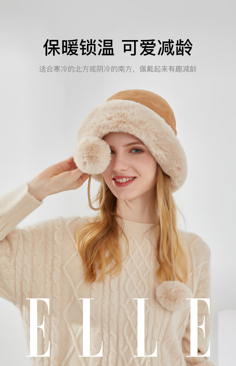 ELLE帽子冬季女保暖毛线帽生日礼物女士毛球雷锋帽巴拉克拉法帽