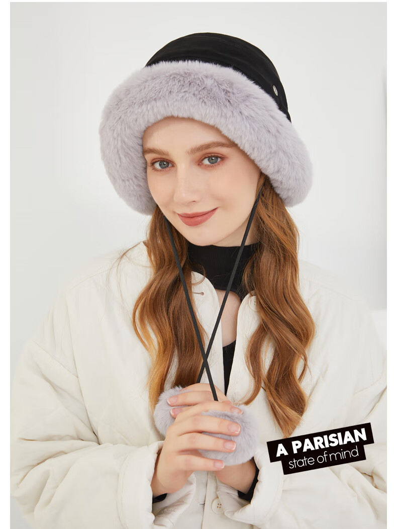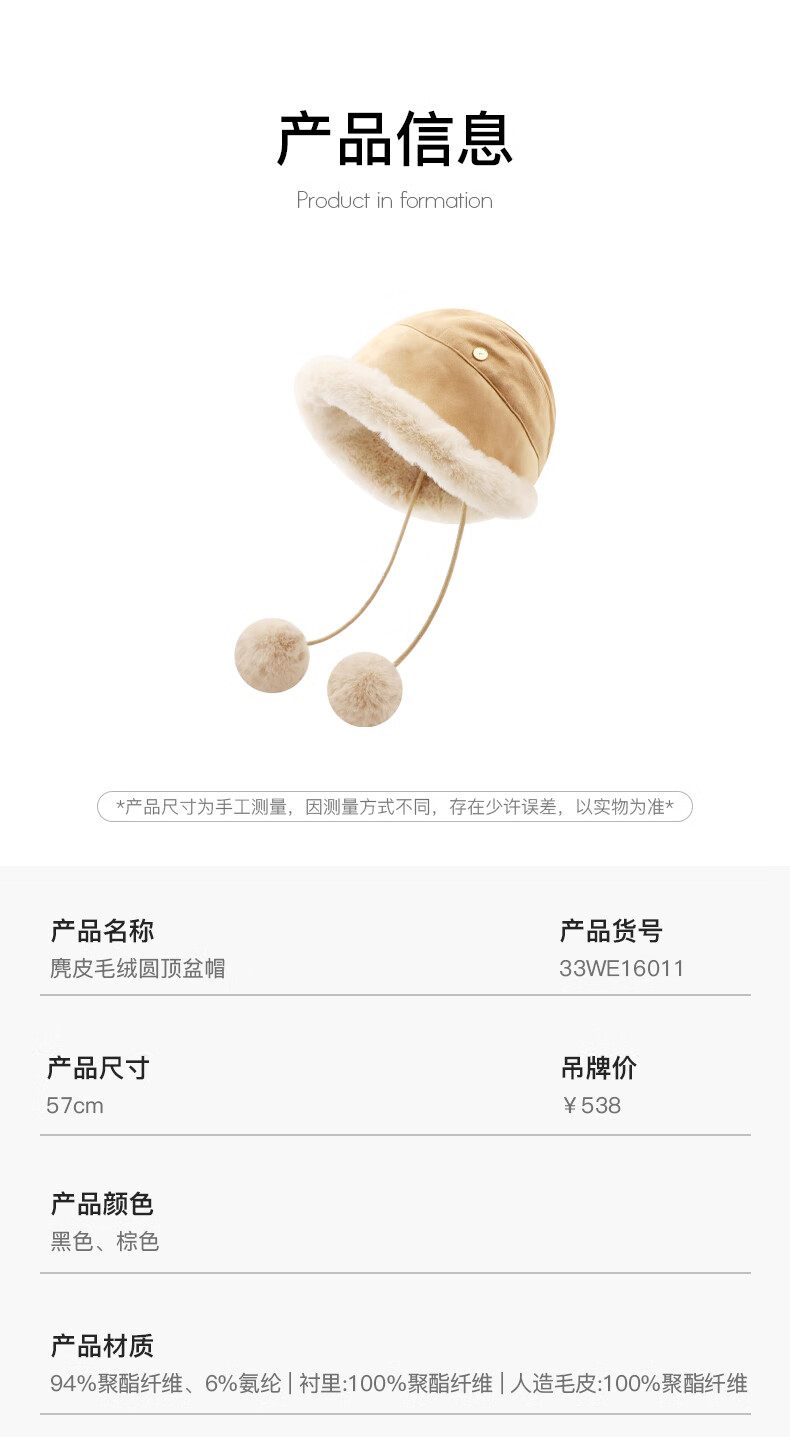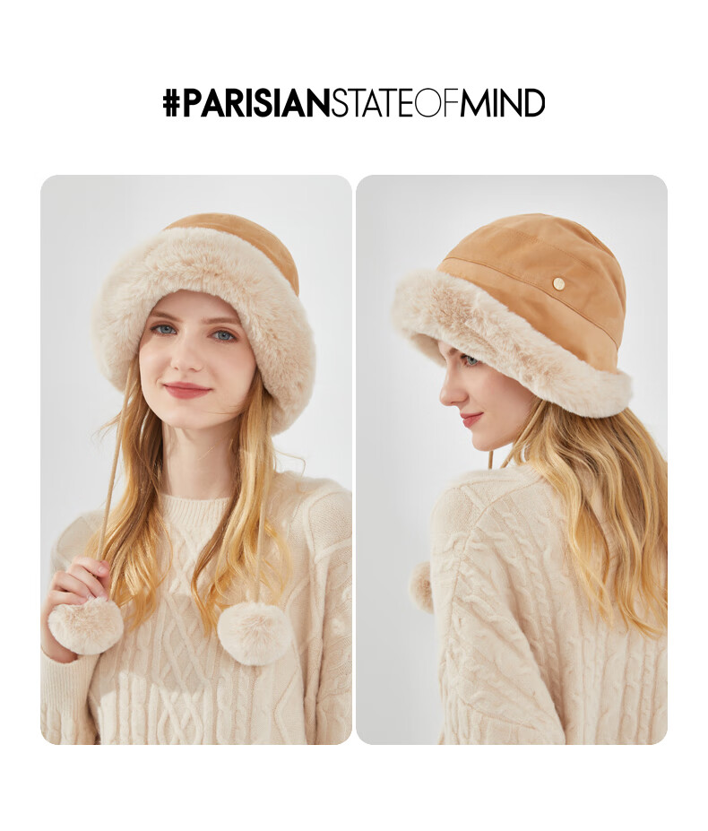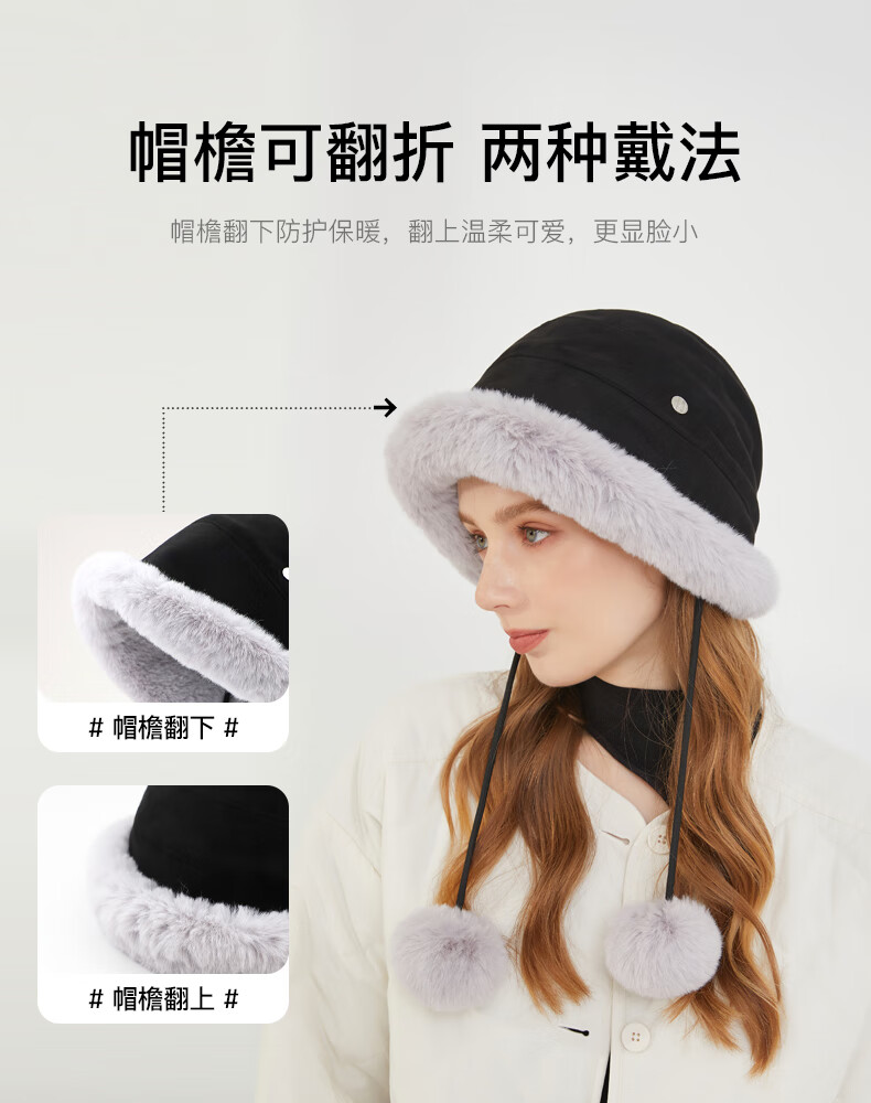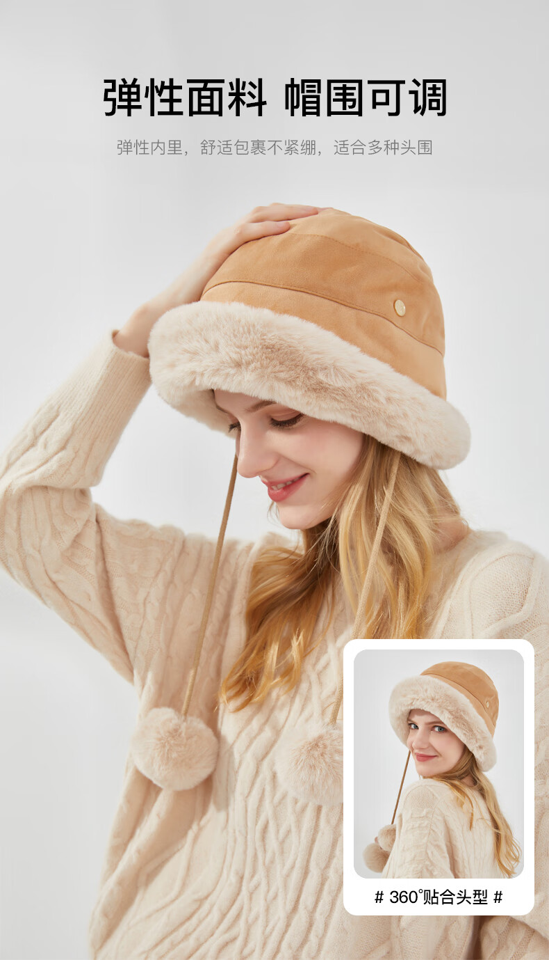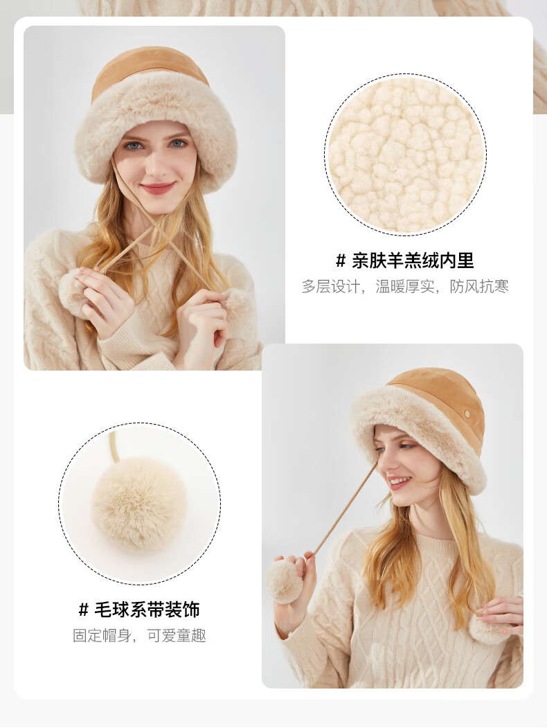 ELLE帽子冬季女保暖毛线帽生日礼物女士毛球雷锋帽巴拉克拉法帽