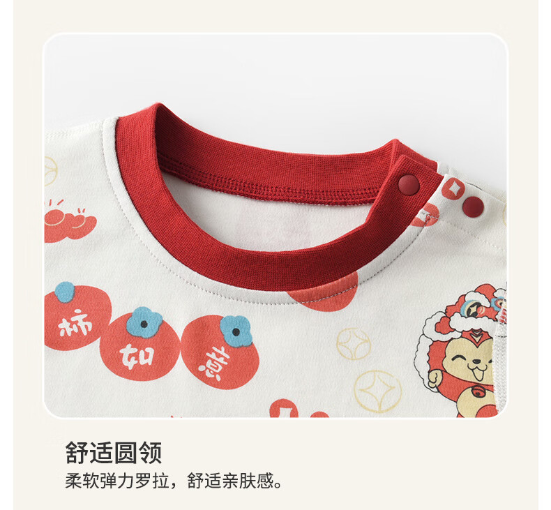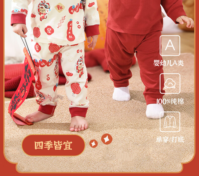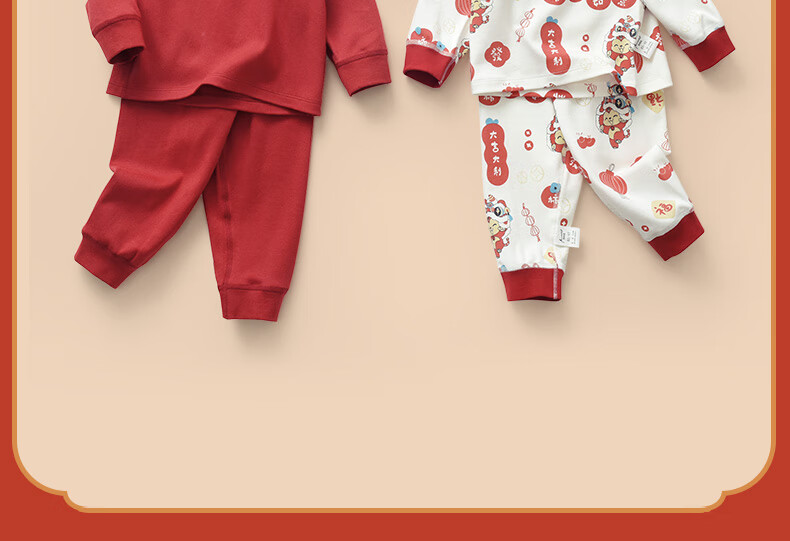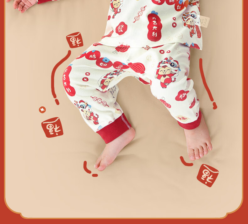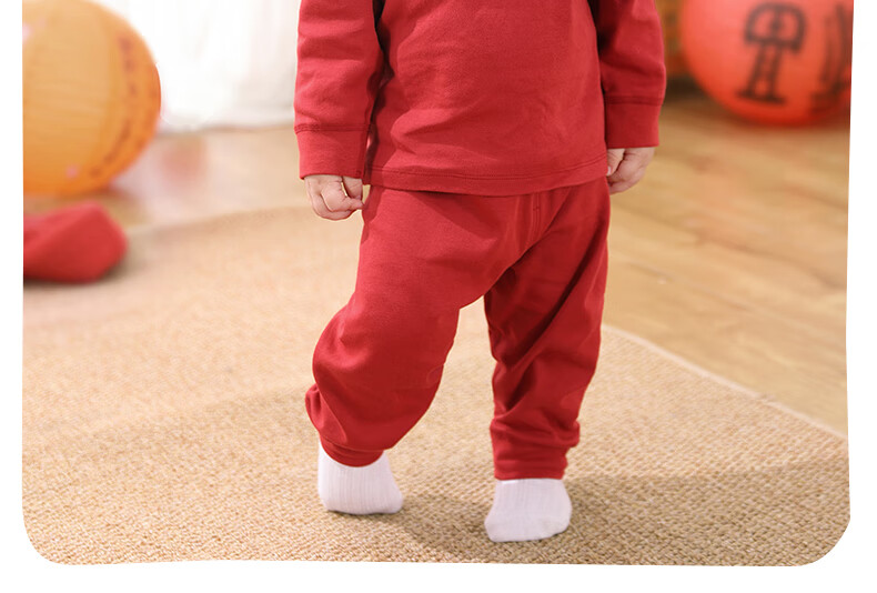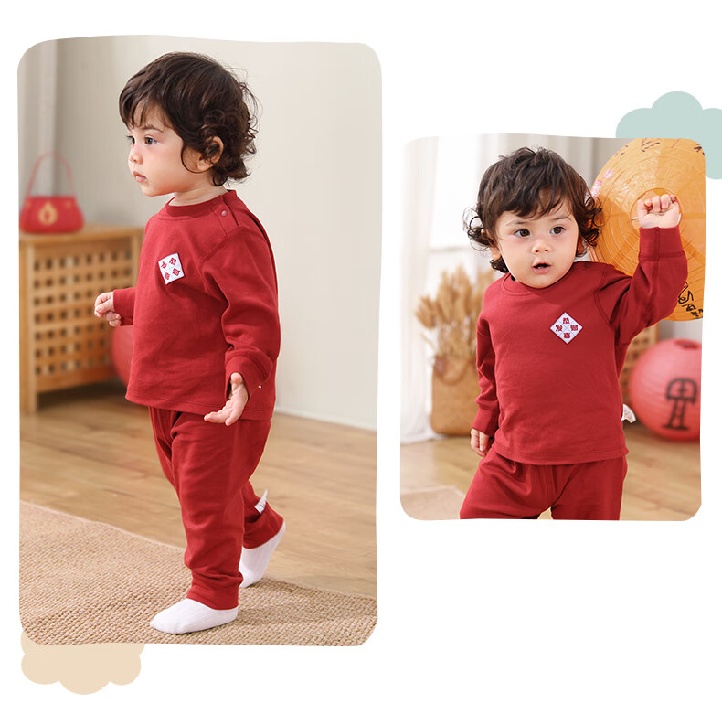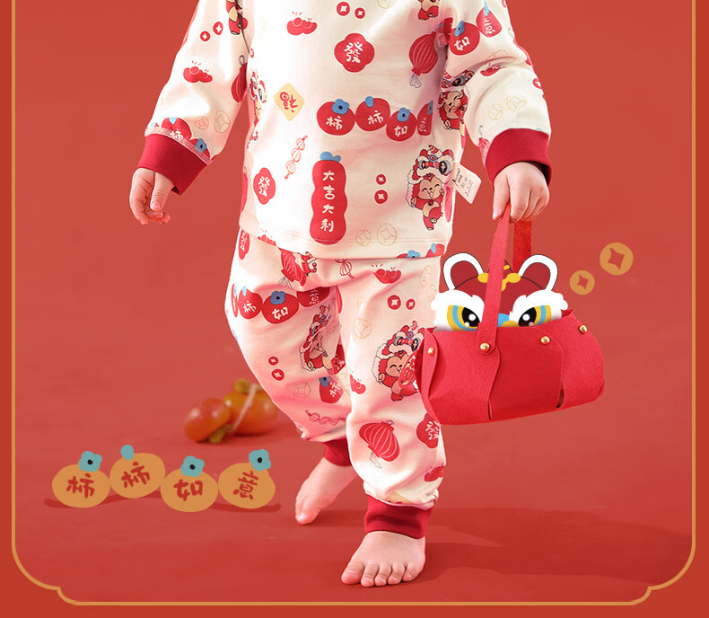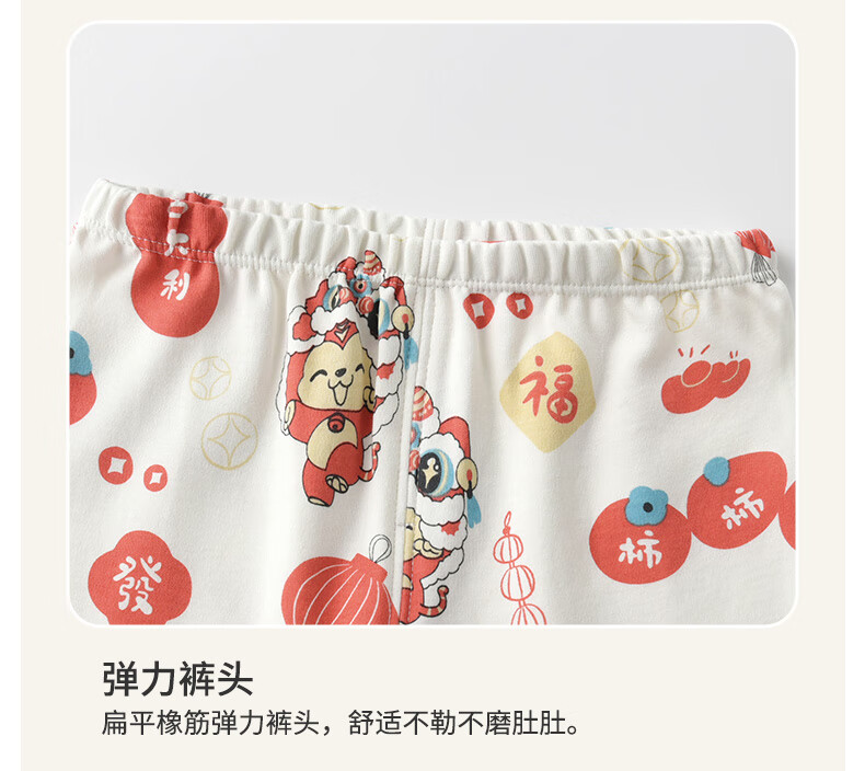 棉棉柔宝宝新年衣服儿童秋衣秋裤套装过年喜庆婴儿年服红色男童女童内衣 柿柿如意 130cm