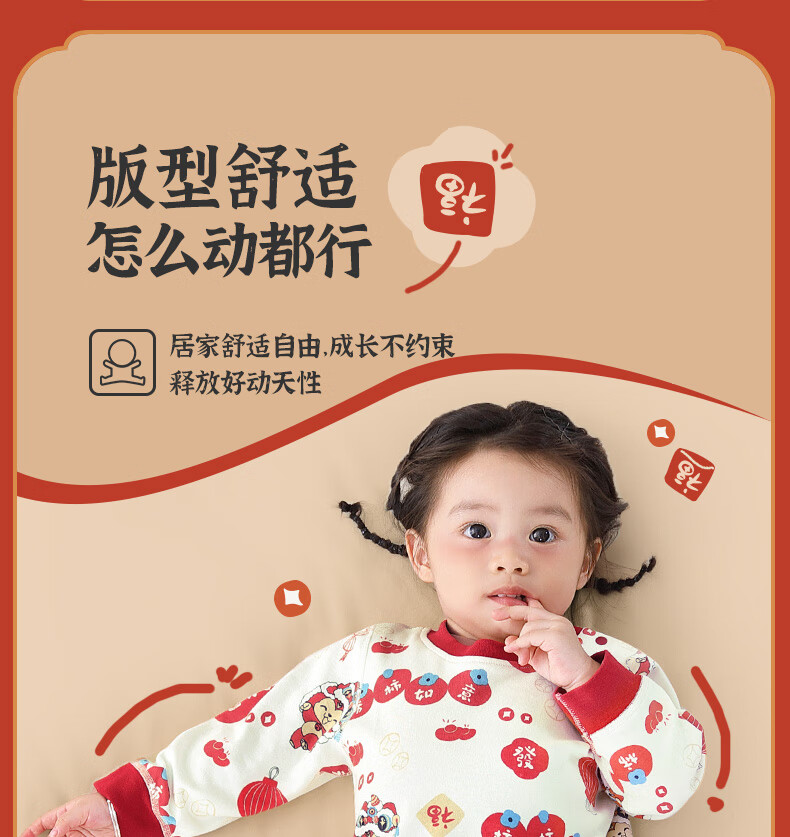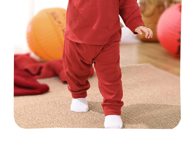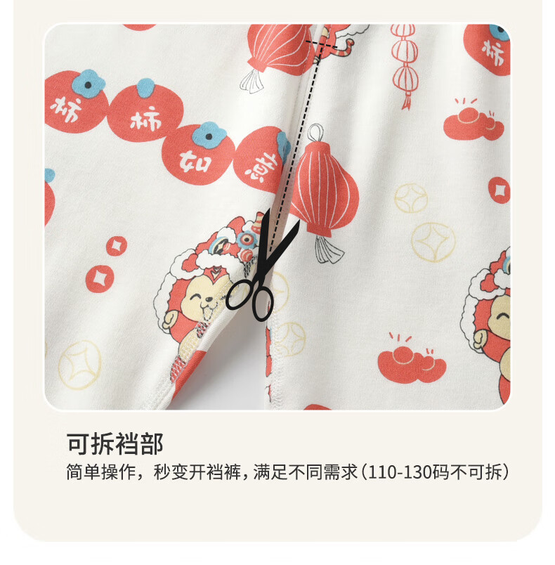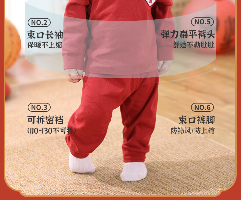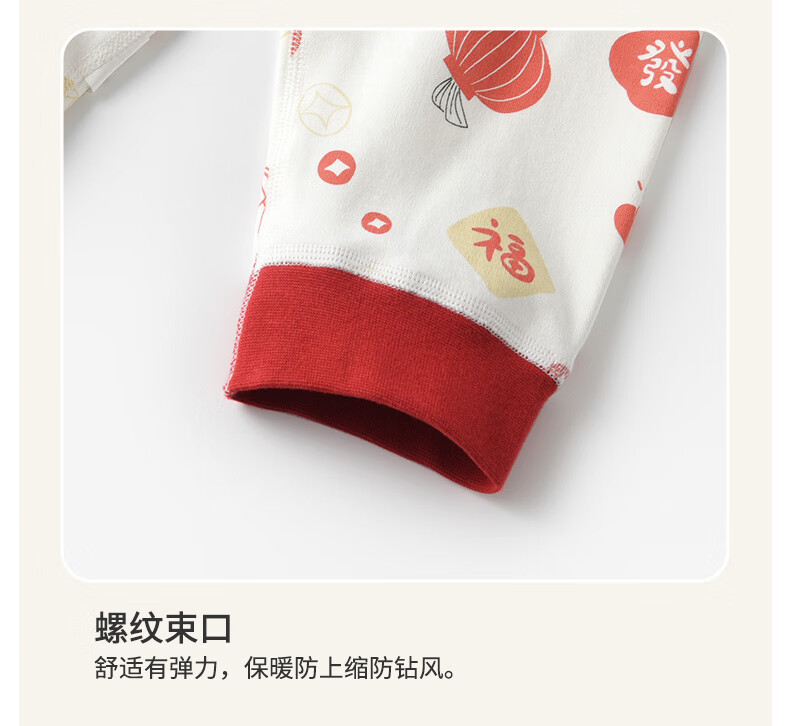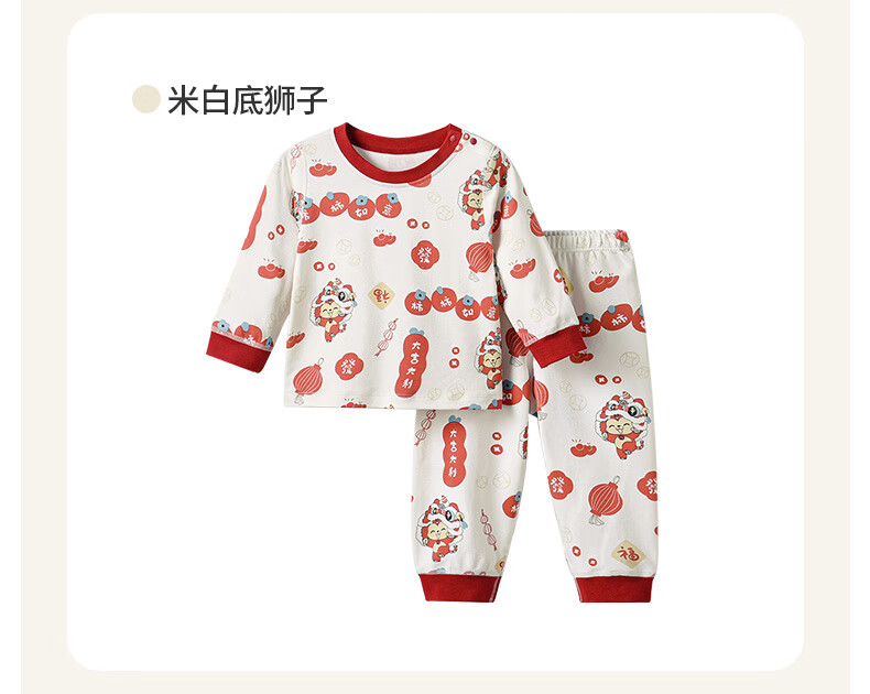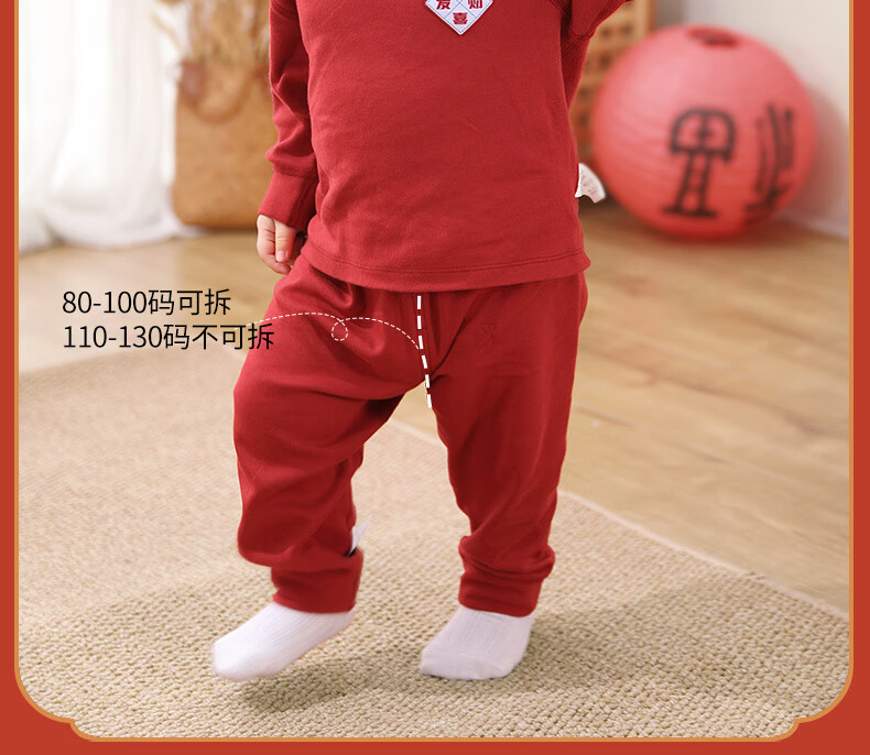 棉棉柔宝宝新年衣服儿童秋衣秋裤套装过年喜庆婴儿年服红色男童女童内衣 柿柿如意 130cm