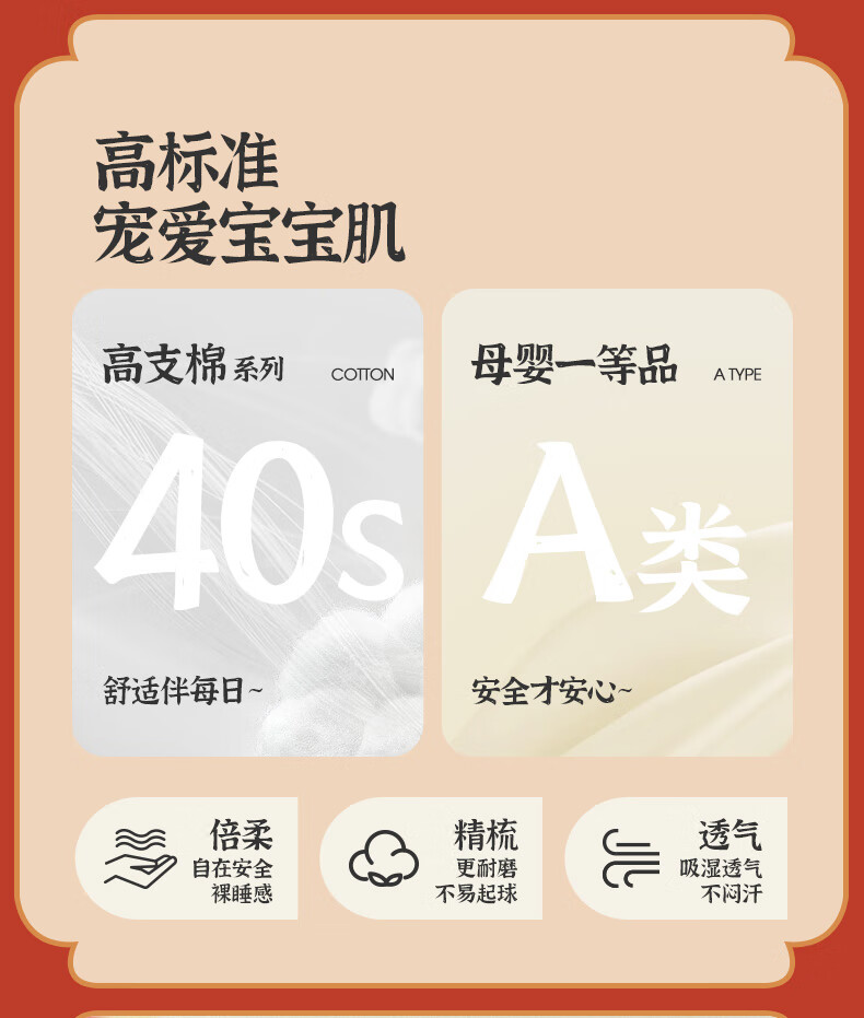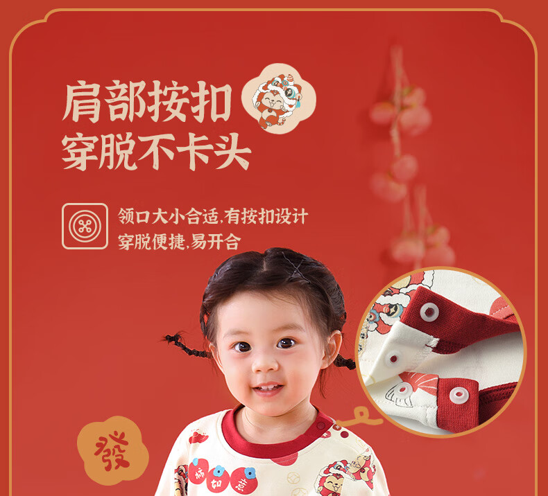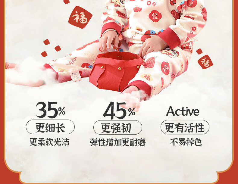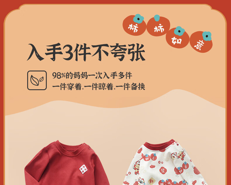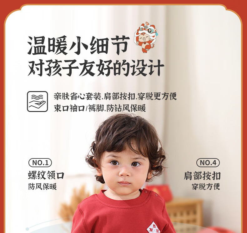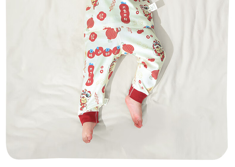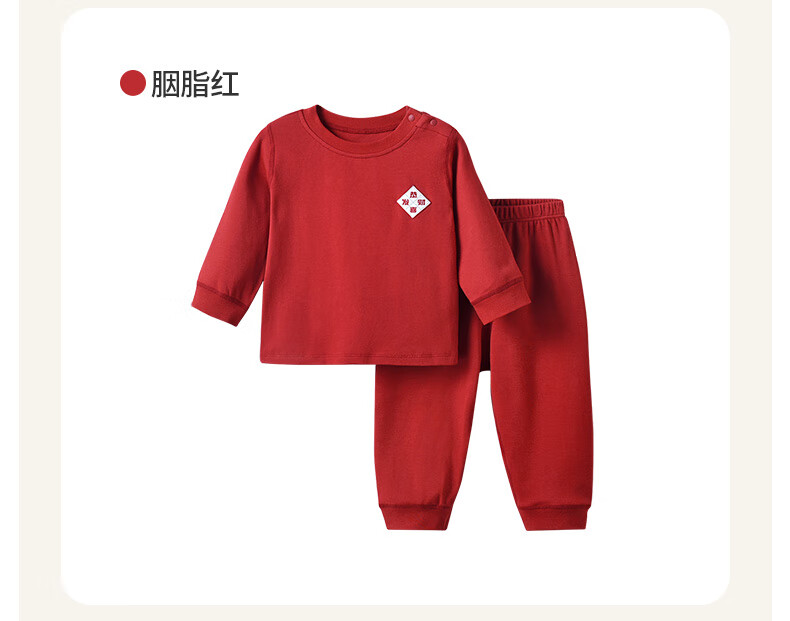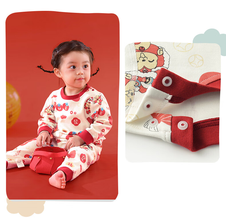 棉棉柔宝宝新年衣服儿童秋衣秋裤套装过年喜庆婴儿年服红色男童女童内衣 柿柿如意 130cm