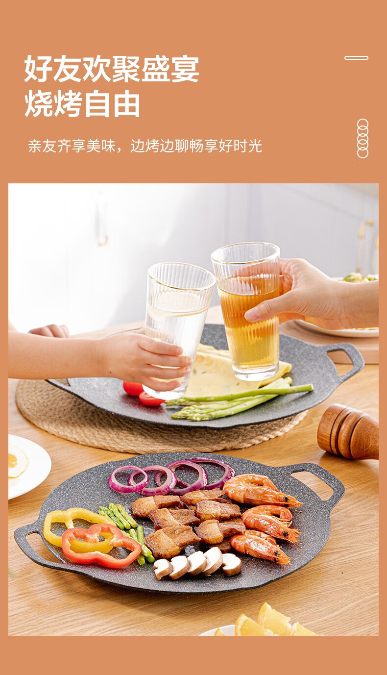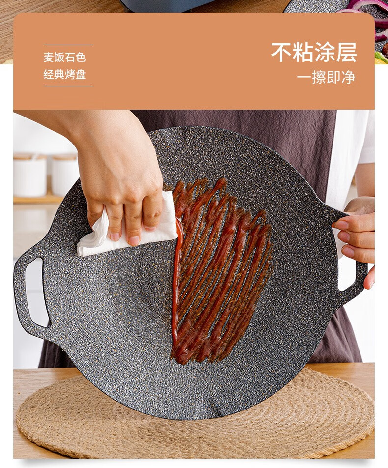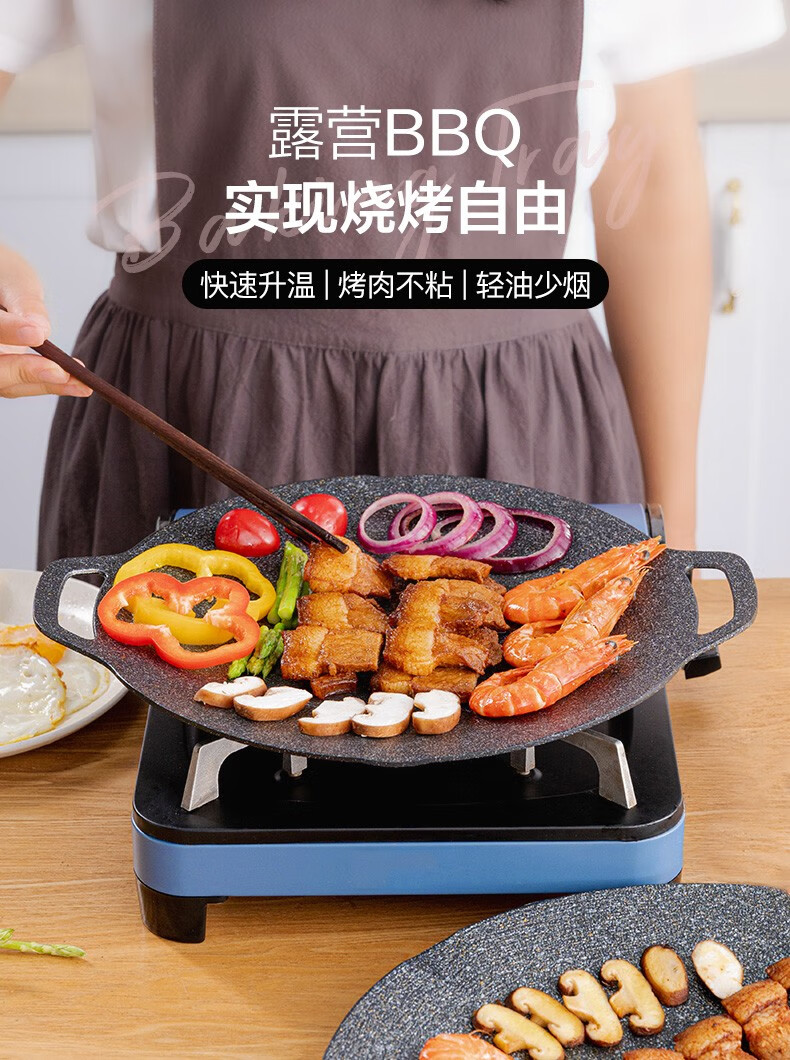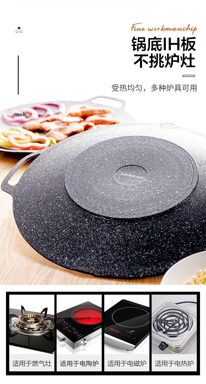 乐扣乐扣(LOCK&LOCK)烤肉盘麦饭石色煎盘韩式不粘煎烤盘平底锅户外露营野餐烧烤锅家用 烤盘【36cm】【配手柄】