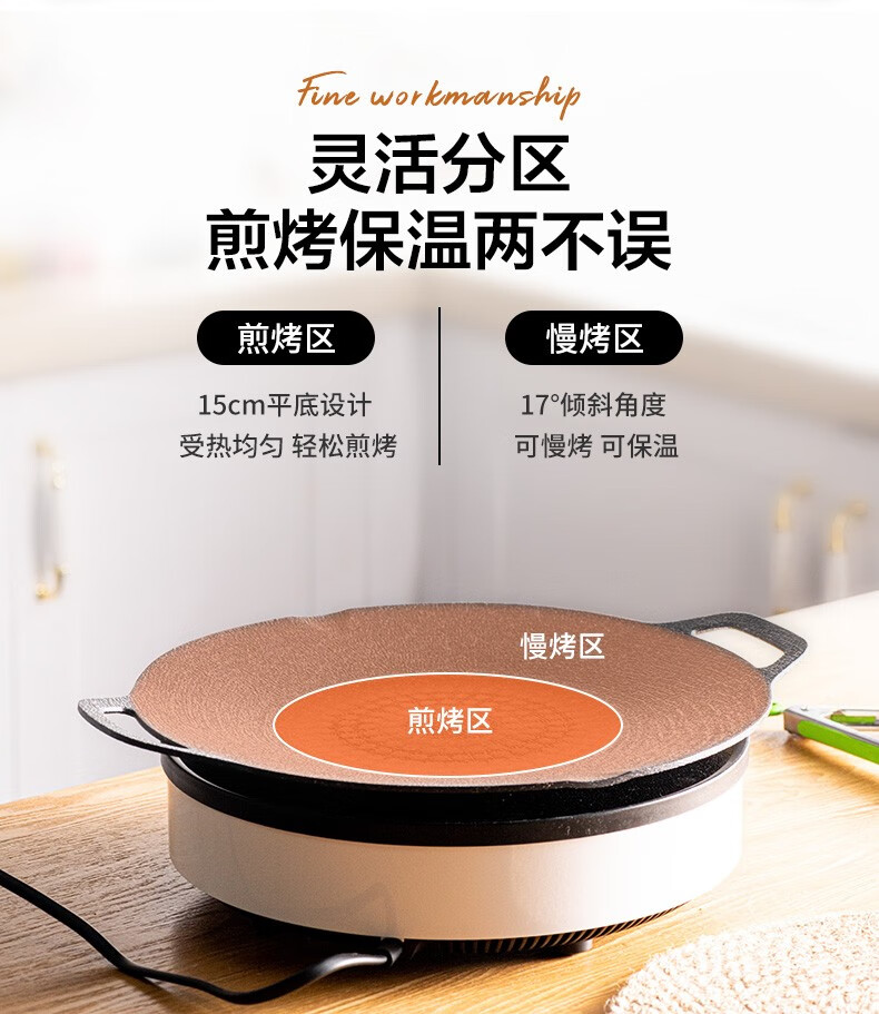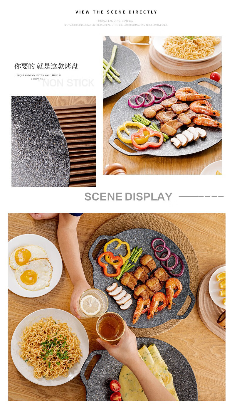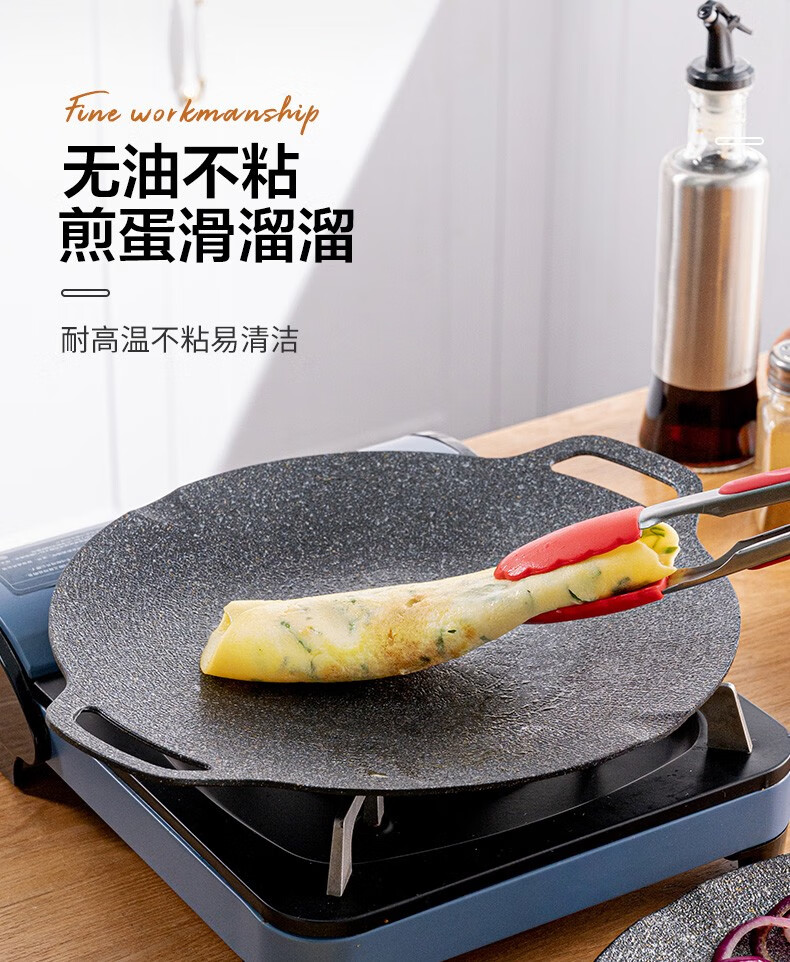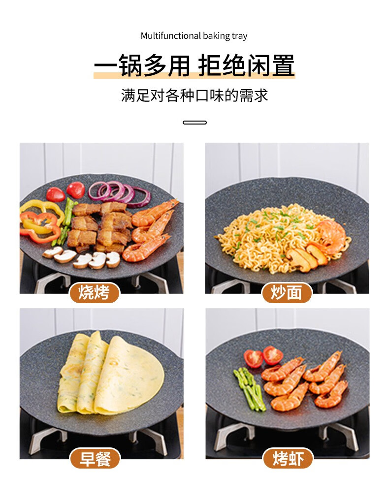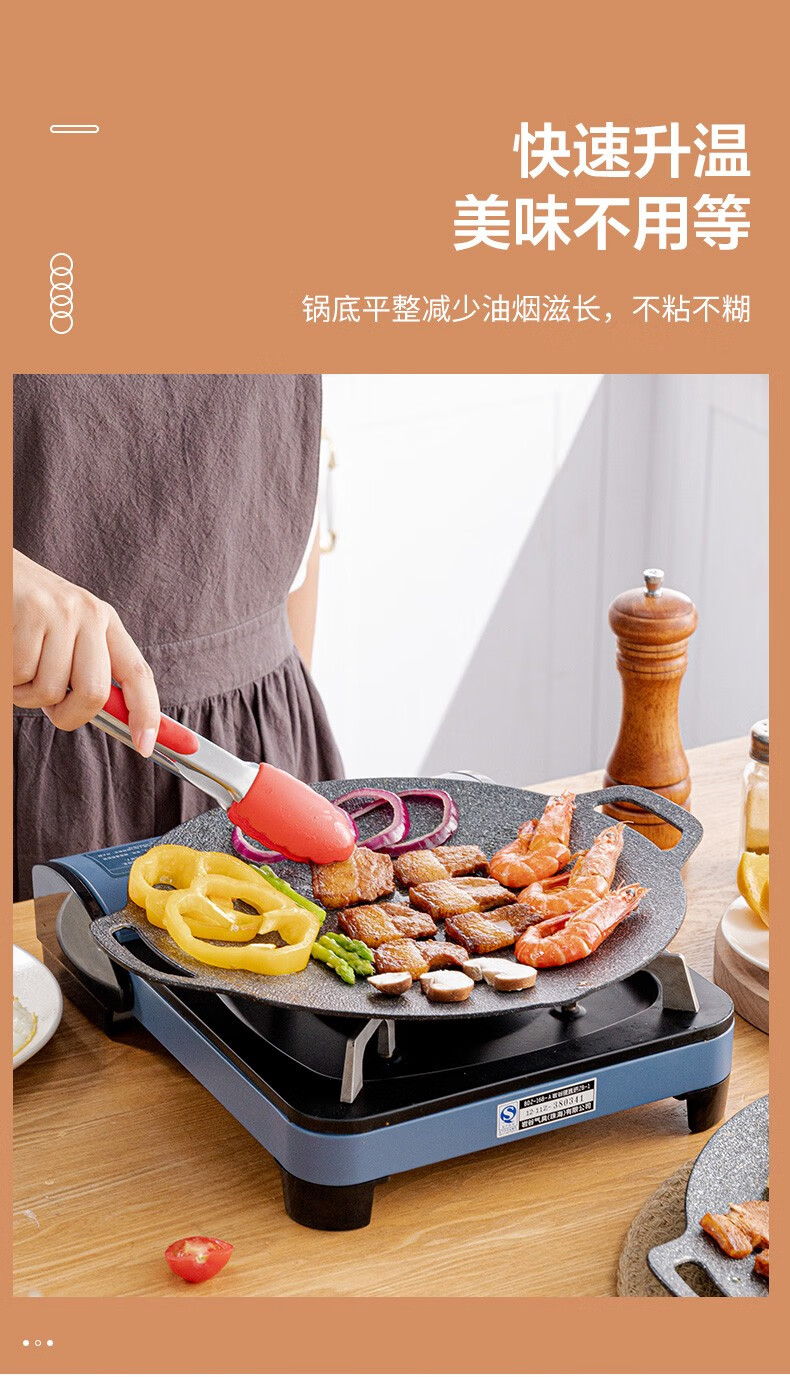 乐扣乐扣(LOCK&LOCK)烤肉盘麦饭石色煎盘韩式不粘煎烤盘平底锅户外露营野餐烧烤锅家用 烤盘【36cm】【配手柄】