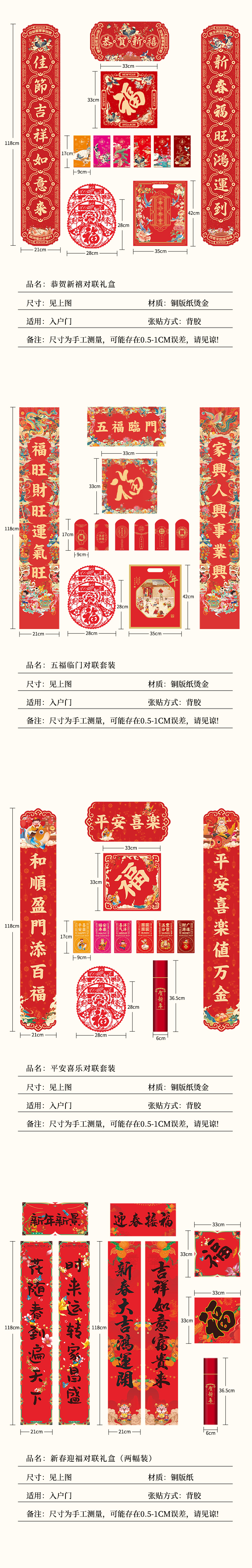 福人福地节庆用品 春联对联 挂件斗方福字 礼盒 平安喜乐春联礼盒