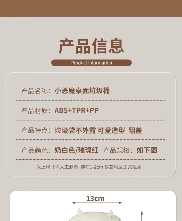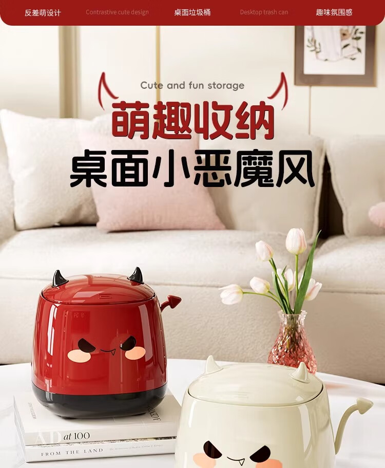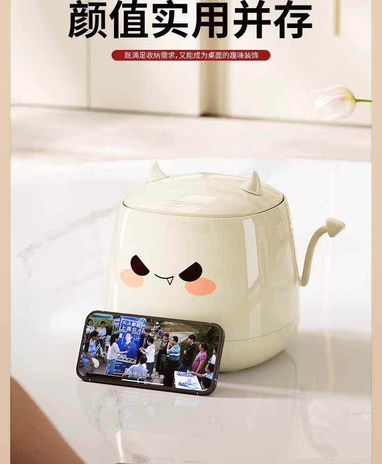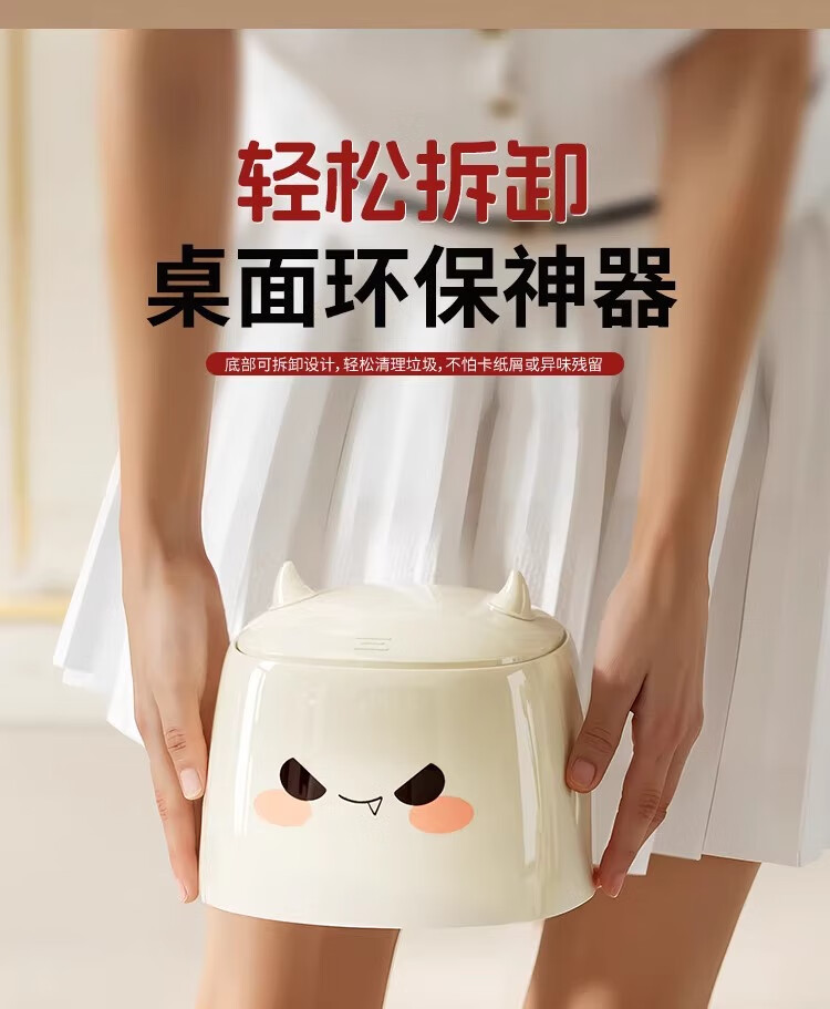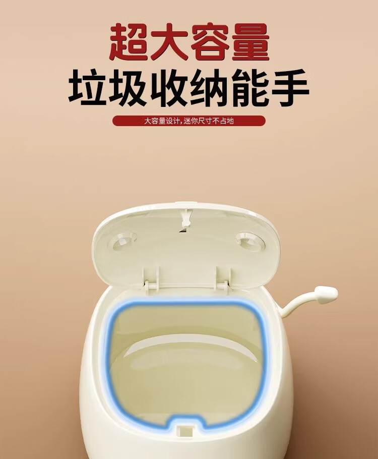 泉狮桌面垃圾桶按压式弹盖3L可爱高颜值办公桌北欧风小号垃圾桶收纳筒 奶油白 弹盖 3L