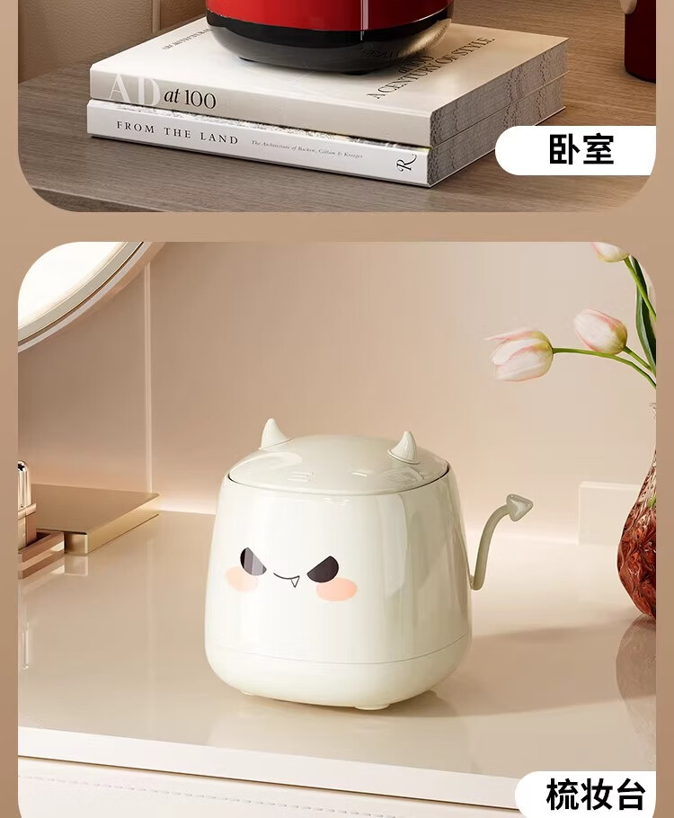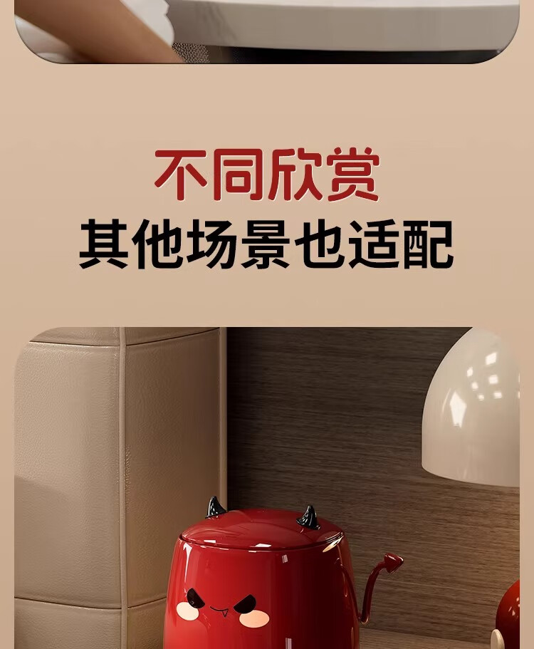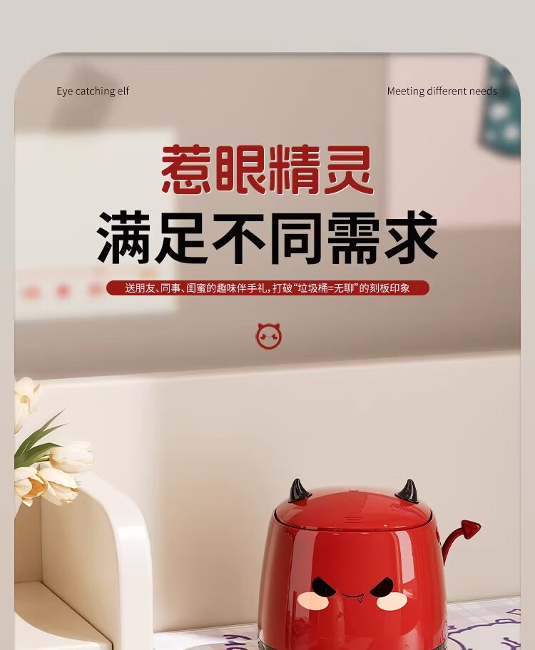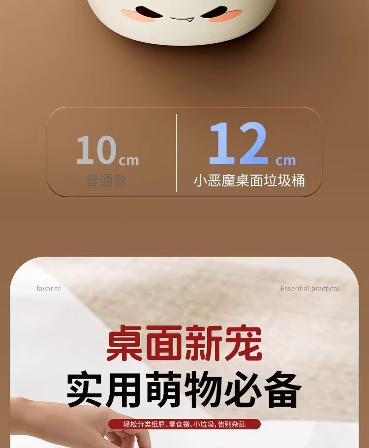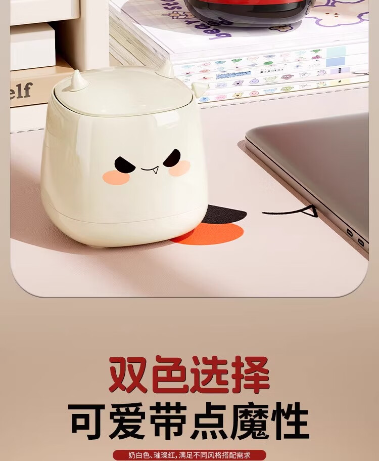 泉狮桌面垃圾桶按压式弹盖3L可爱高颜值办公桌北欧风小号垃圾桶收纳筒 奶油白 弹盖 3L