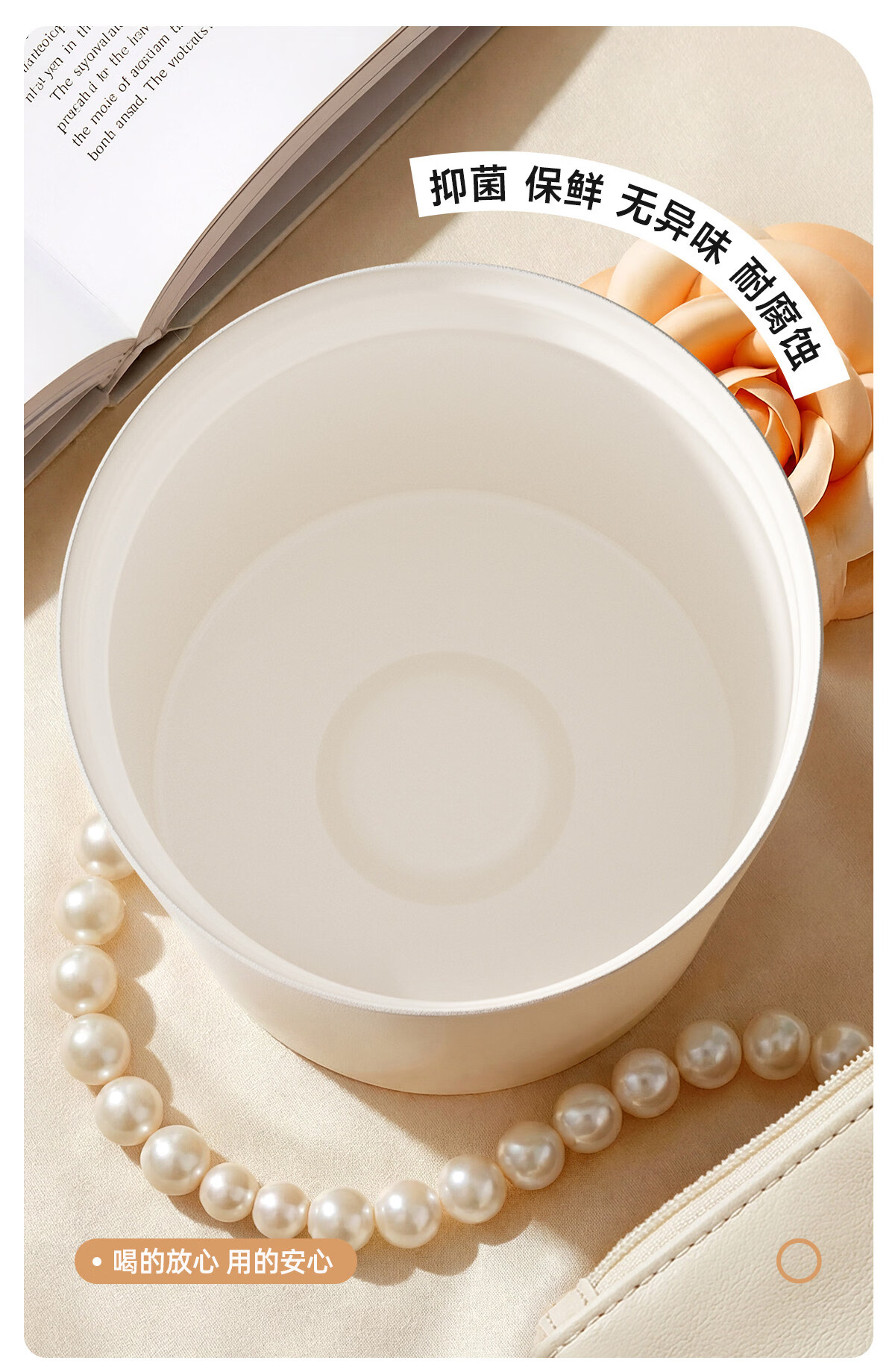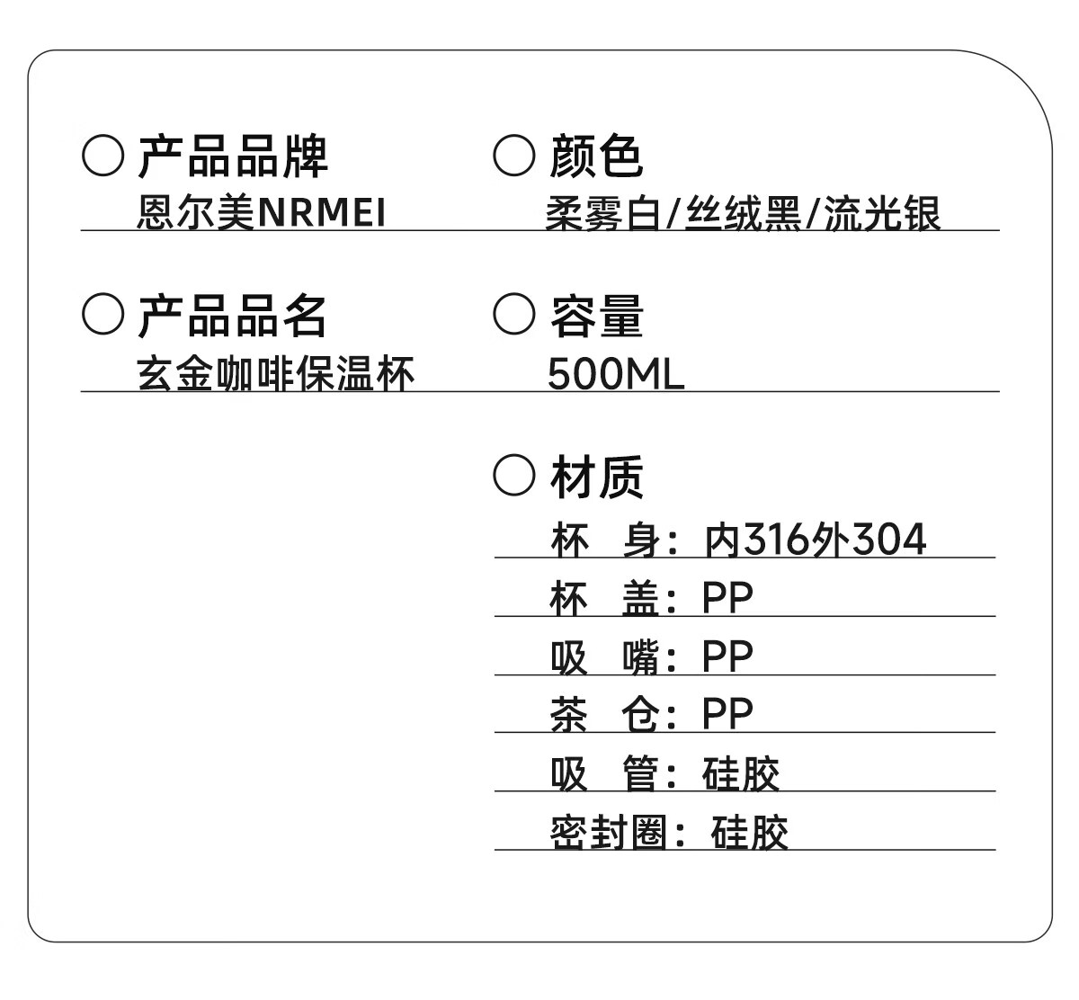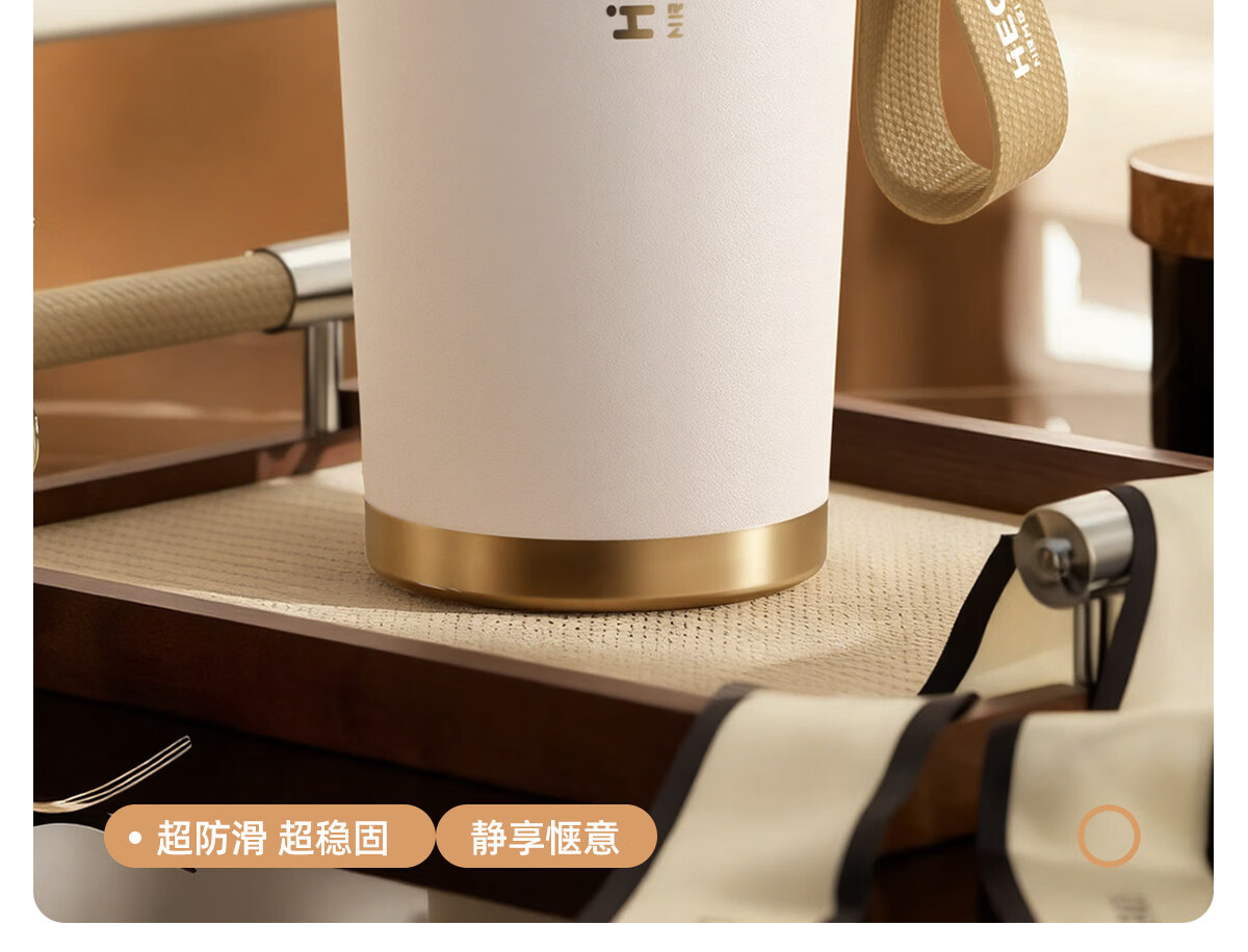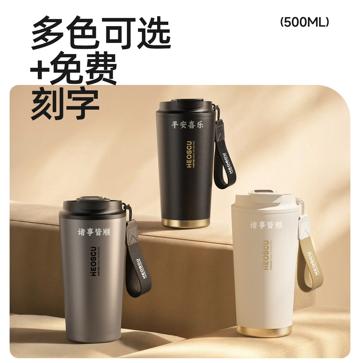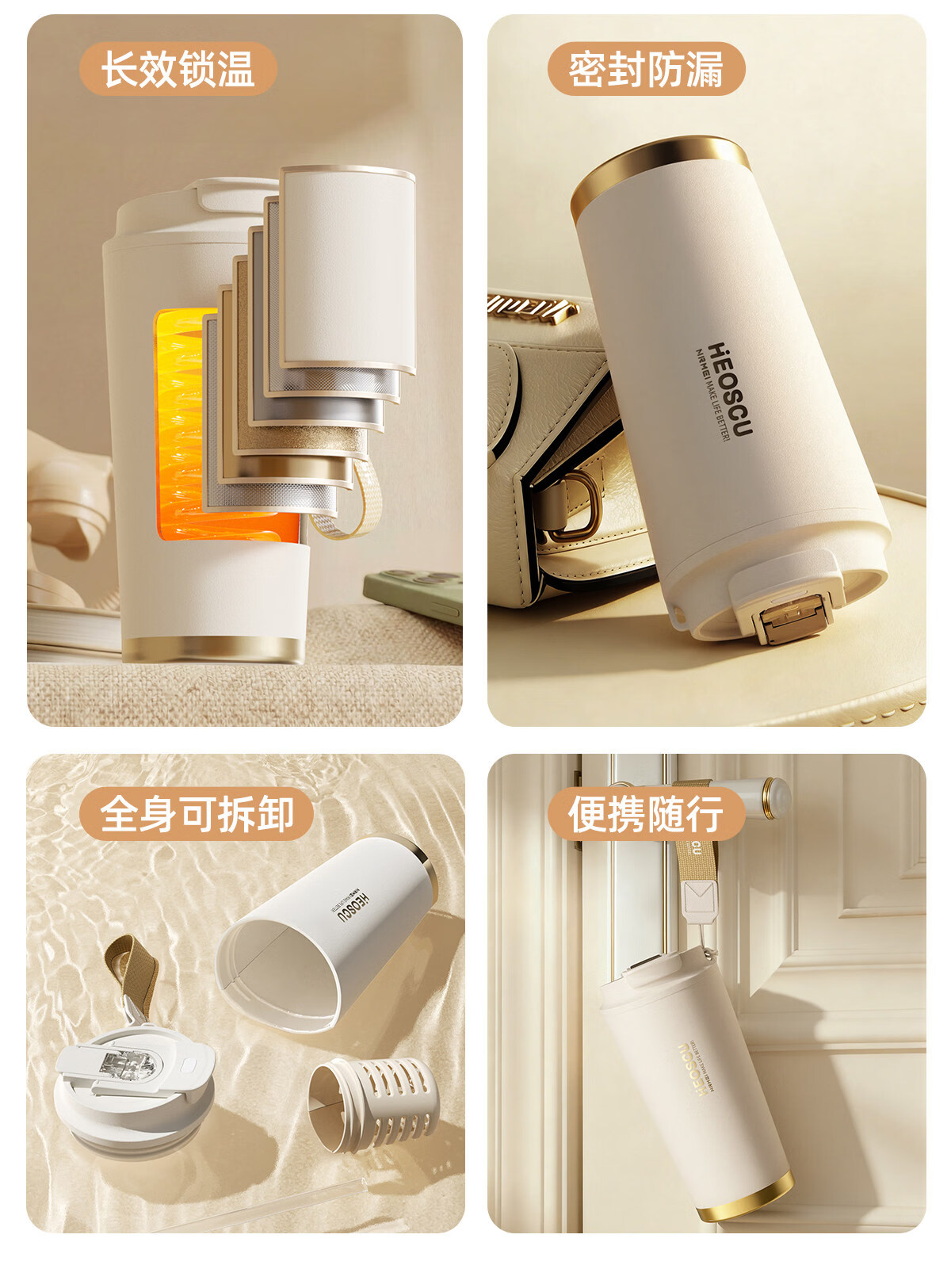 恩尔美(nRMEi)咖啡保温杯大容量男女款316不锈钢男女士便携车载双饮吸管水杯子 【316内胆款】柔雾白500ml【一杯双饮/便携提绳】