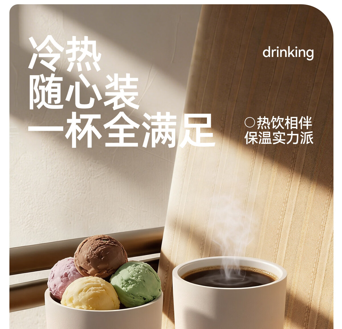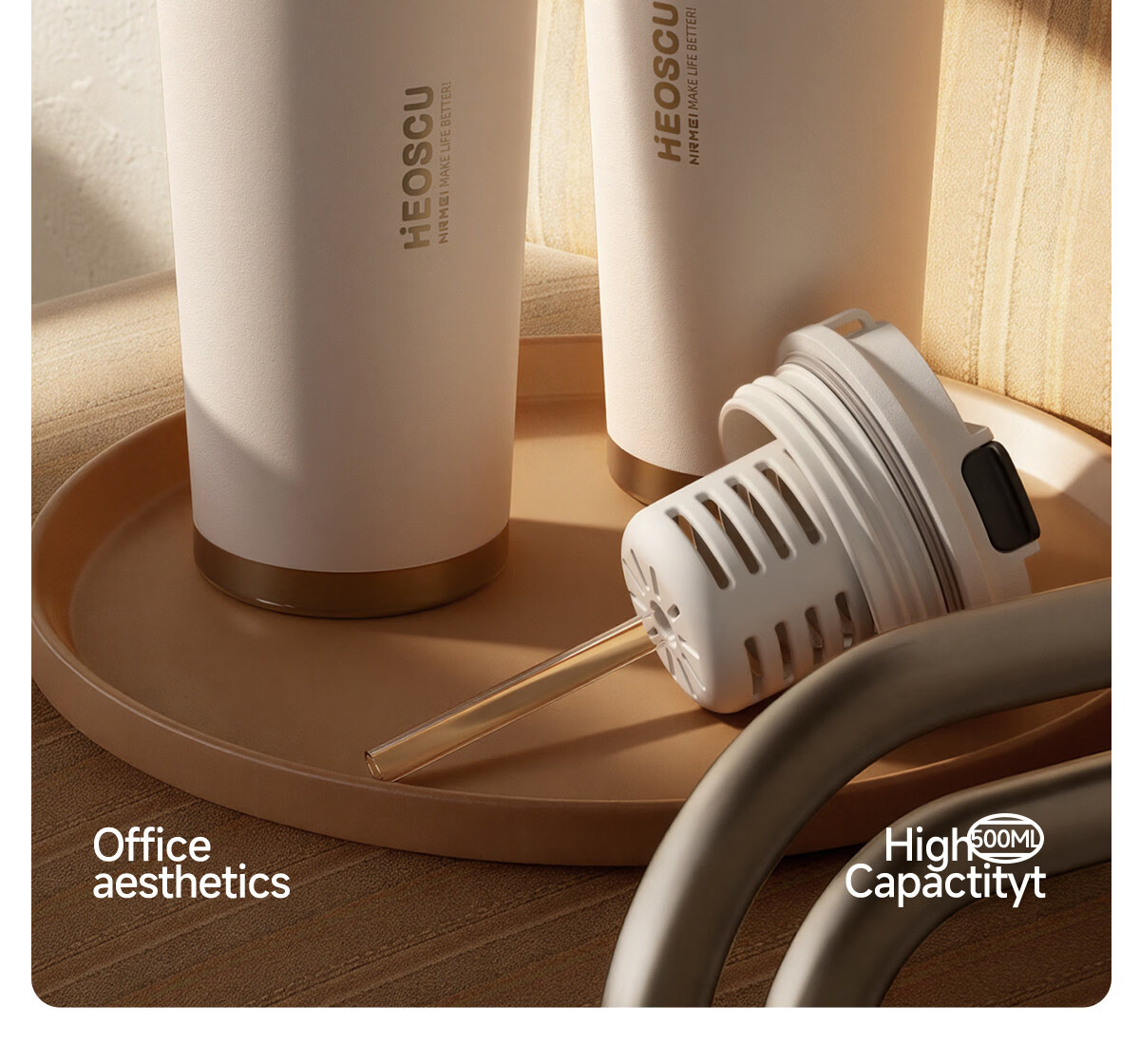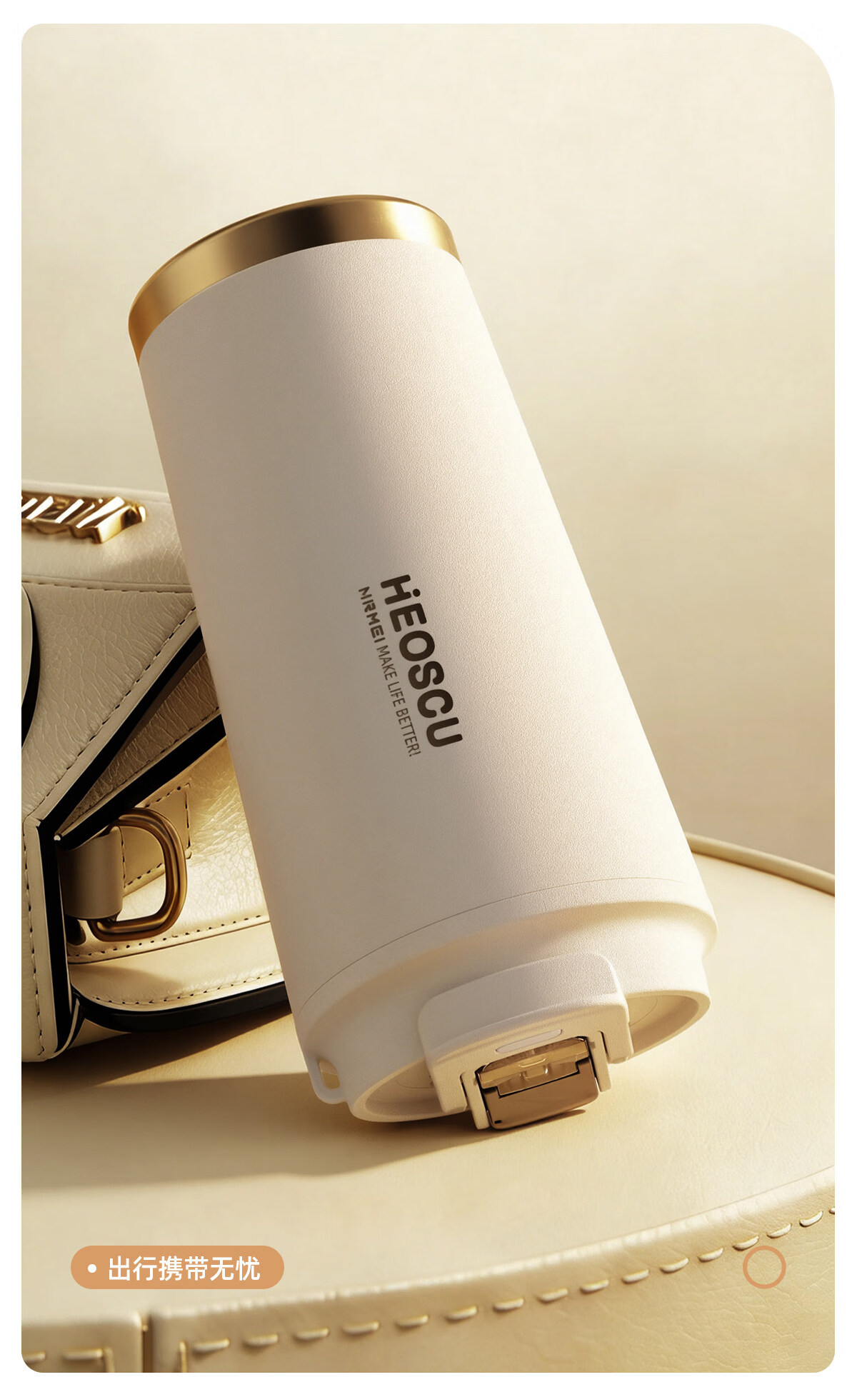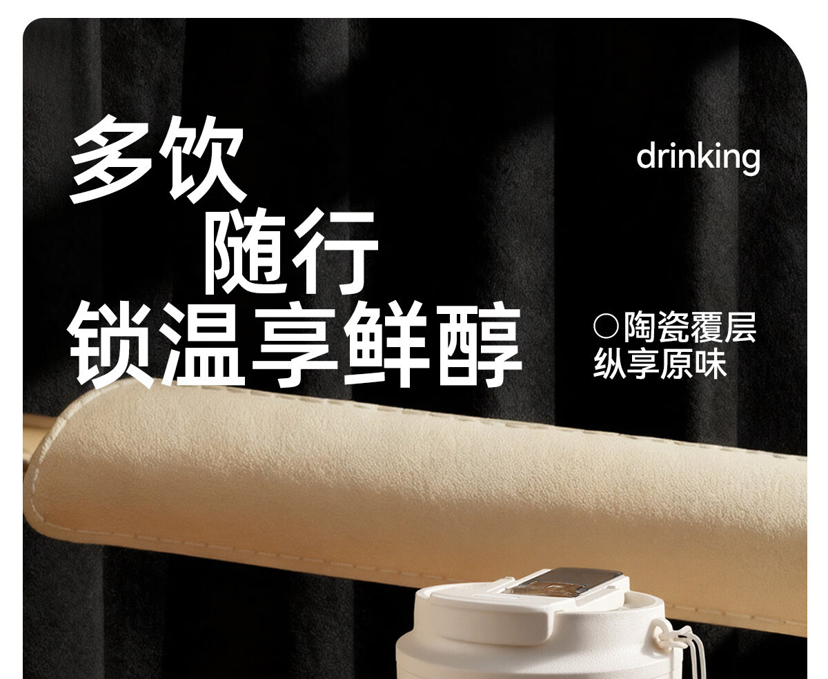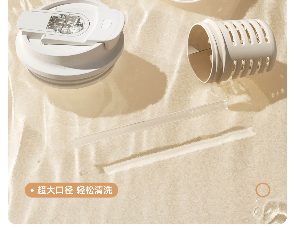 恩尔美(nRMEi)咖啡保温杯大容量男女款316不锈钢男女士便携车载双饮吸管水杯子 【316内胆款】柔雾白500ml【一杯双饮/便携提绳】