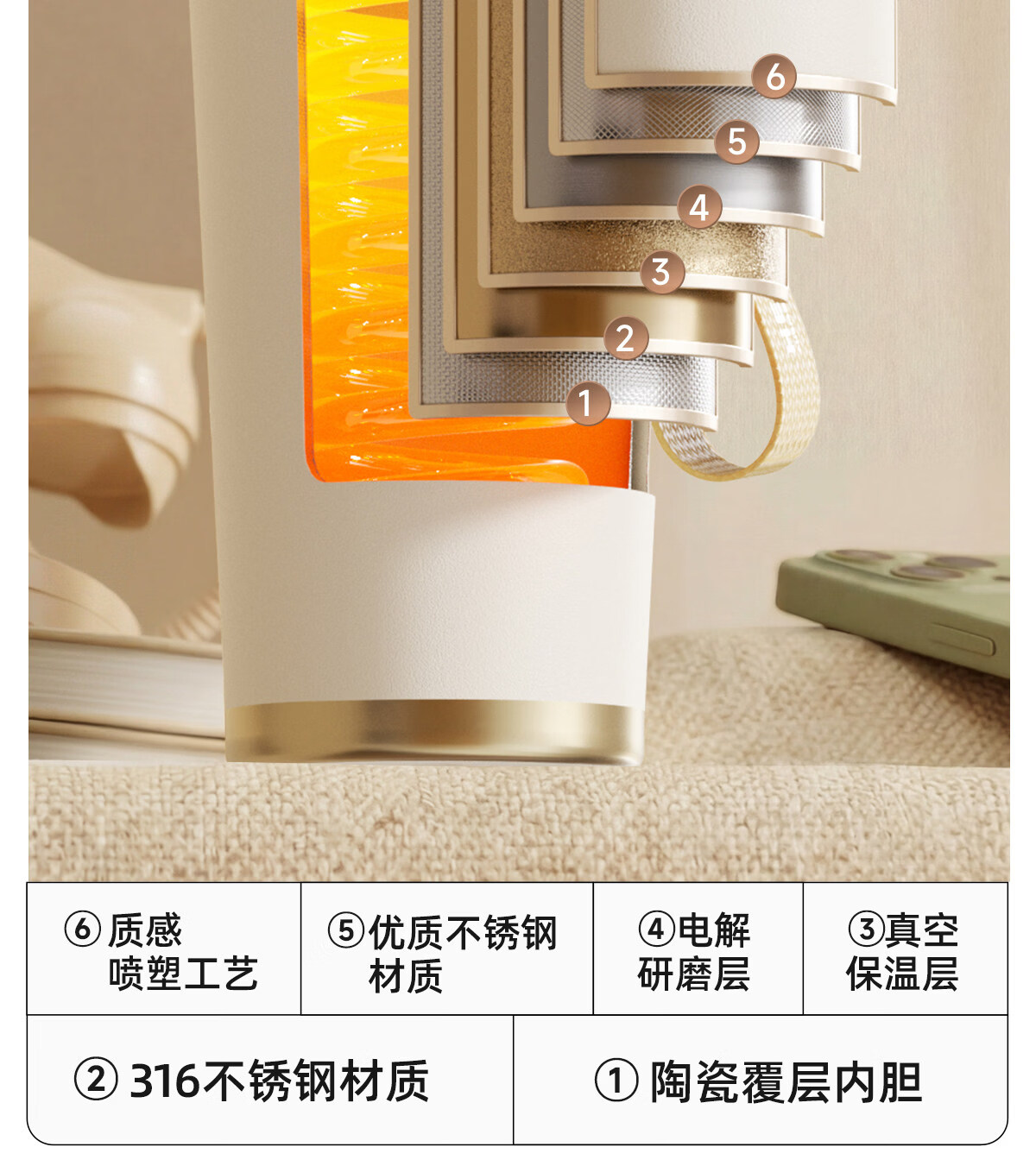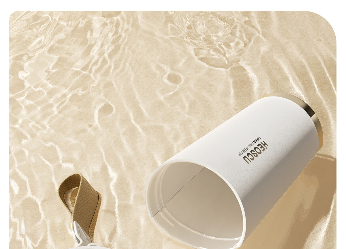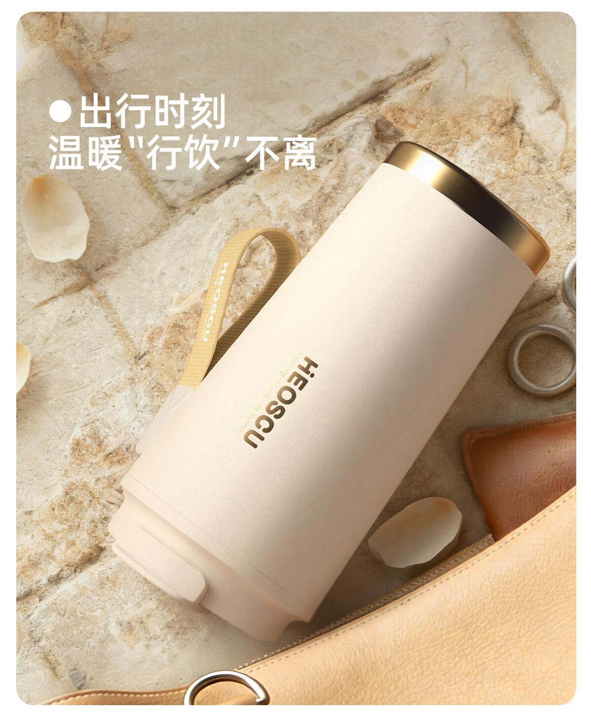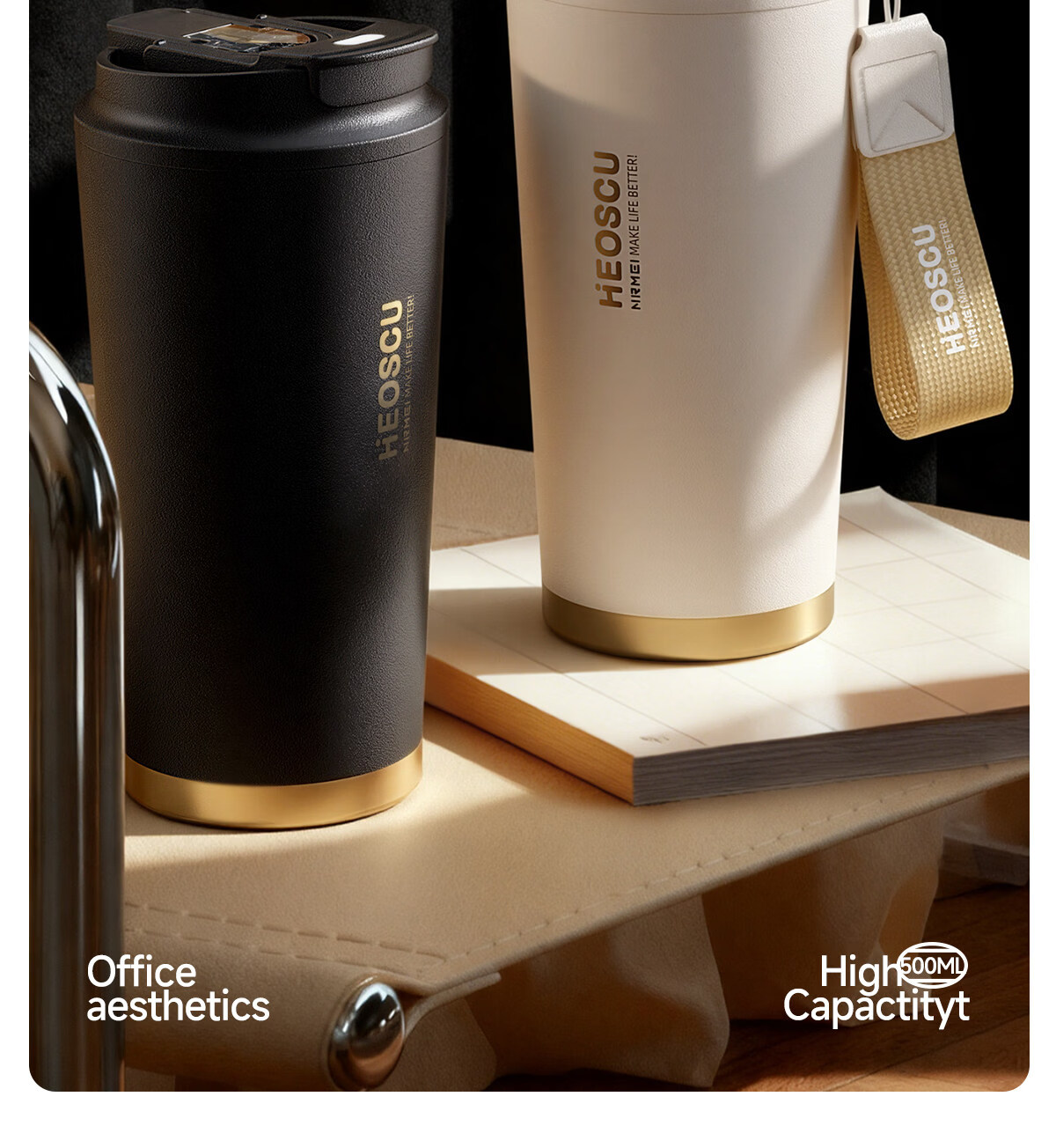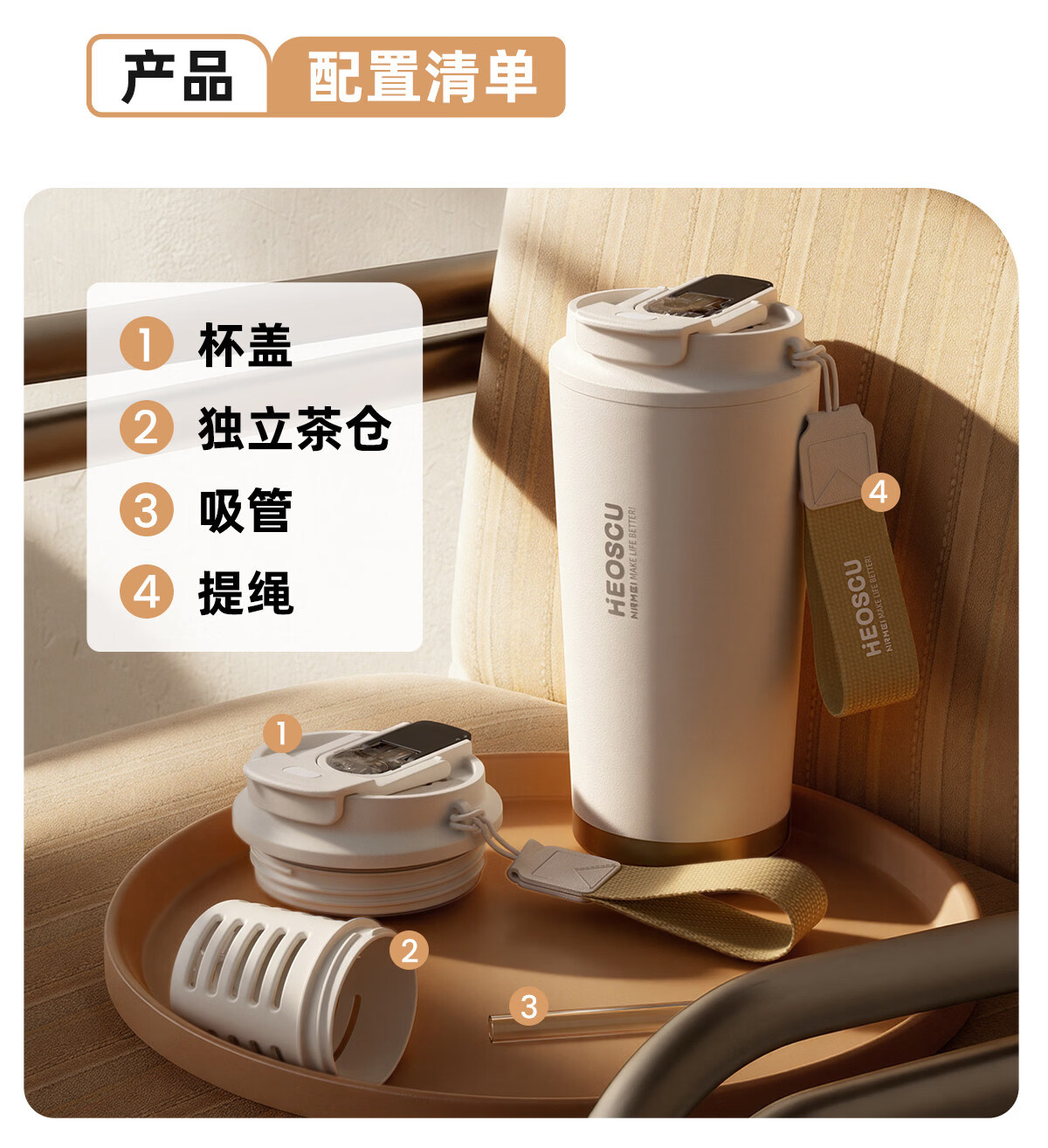 恩尔美(nRMEi)咖啡保温杯大容量男女款316不锈钢男女士便携车载双饮吸管水杯子 【316内胆款】柔雾白500ml【一杯双饮/便携提绳】