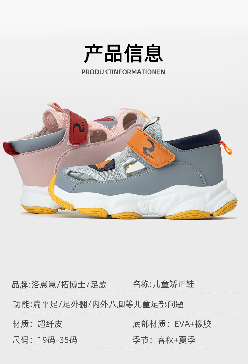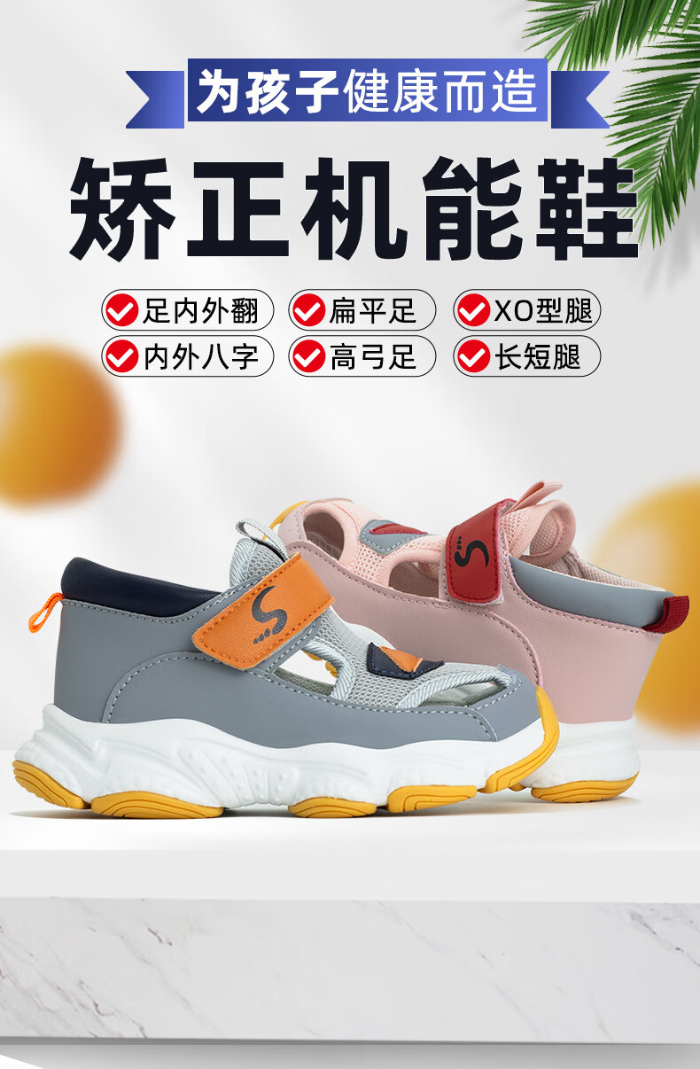 洛崽崽儿童扁平足专用矫正鞋足外翻机能凉鞋XO型腿八字支撑足弓矫正鞋 粉色 内八字专用 20 码 (合适脚长12/内长13)