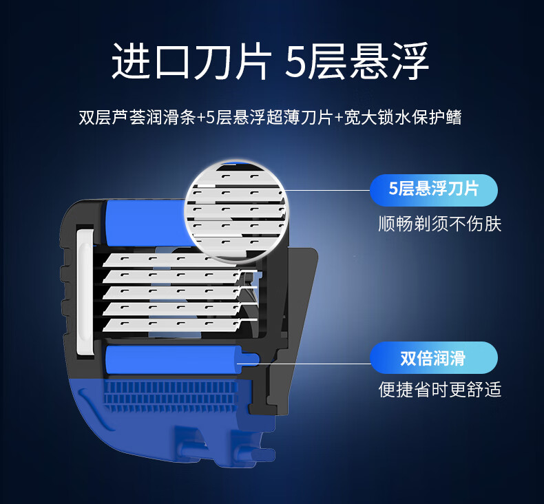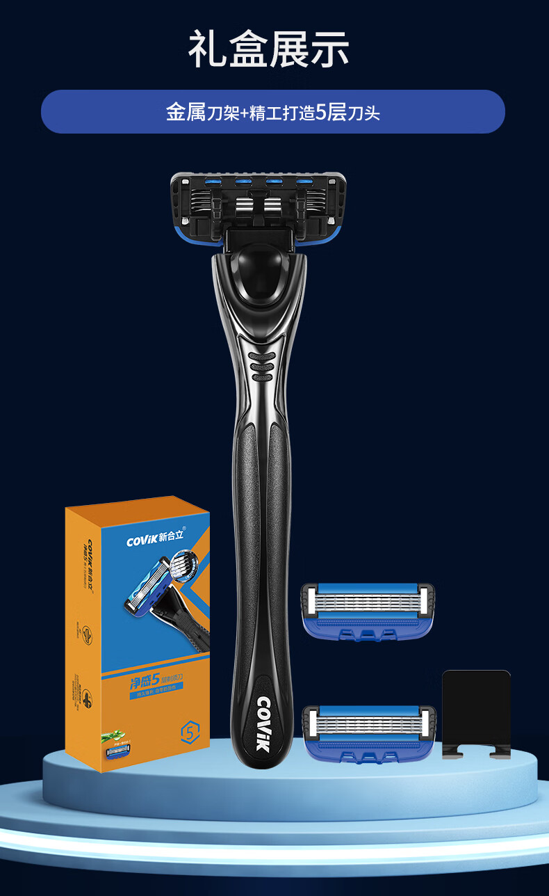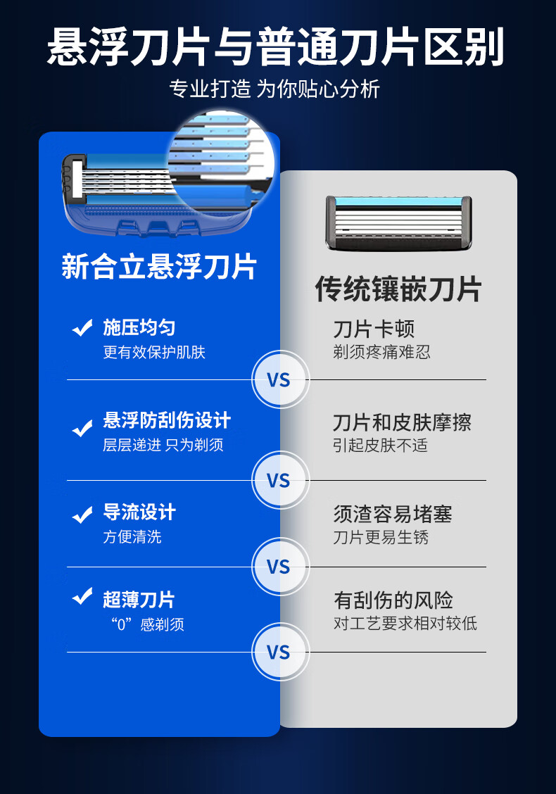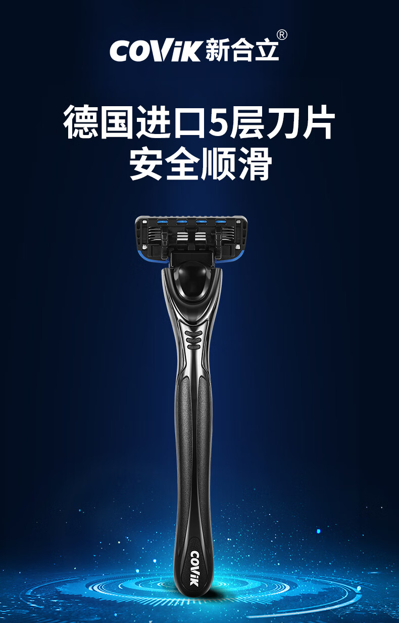新合立便携手动剃须刀 5层德国原装进口刀片 双润滑条 旅行便携款 送男友爸爸礼物 1刀架3刀头1挂钩 贴面净剃 干湿两用