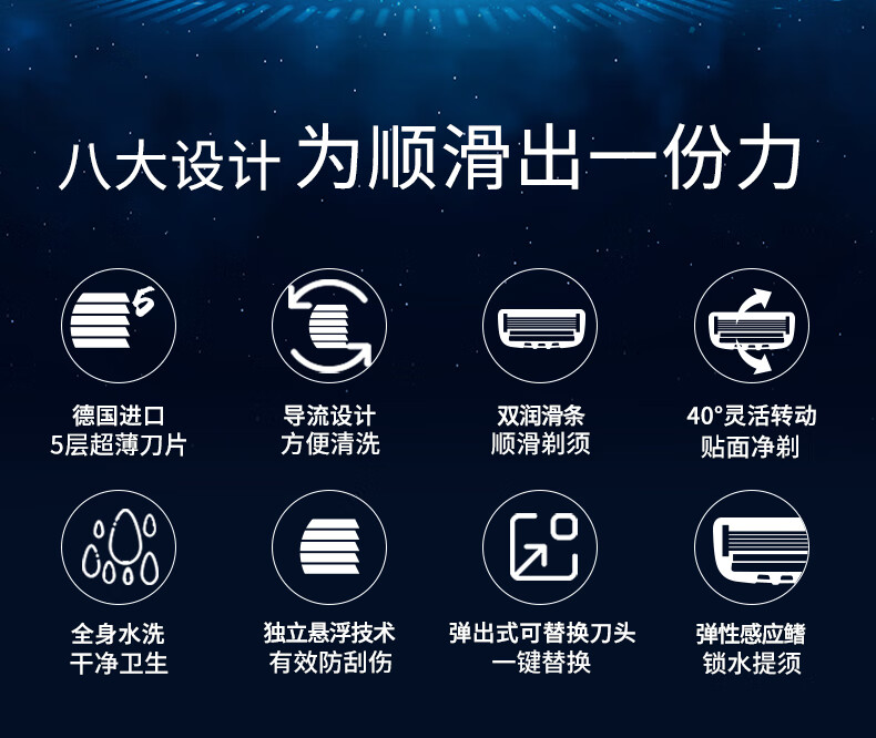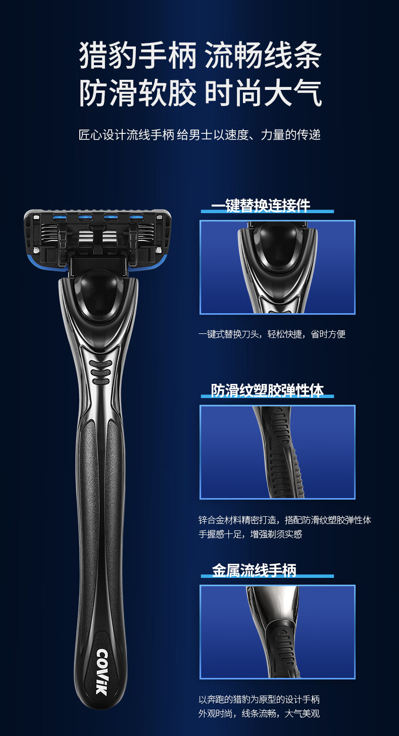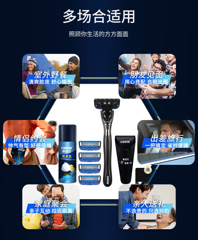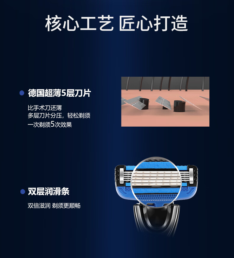 新合立便携手动剃须刀 5层德国原装进口刀片 双润滑条 旅行便携款 送男友爸爸礼物 1刀架3刀头1挂钩 贴面净剃 干湿两用