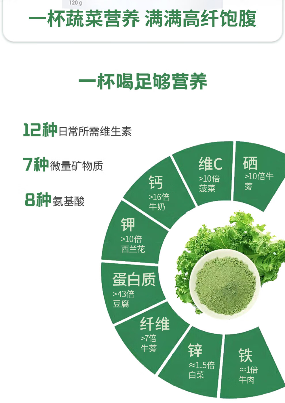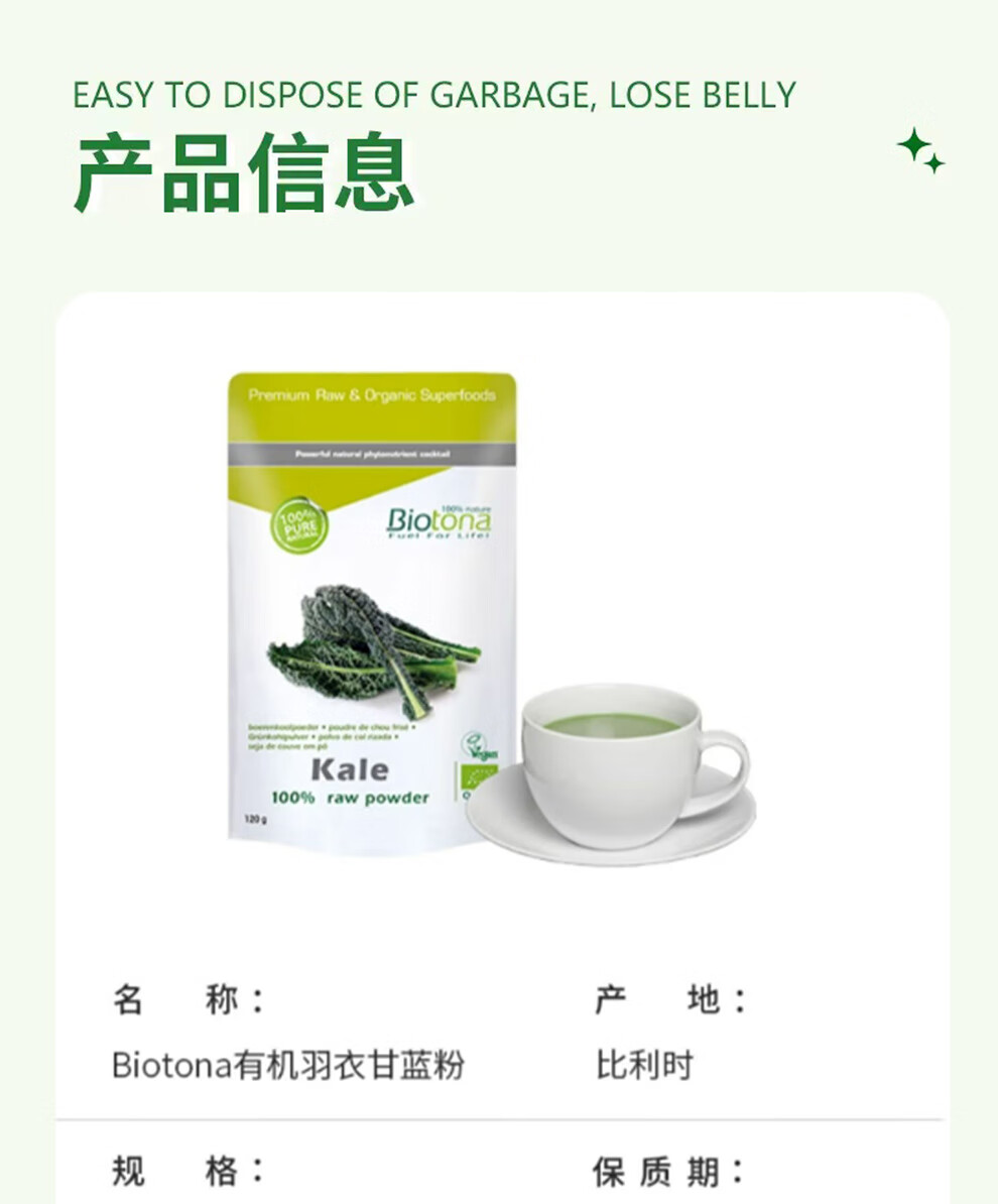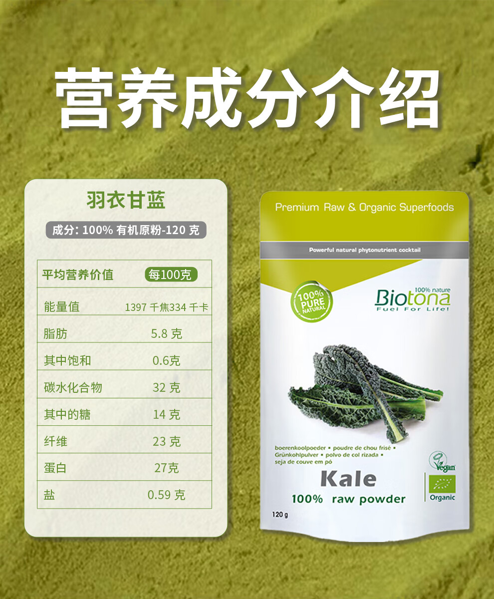 BIOTONA有机冻干羽衣甘蓝粉果蔬菜粉膳食纤维粉代餐青汁润肠排便减肥冲饮 【2袋装】有机羽衣甘蓝粉 120g*2袋 有机冻干【羽衣甘蓝粉】