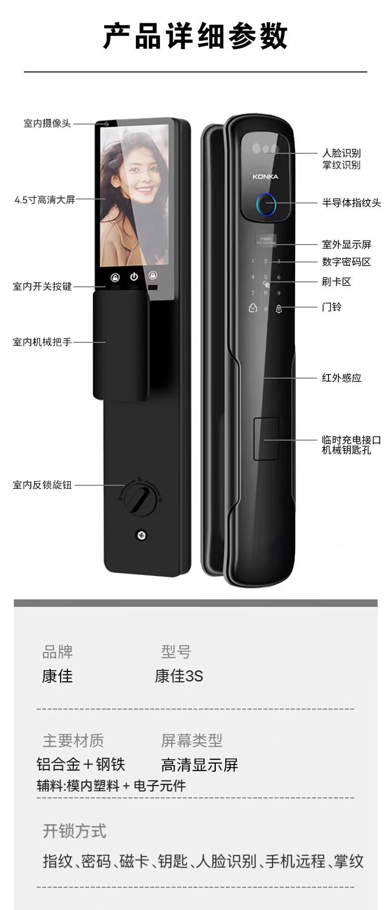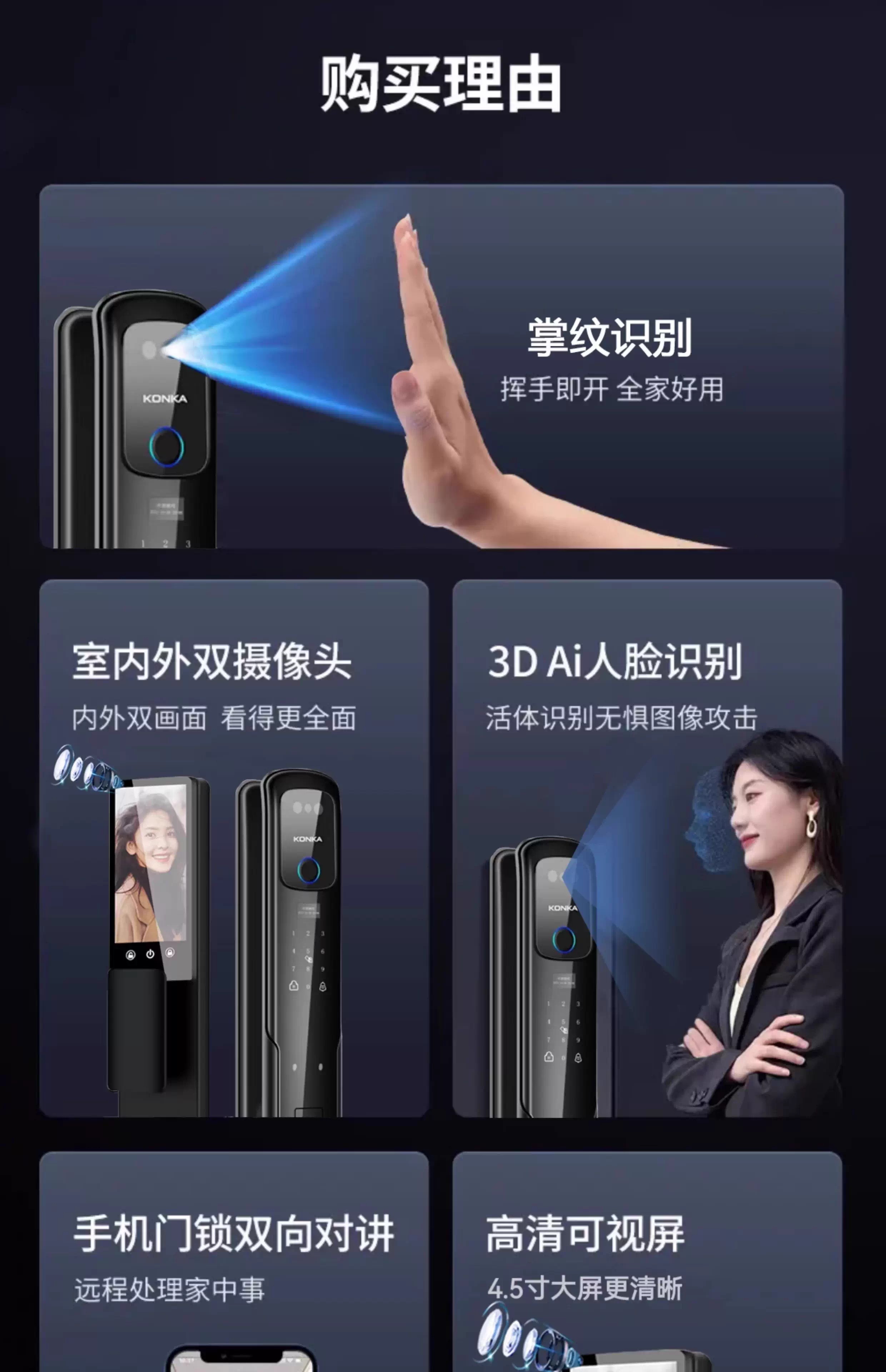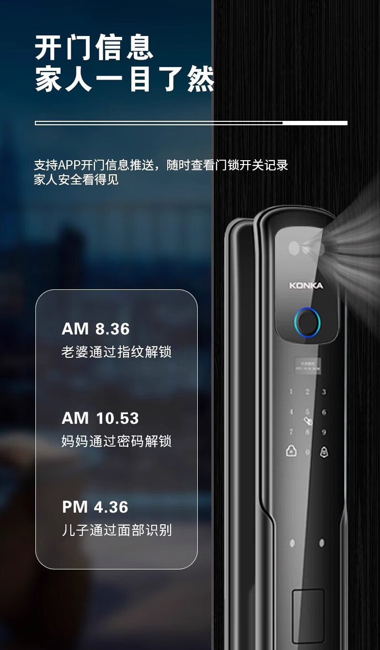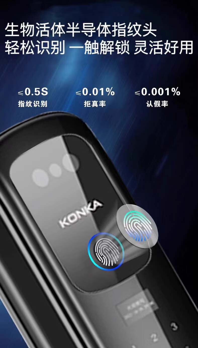 康佳(KONKA)3S智能人脸识别指纹锁电子密码锁家用防盗门锁可视猫眼监控 康佳3S包安装(自己安装可优惠100)