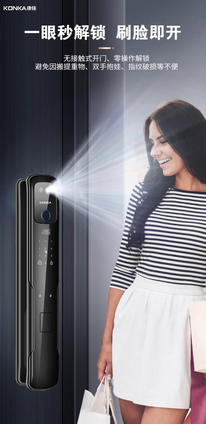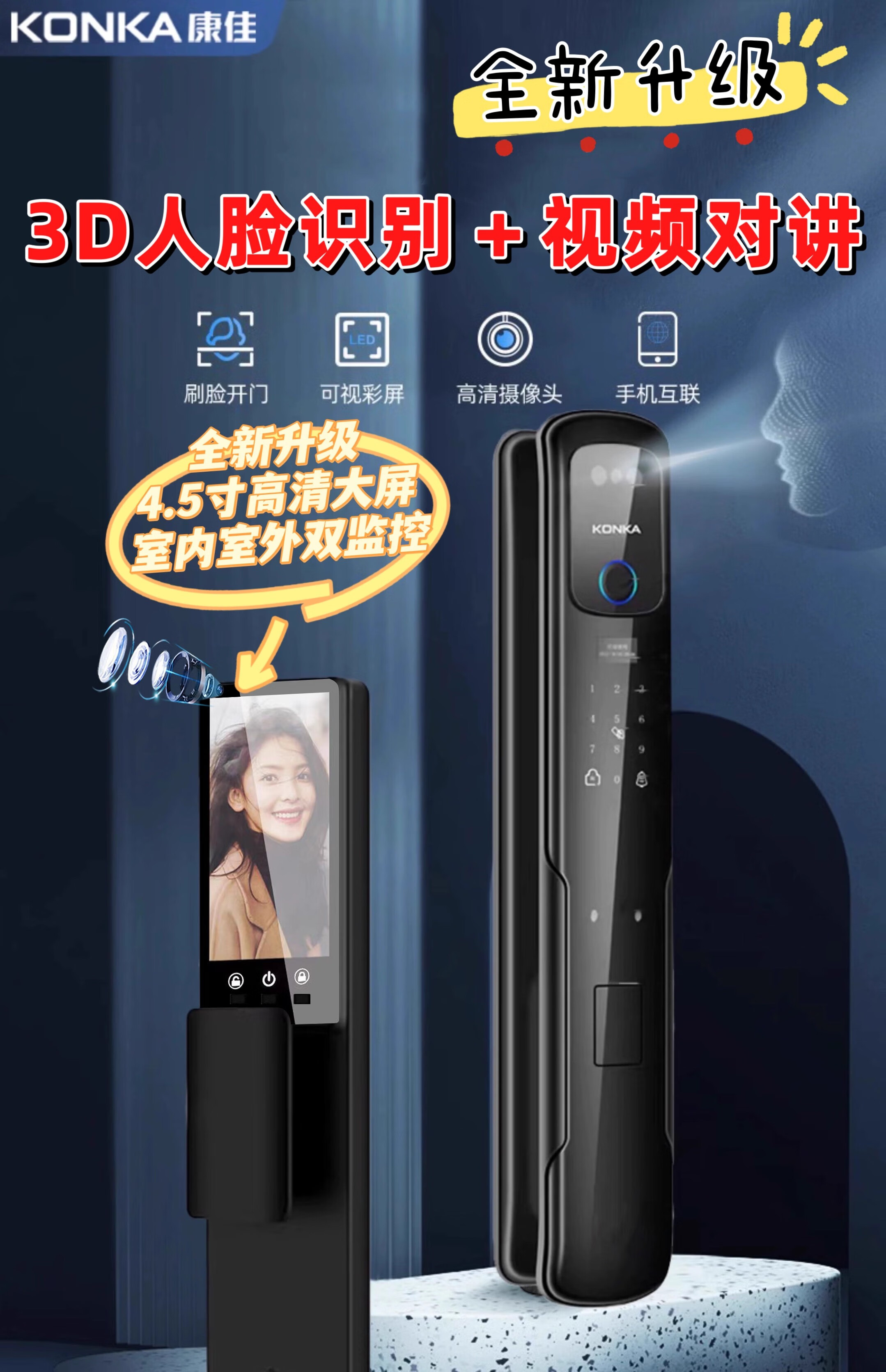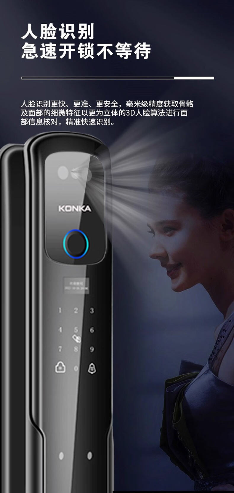康佳(KONKA)3S智能人脸识别指纹锁电子密码锁家用防盗门锁可视猫眼监控 康佳3S包安装(自己安装可优惠100)