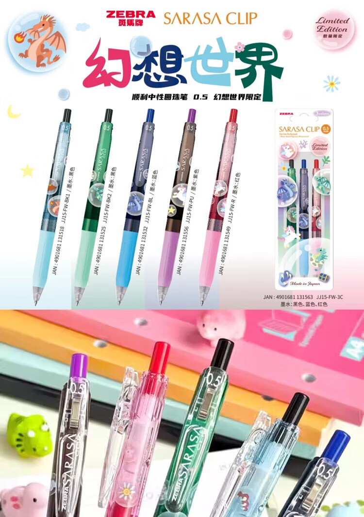 斑马牌(ZEBRA)JJ15幻想世界限定0.5mm水笔签字笔学生刷题书写速干中性笔黑色彩色手账笔 【幻想限定】3支套装