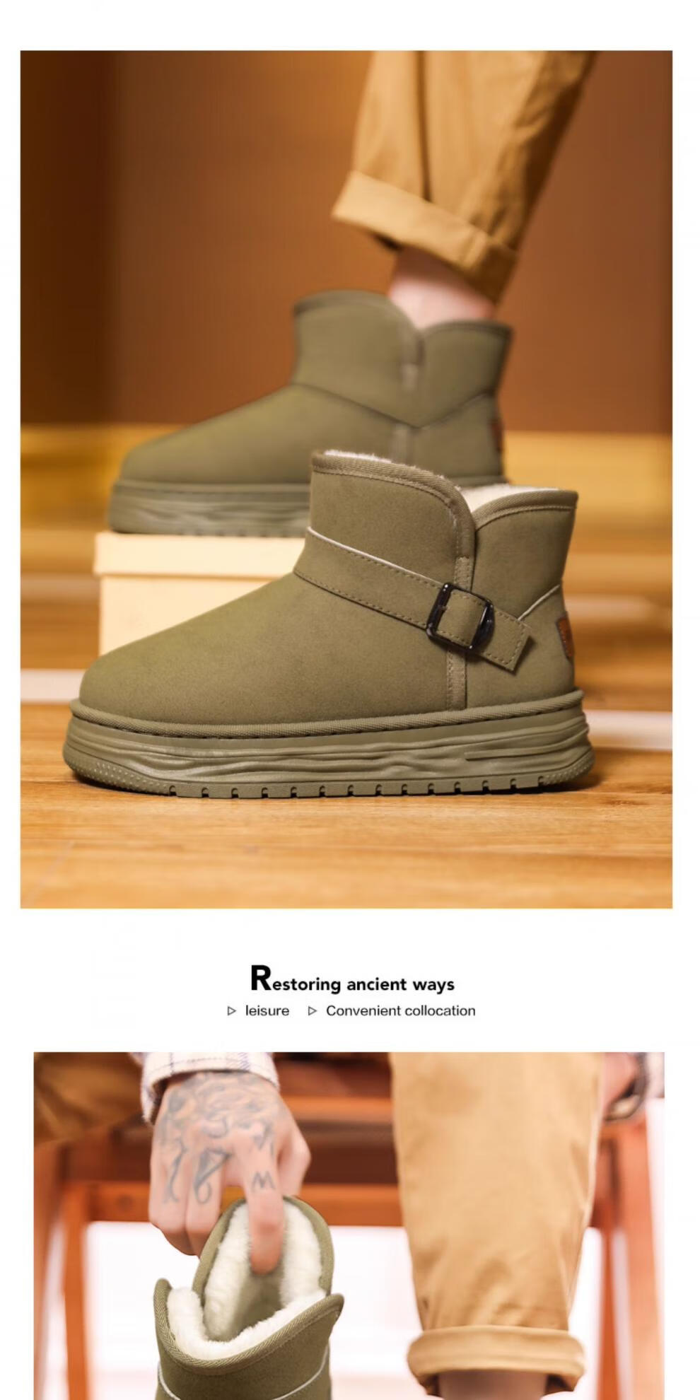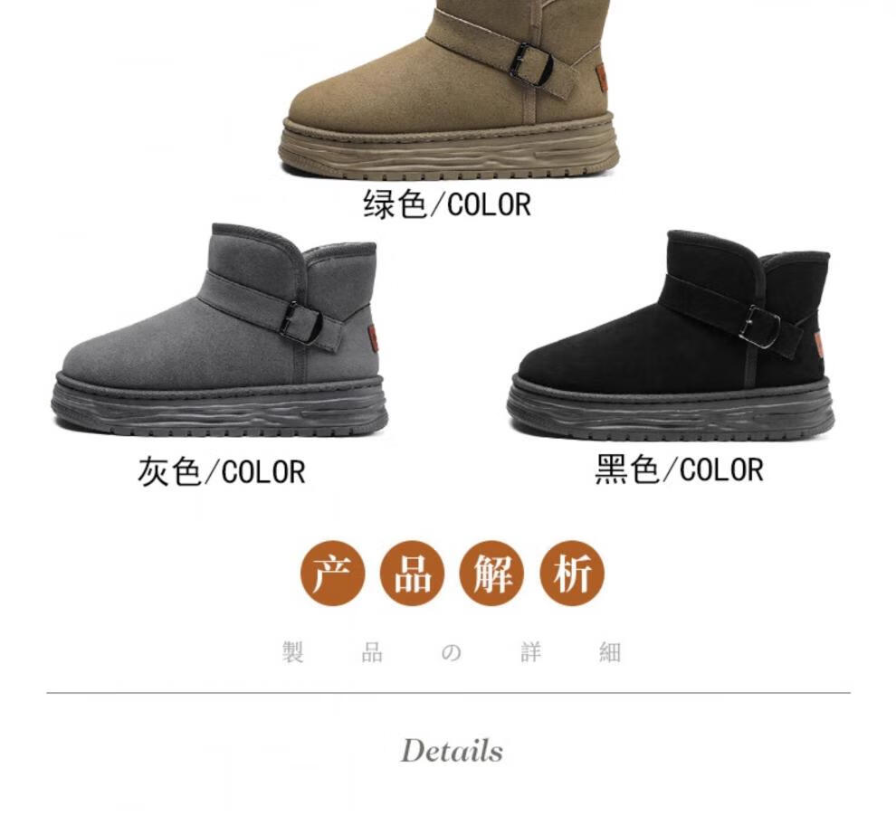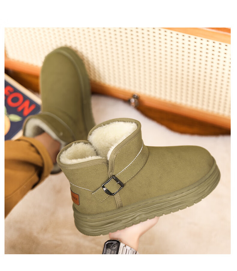 稻草人(MEXICAN)东北雪地靴男鞋冬季加绒加厚保暖棉鞋皮毛一体防寒亲子面包棉靴子 【主图款】绿色 32 标准靴子尺码