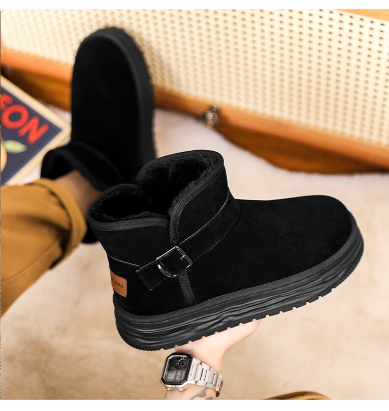 步瀛斋冬季棉鞋中老年加绒保暖老北京布鞋一脚蹬软底防滑爸爸鞋 黑色 42