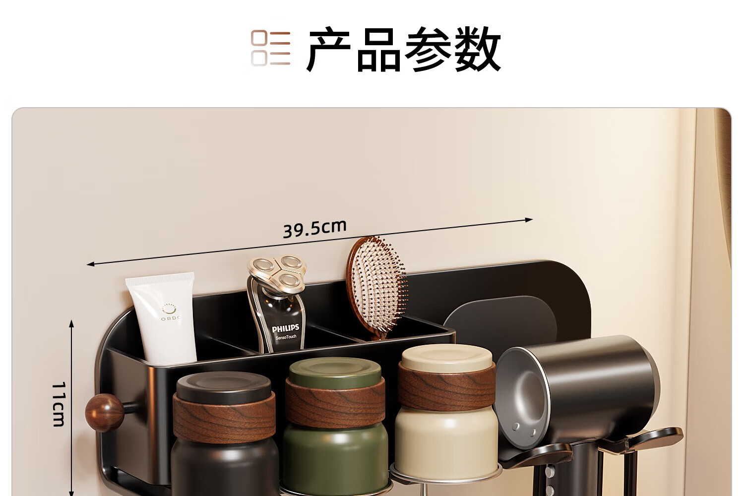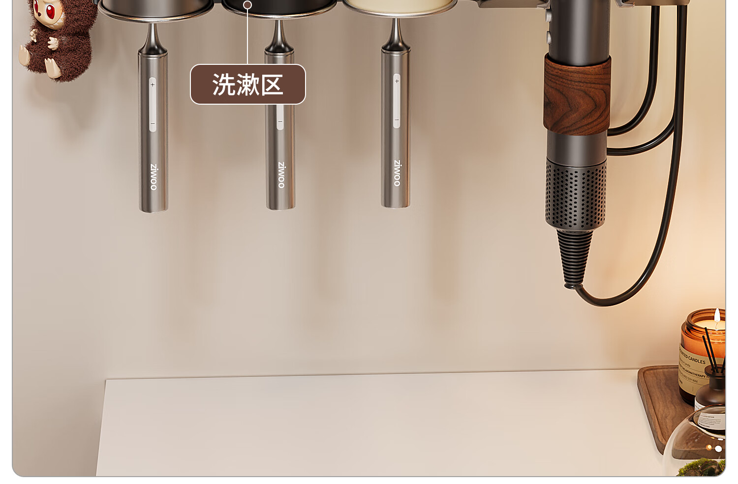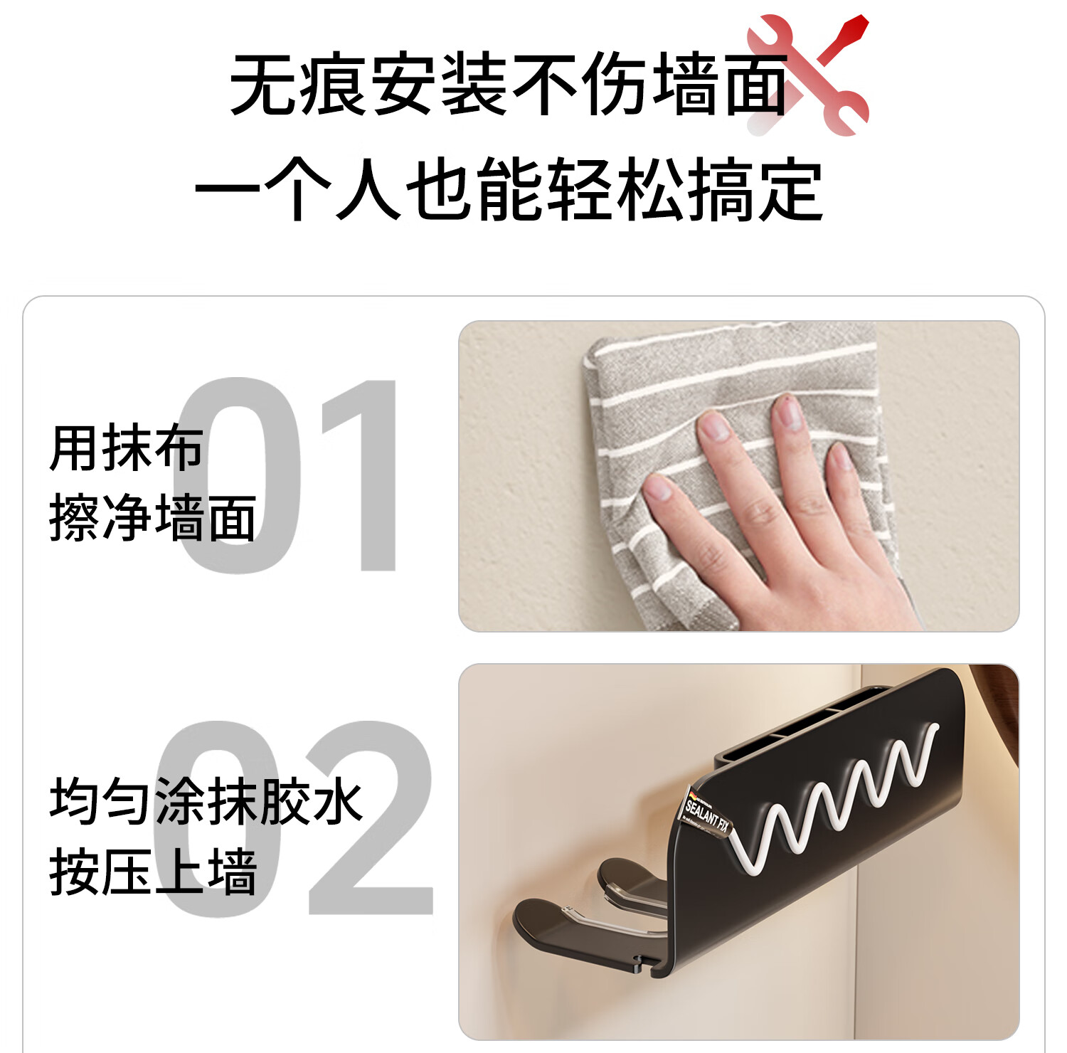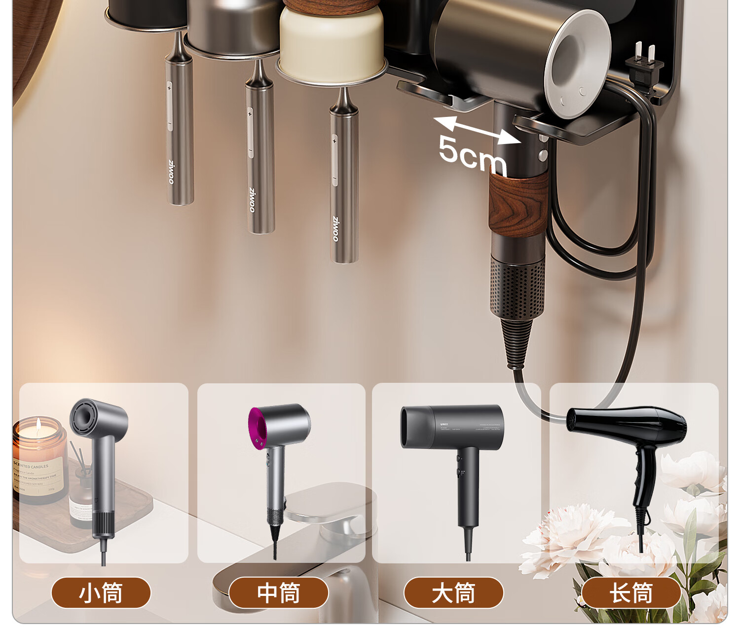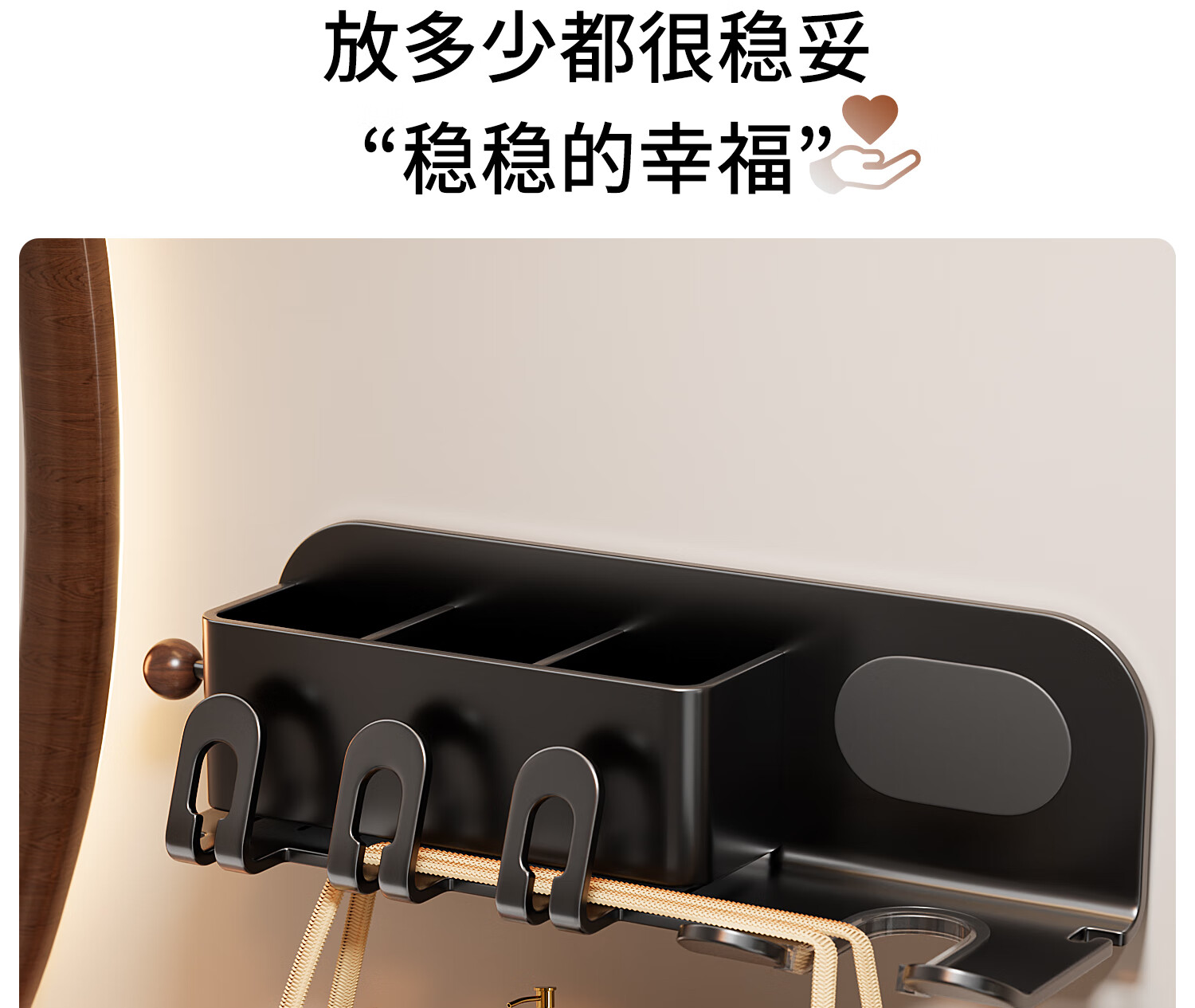 妃驰牙刷置物架浴室壁挂式免打孔卫生间洗手台漱口杯吹风机一体收纳架 吹风机架