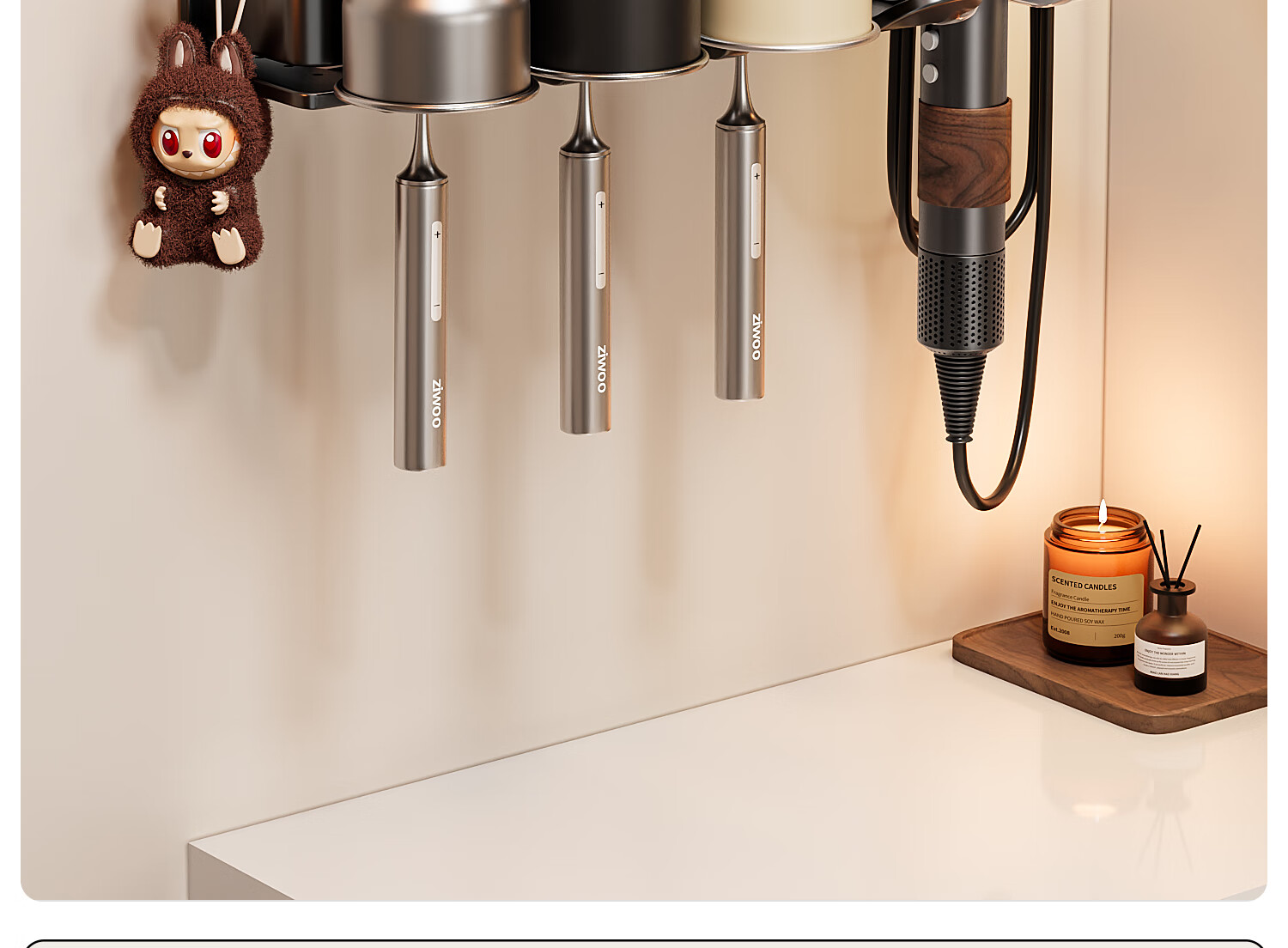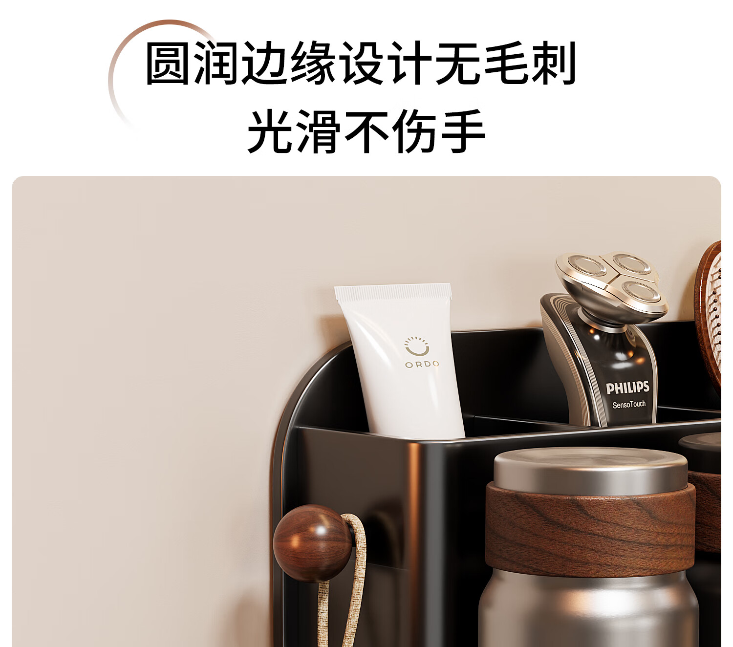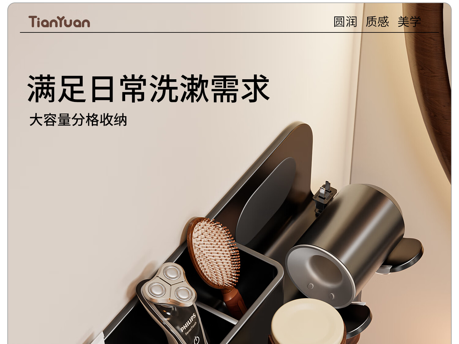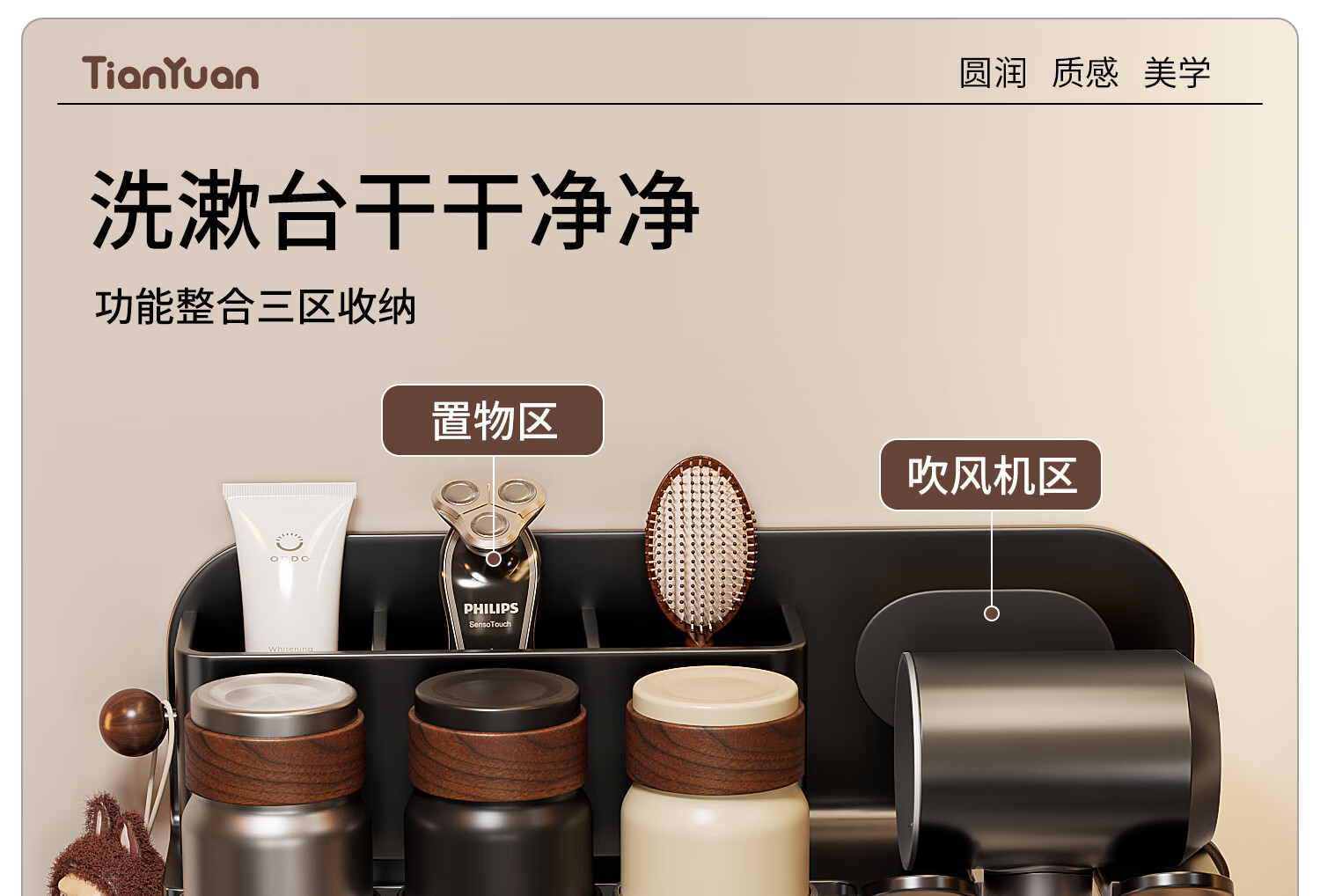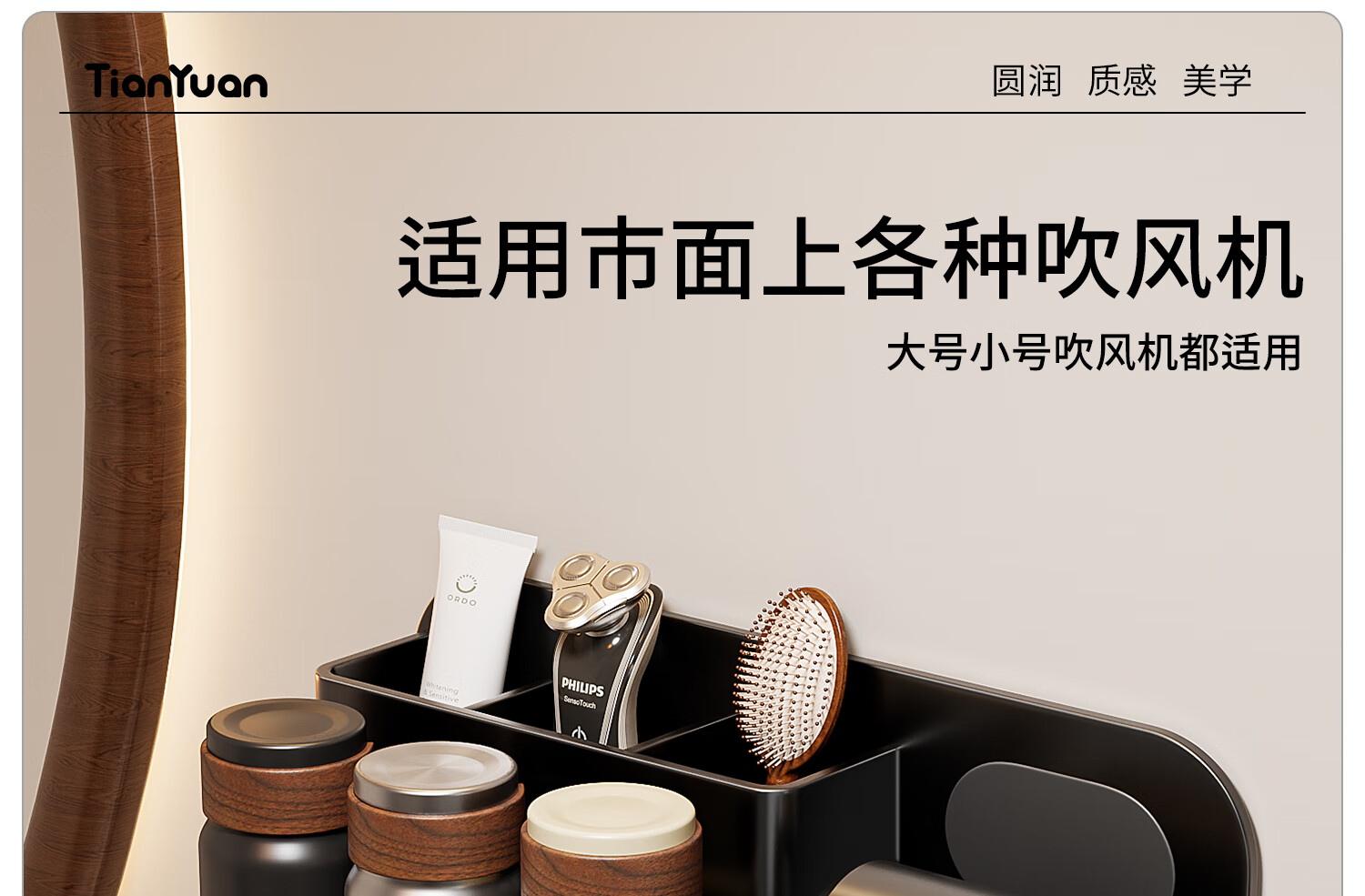 妃驰牙刷置物架浴室壁挂式免打孔卫生间洗手台漱口杯吹风机一体收纳架 吹风机架