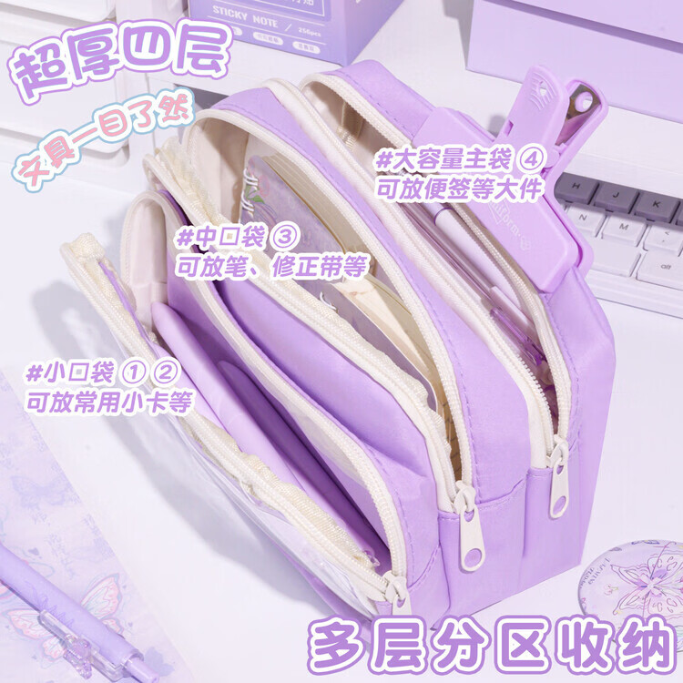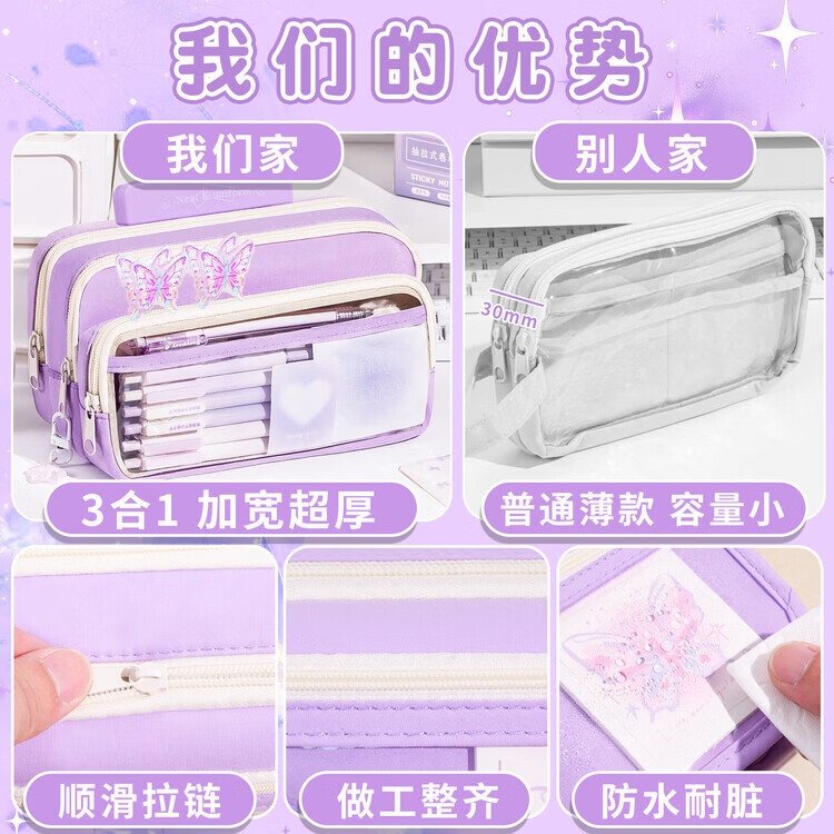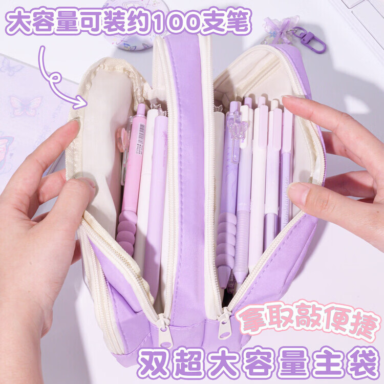 嘉觅紫色蝴蝶~大容量多巴胺透明笔袋2026年新款女生高颜值ins风铅笔盒初中生撞色女孩款小学生文具盒 【升级加宽超厚】紫色/无赠品