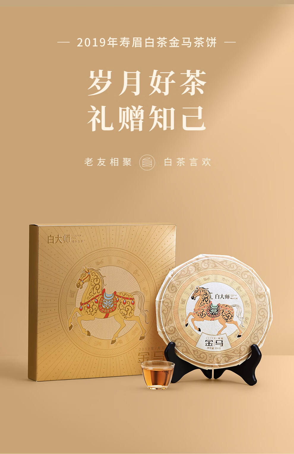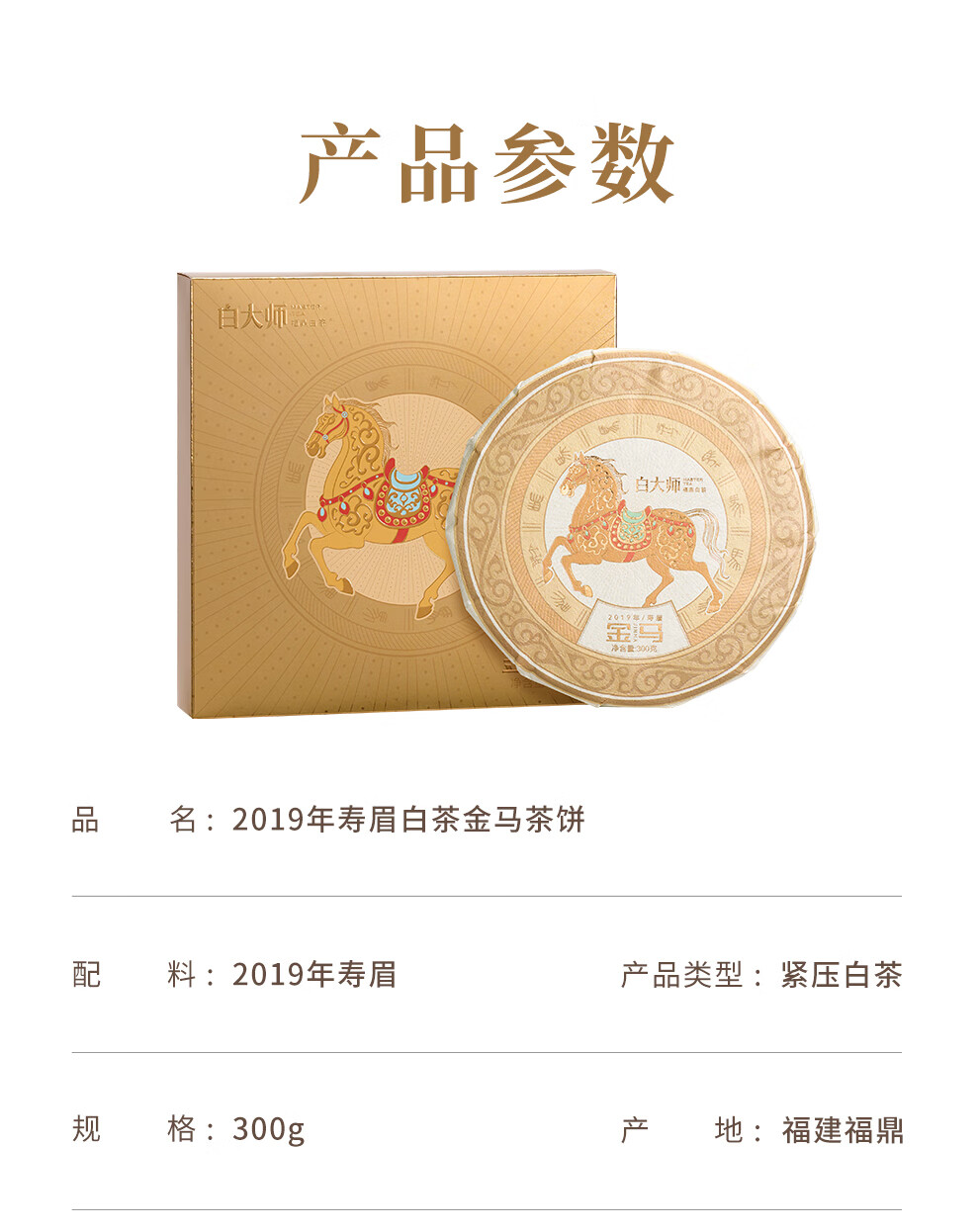 白大师福鼎白茶2019年寿眉金马饼大份量自己喝茶叶官方旗舰店300g