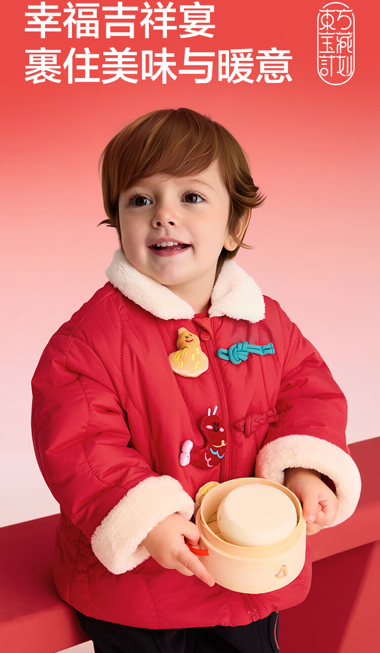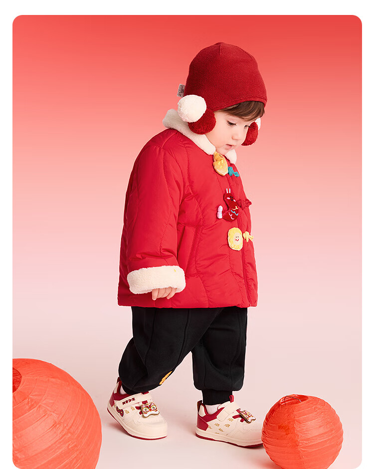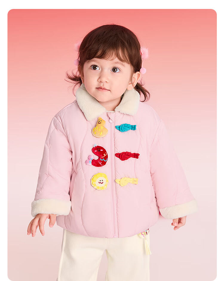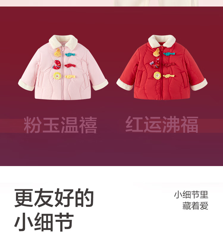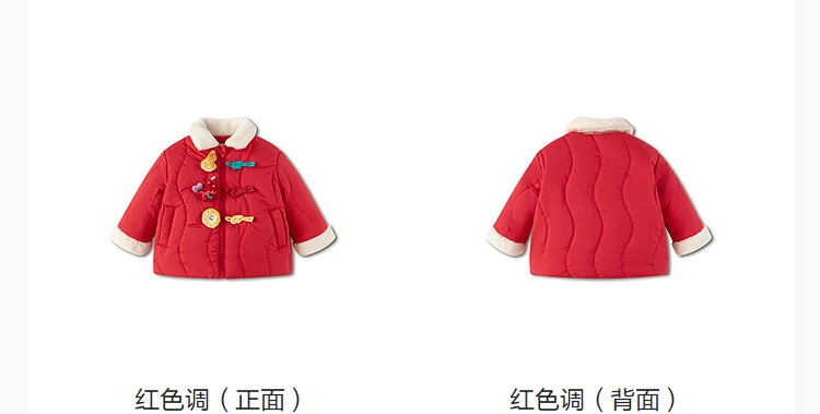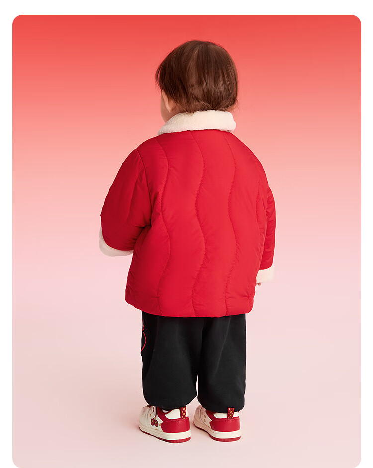 巴拉巴拉童装儿童棉服男女童新中式外套春装2026新款小棉袄拜年服喜庆可爱 红色调00366 100