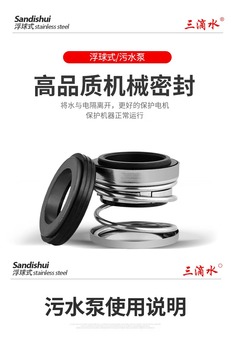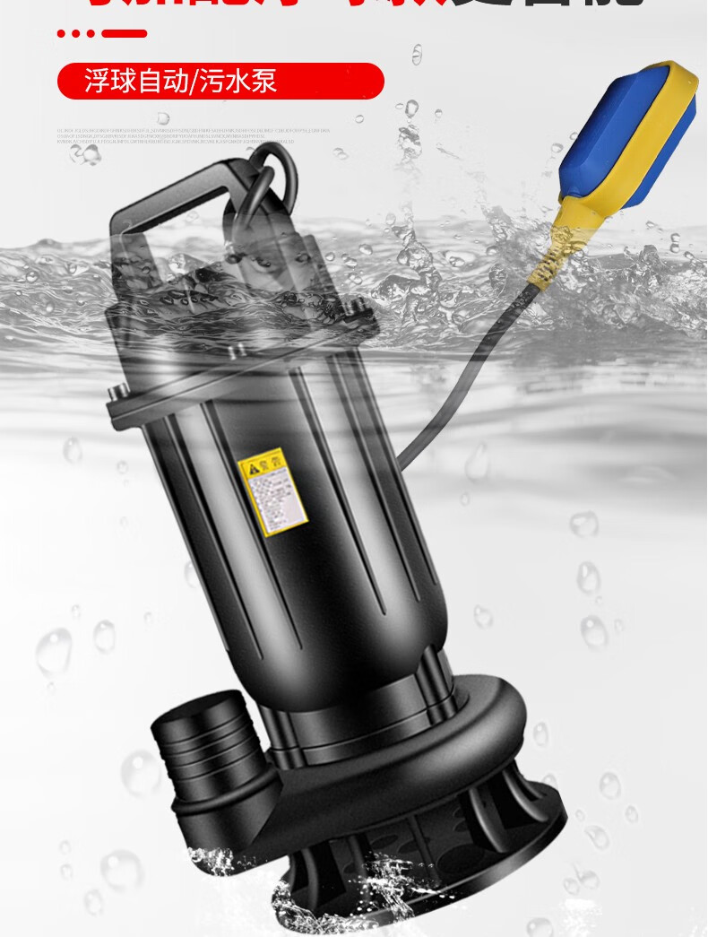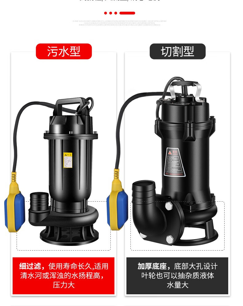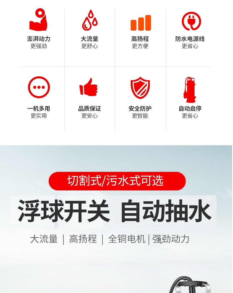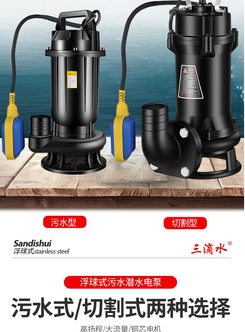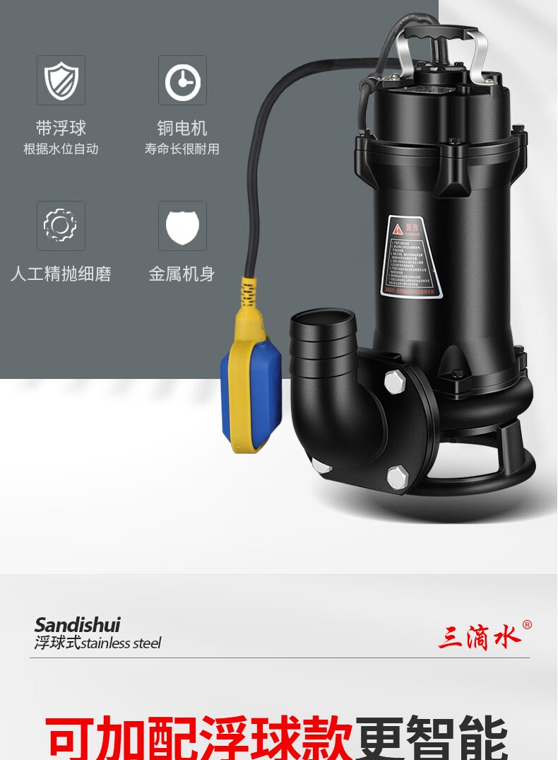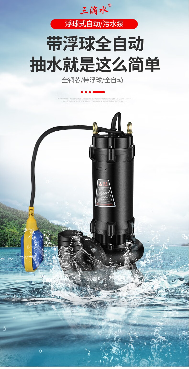 三滴水水位自动污水泵带浮球切割泵家用化粪池排污泵潜水泵地下室提升泵 750瓦2寸220V切割式污水泵+浮球