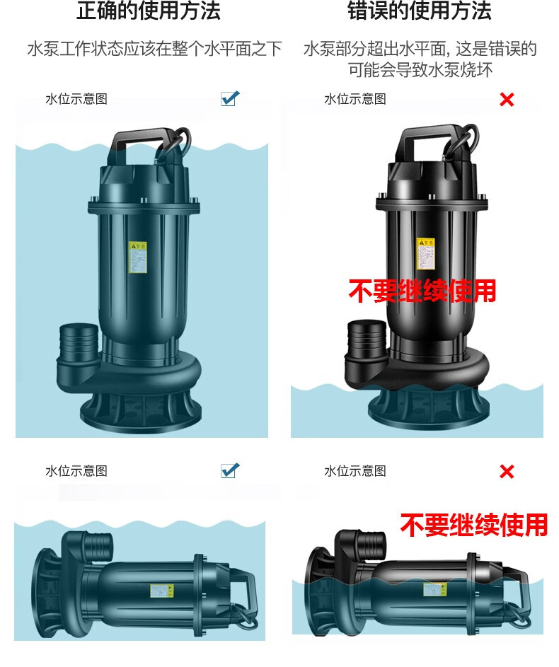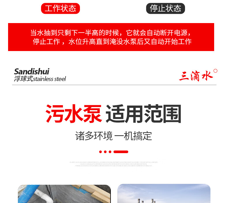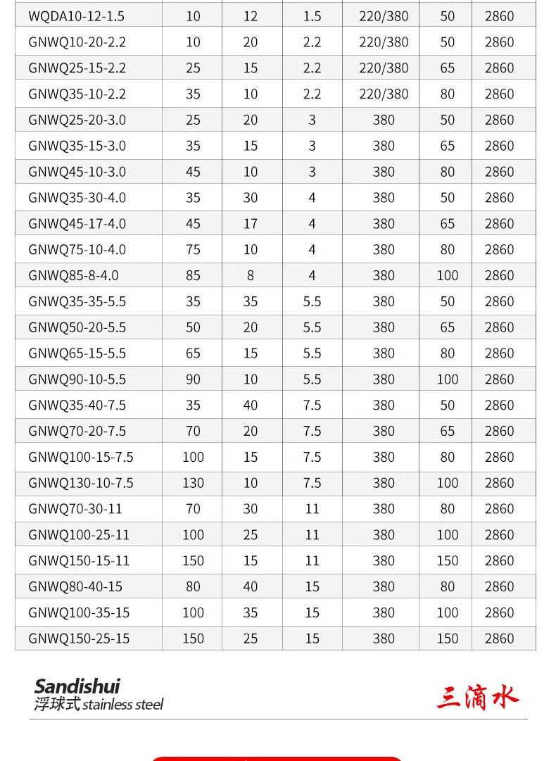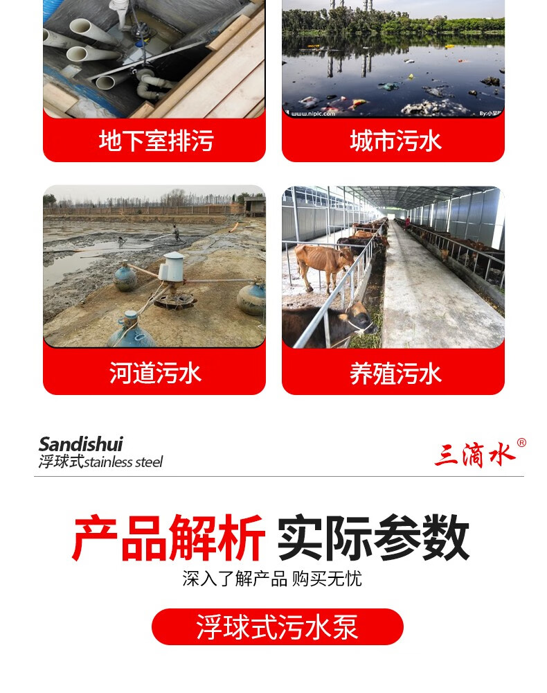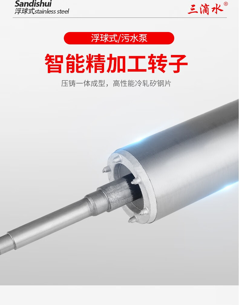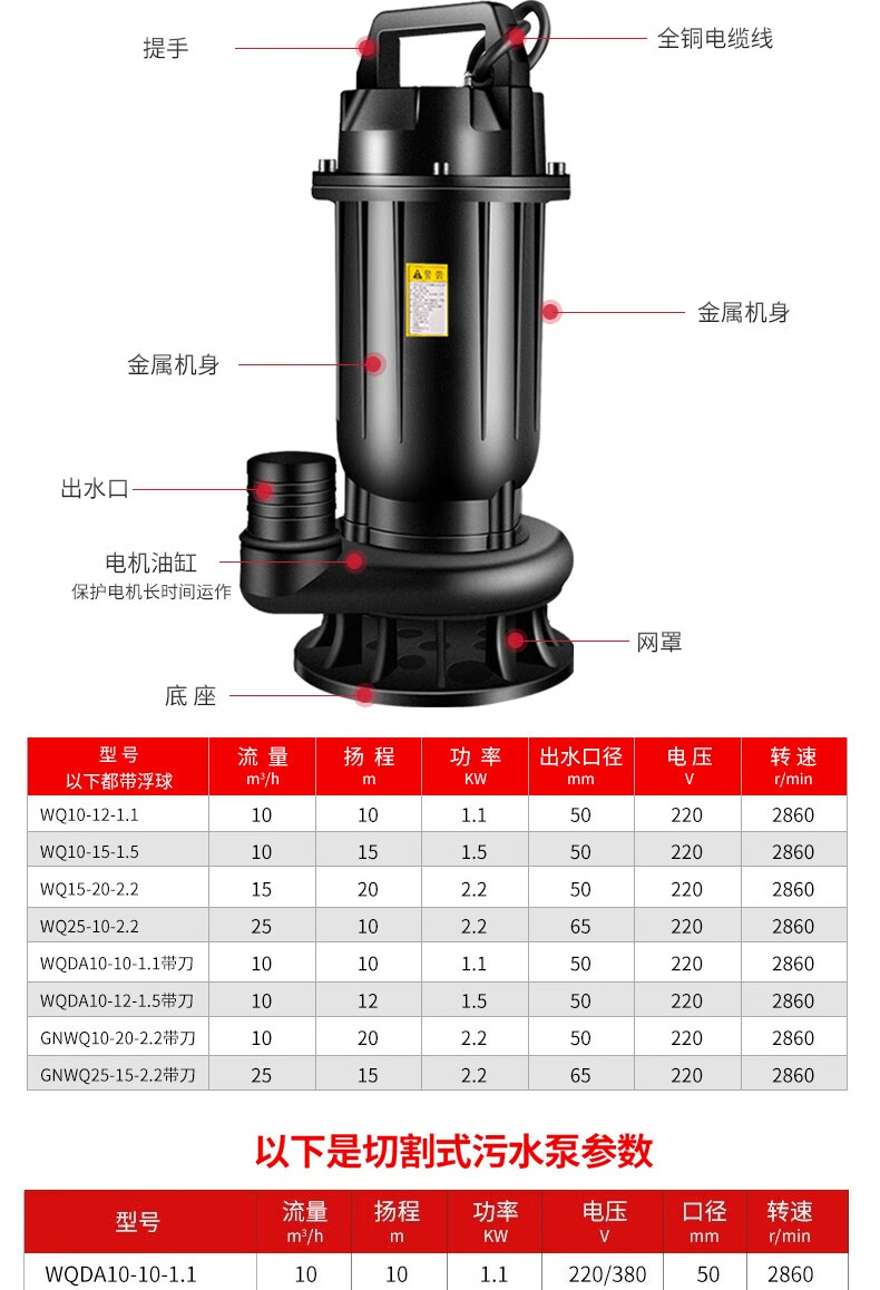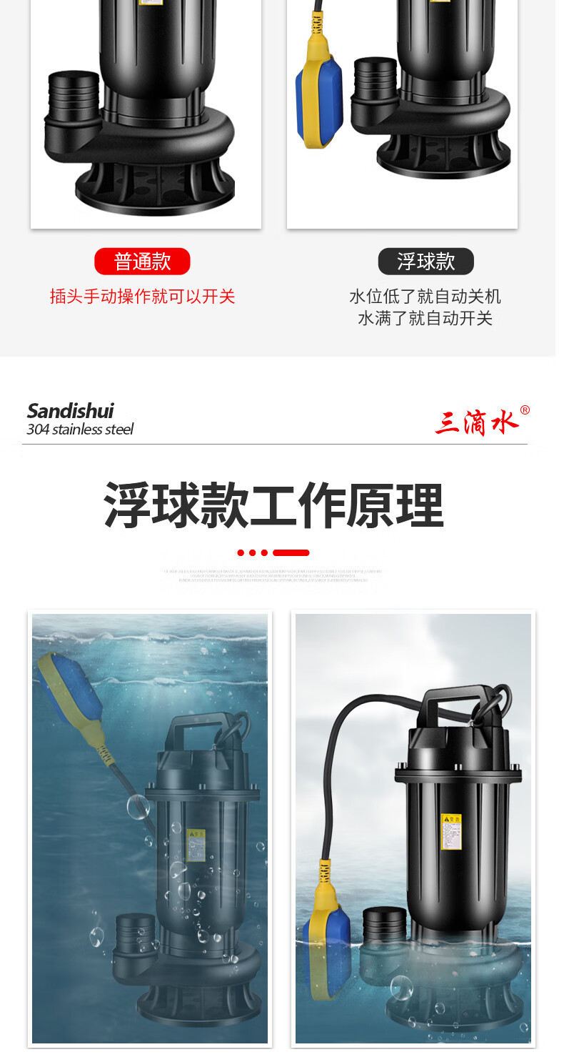 三滴水水位自动污水泵带浮球切割泵家用化粪池排污泵潜水泵地下室提升泵 750瓦2寸220V切割式污水泵+浮球