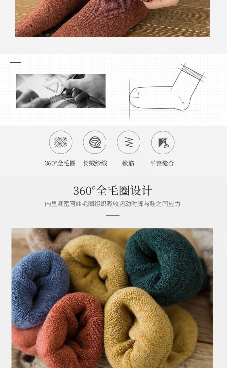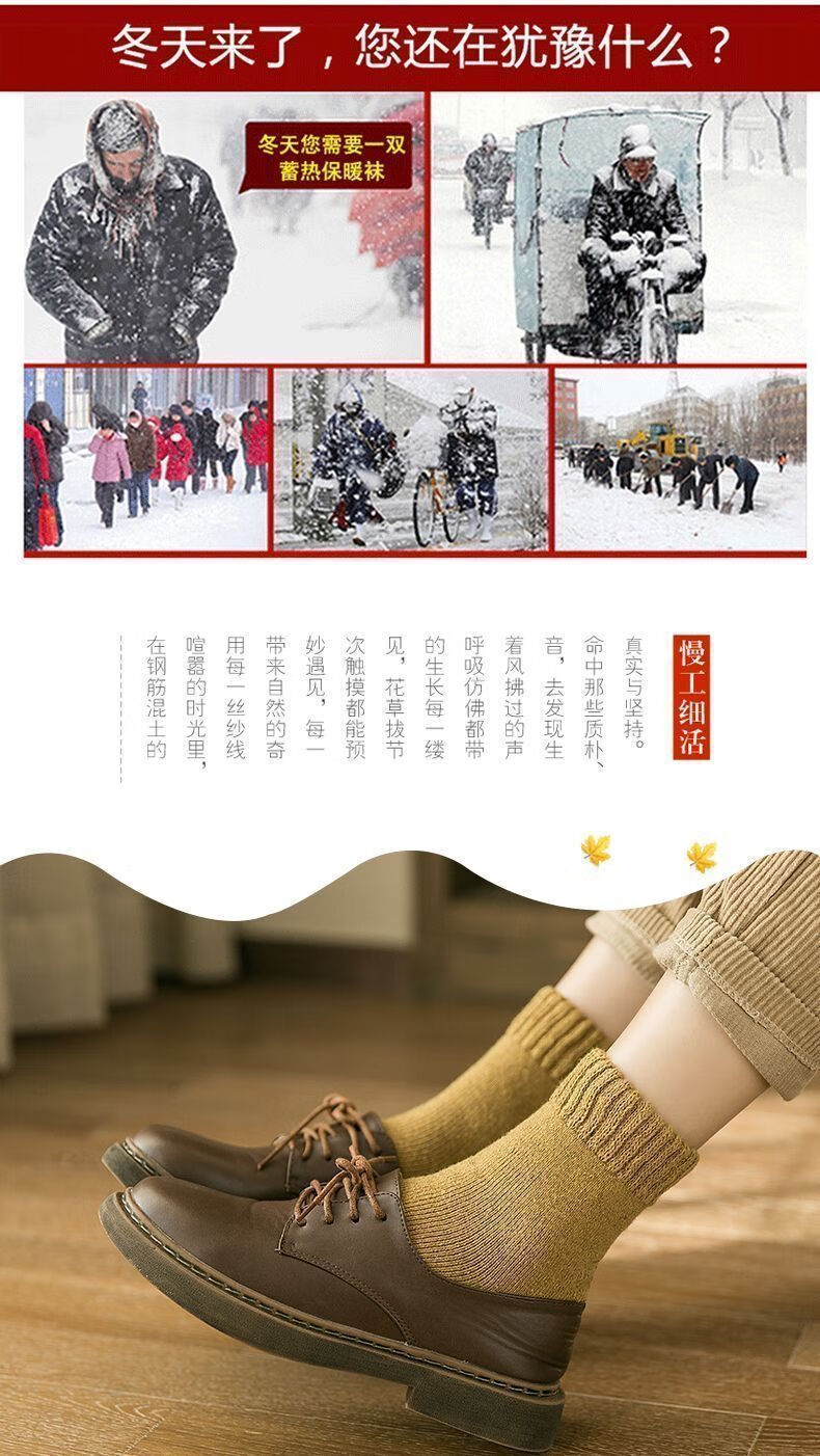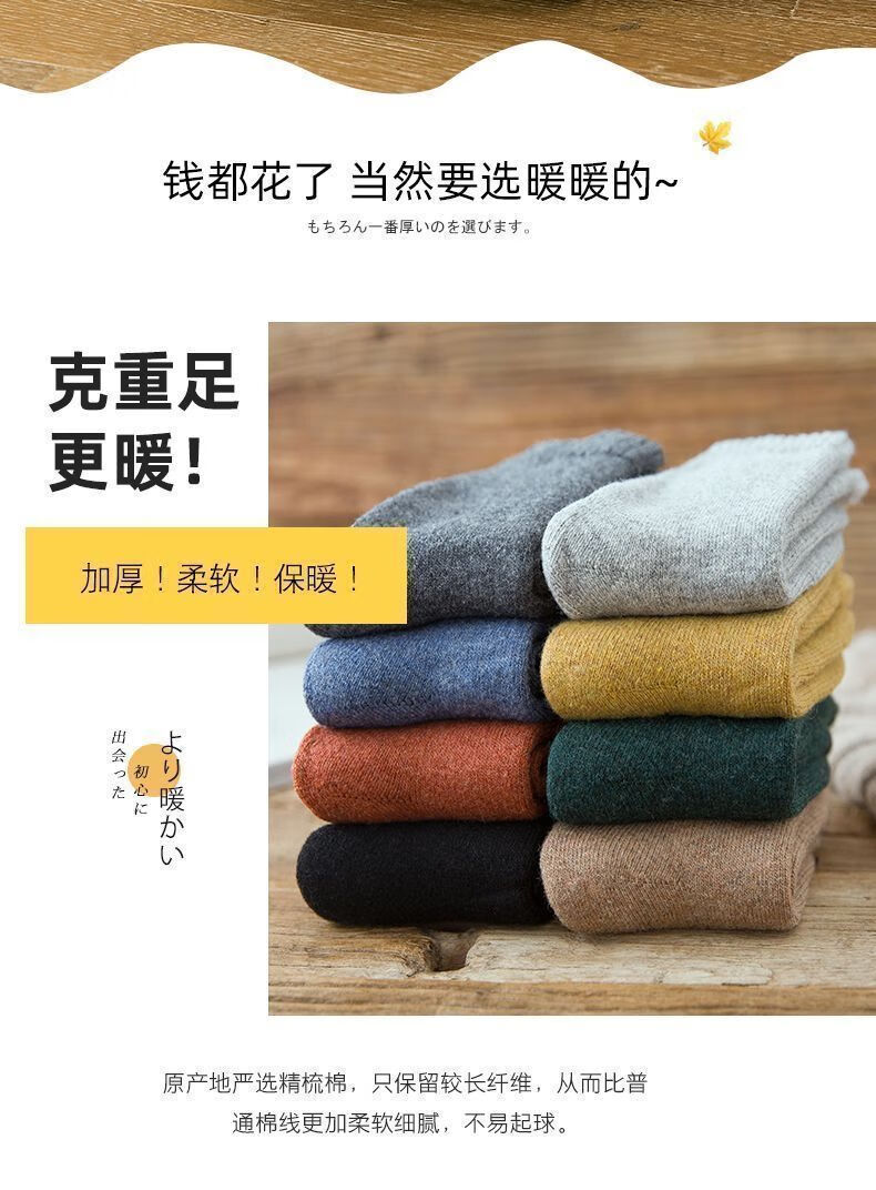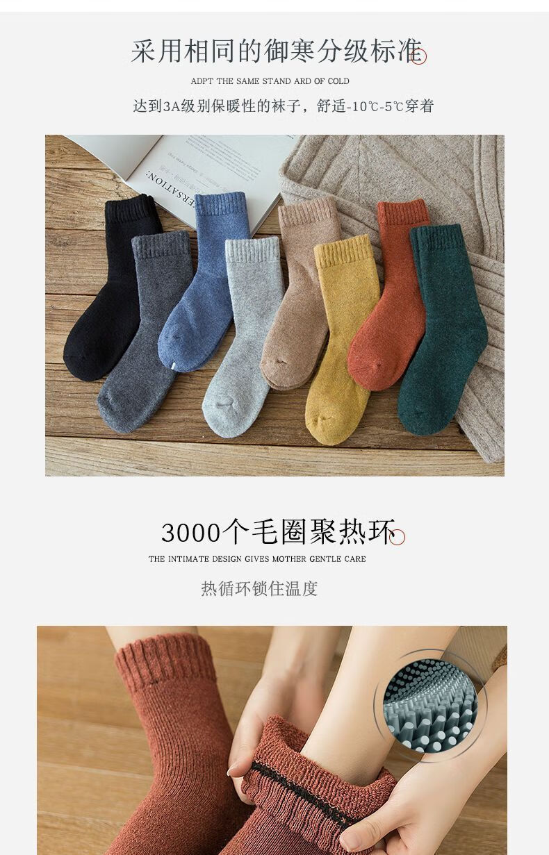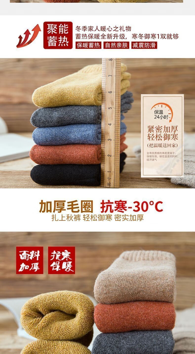 【纯色毛圈】加绒加厚袜子秋冬季防寒中筒加绒保暖袜冬天毛圈防冻 随机- 1双 均码