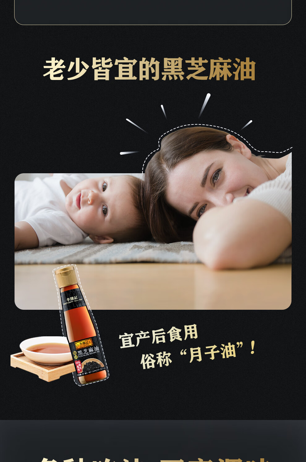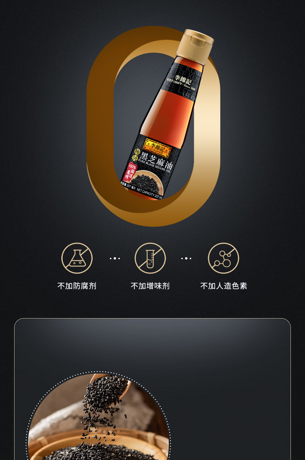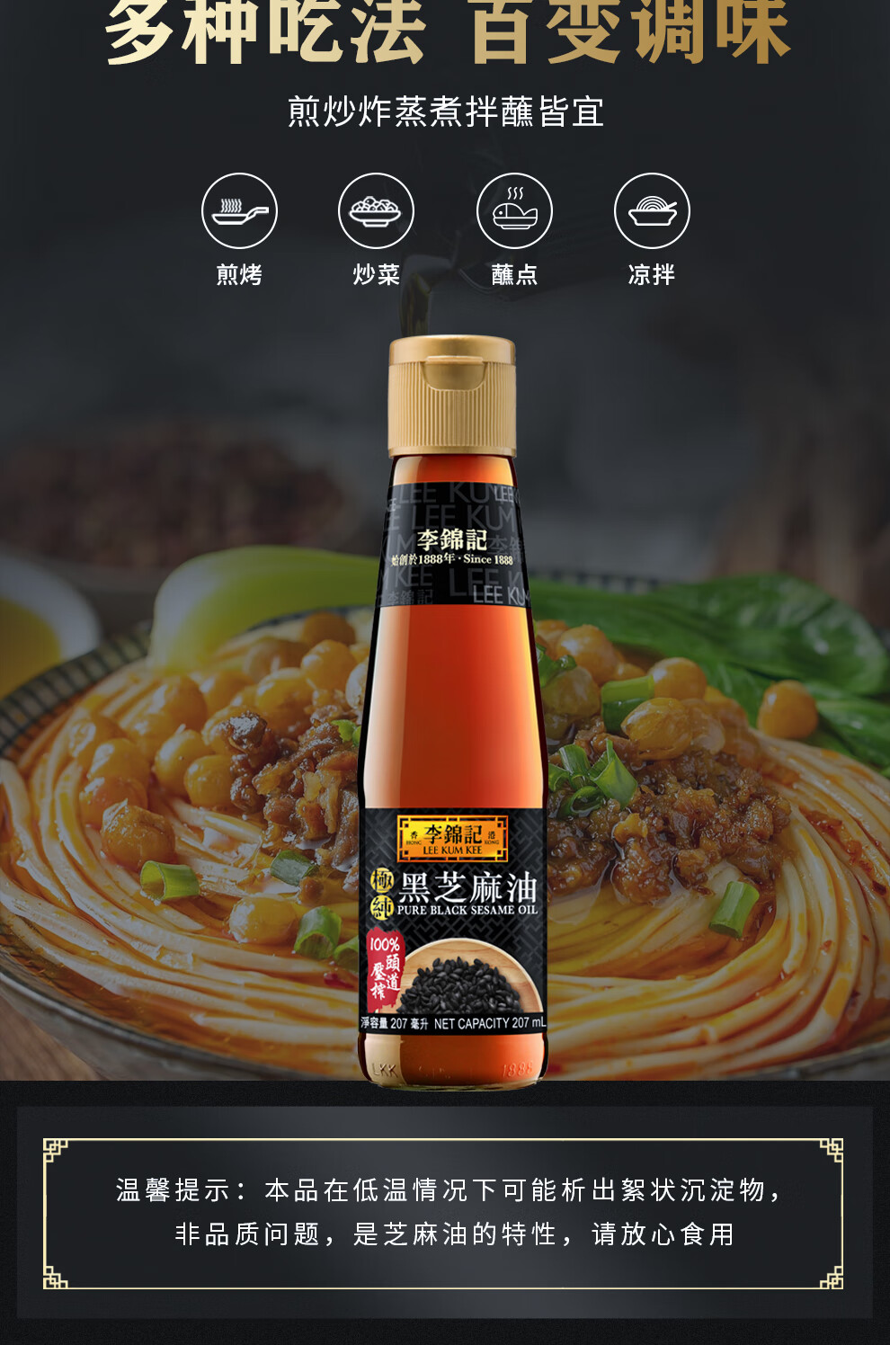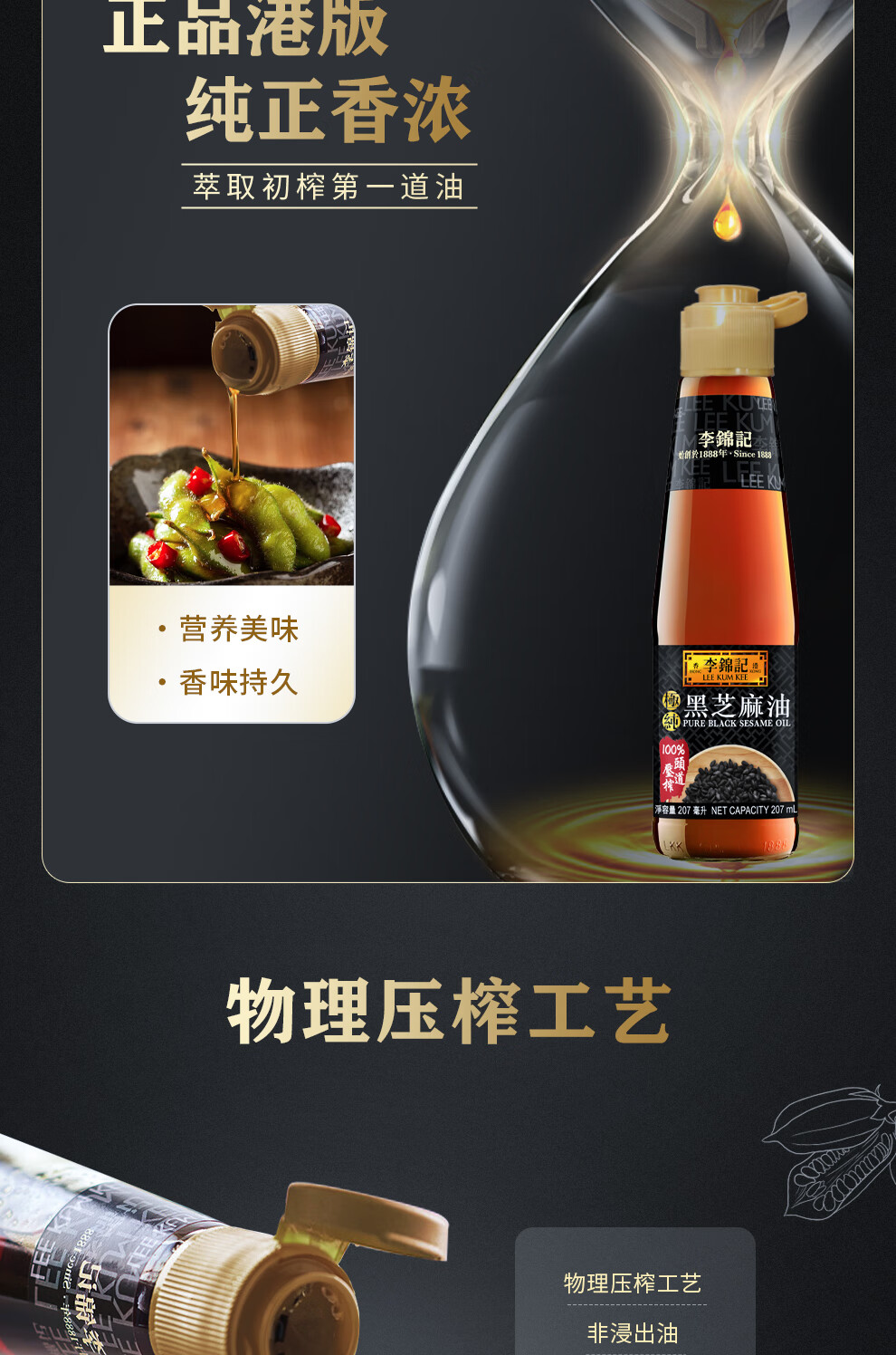 李锦记(LEE KUM KEE)极纯黑芝麻油 港版零添加纯正天然香油凉拌家用麻油调味油葱油 极纯黑芝麻油 207ml