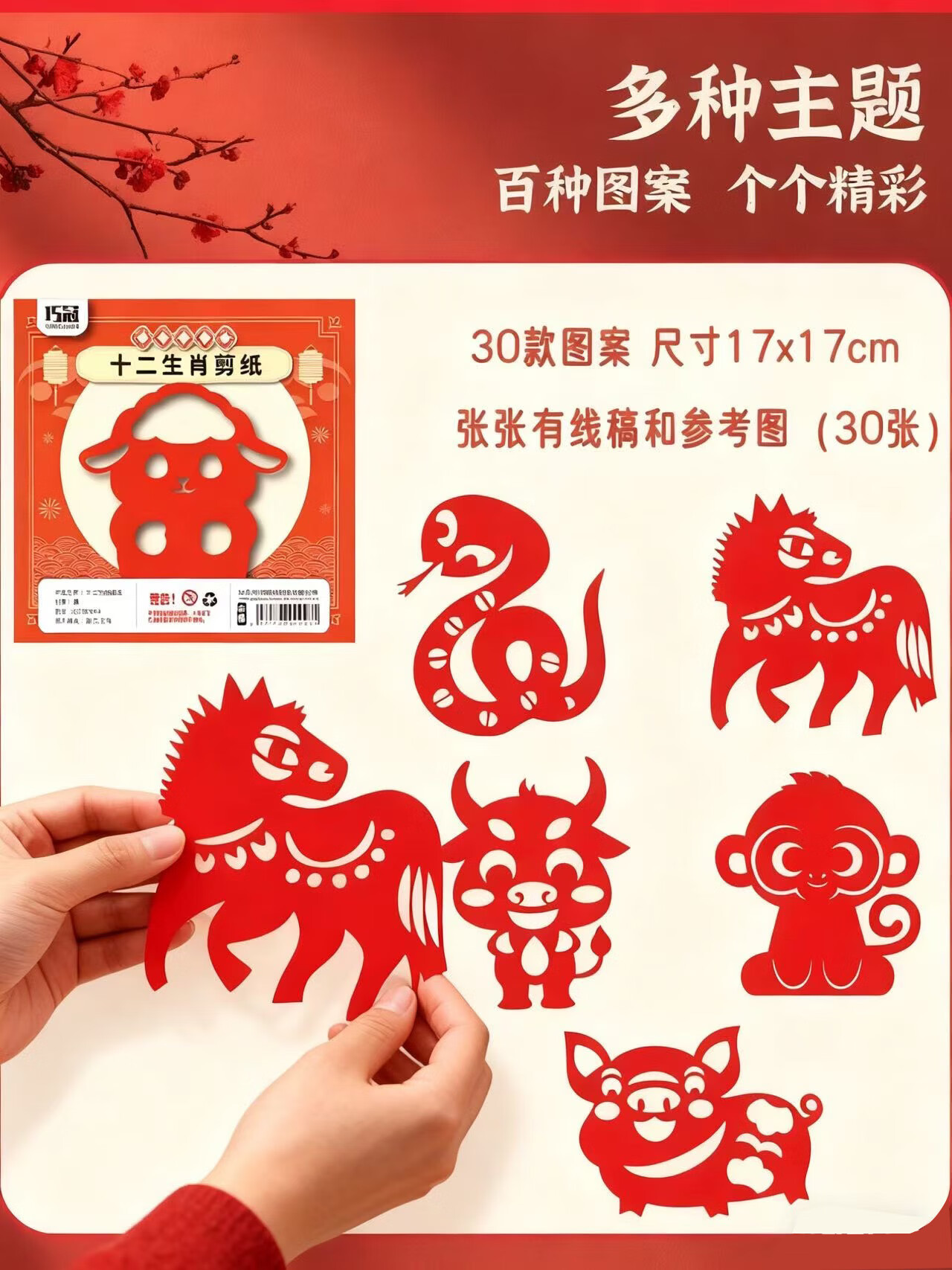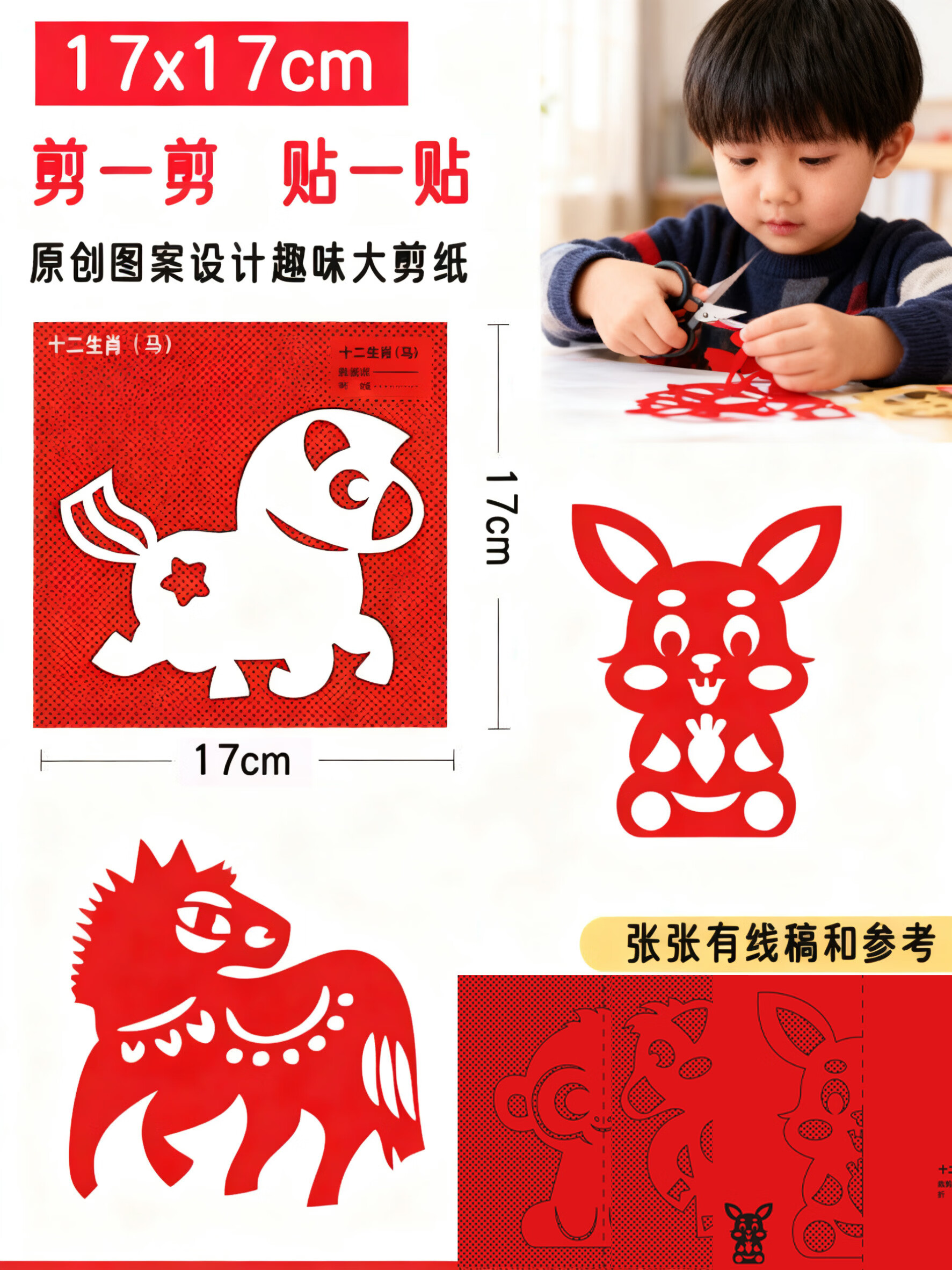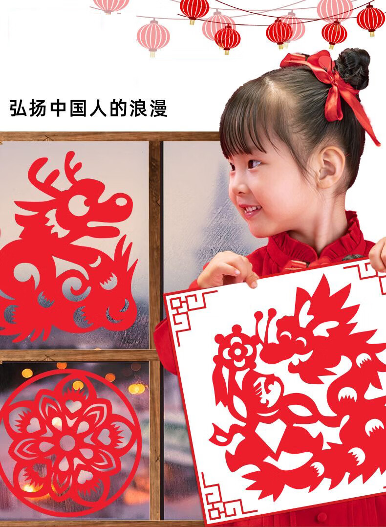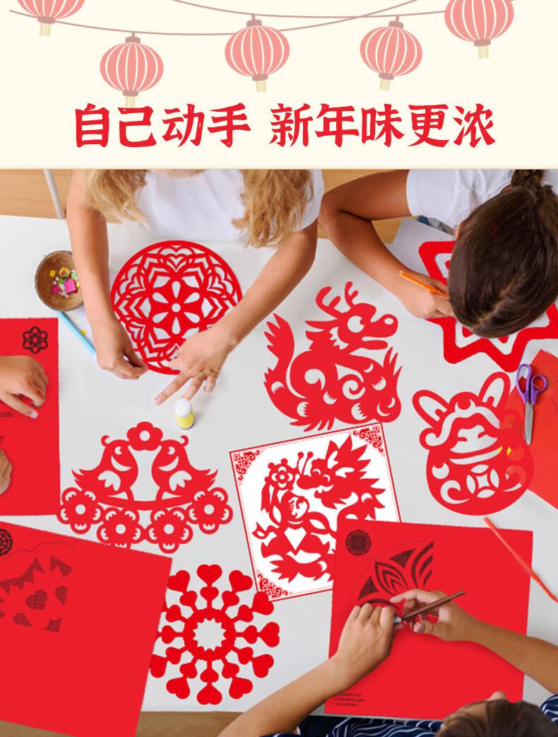 儿童手工窗花纸剪纸2026年马年新年春节剪纸窗花专用纸张幼儿园元旦节diy小学生国风新年图案底稿 新年剪纸【送剪刀+胶棒】